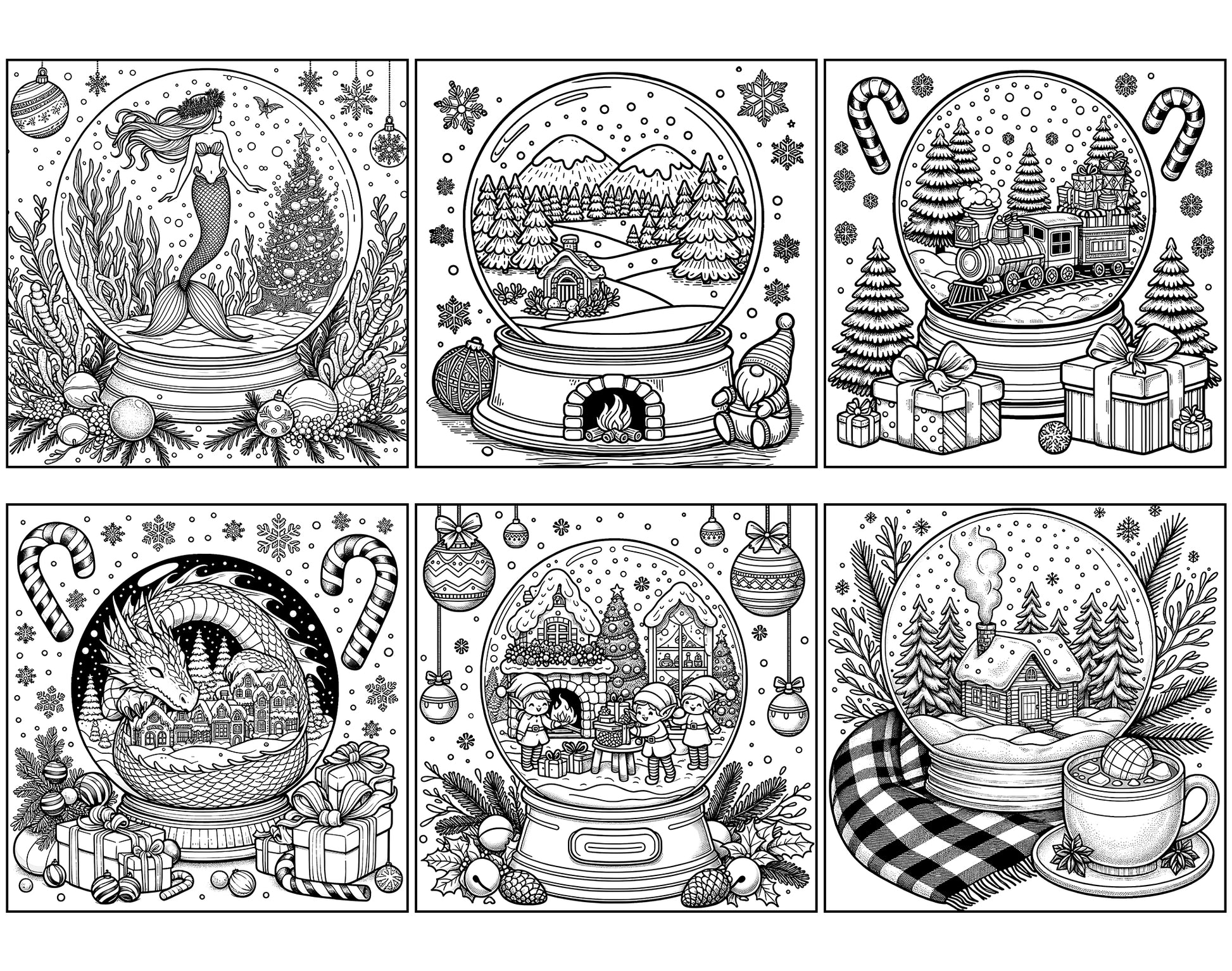 - Festive Designs: Each snow globe is a unique and intricate world, offering hours of coloring entertainment.