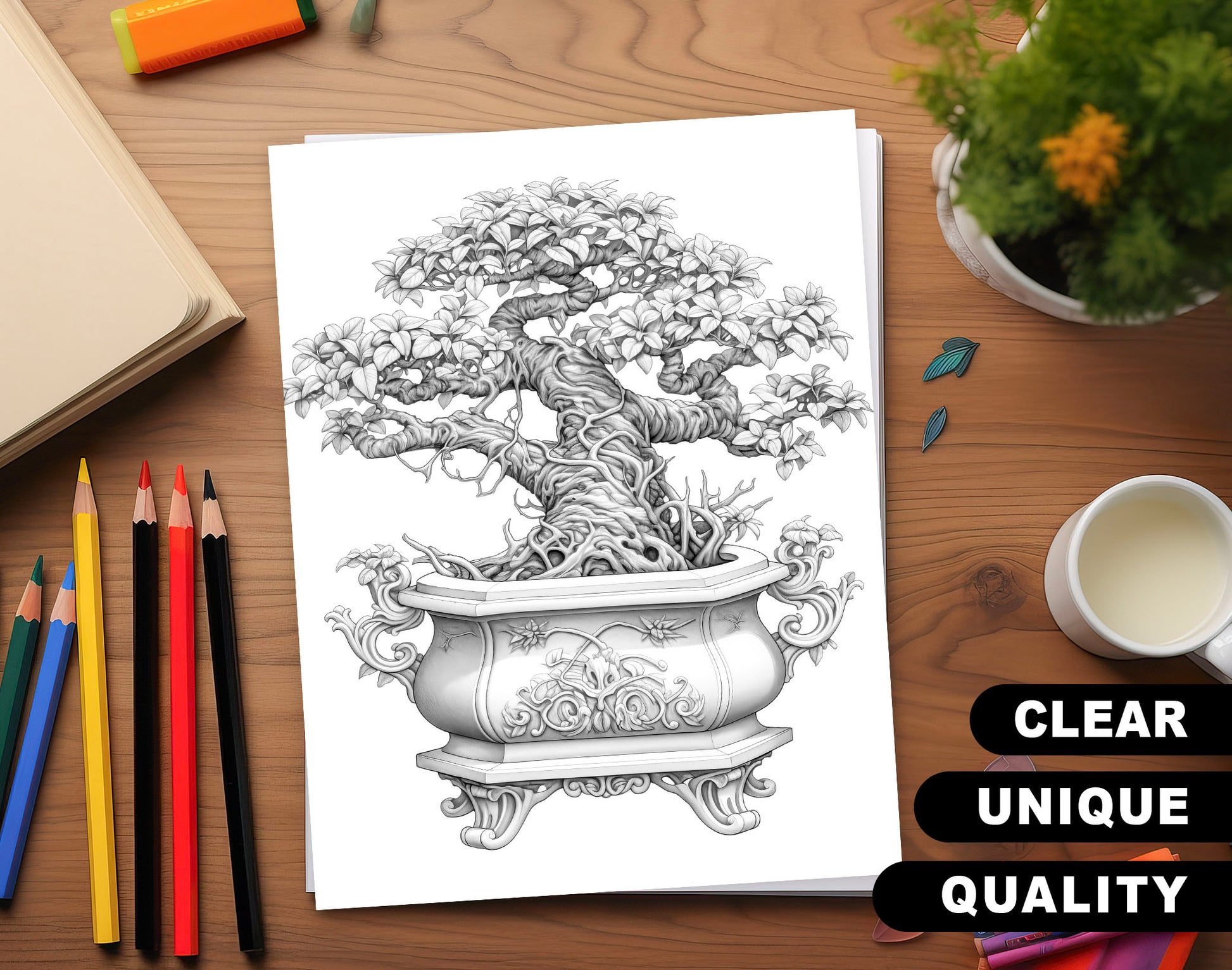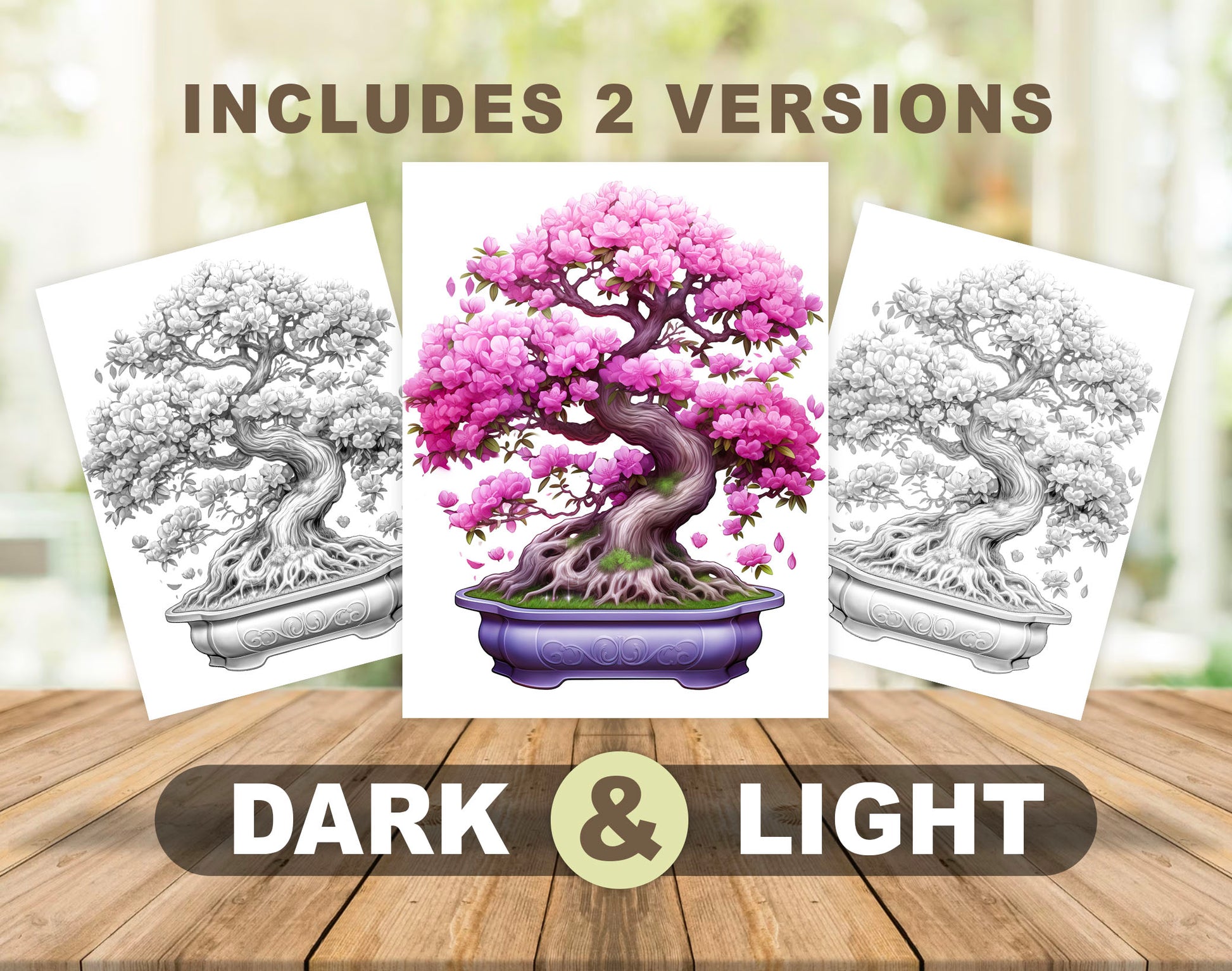 25 Bonsai Tree Grayscale Coloring Pages - Instant Download - Printable PDF Dark/Light