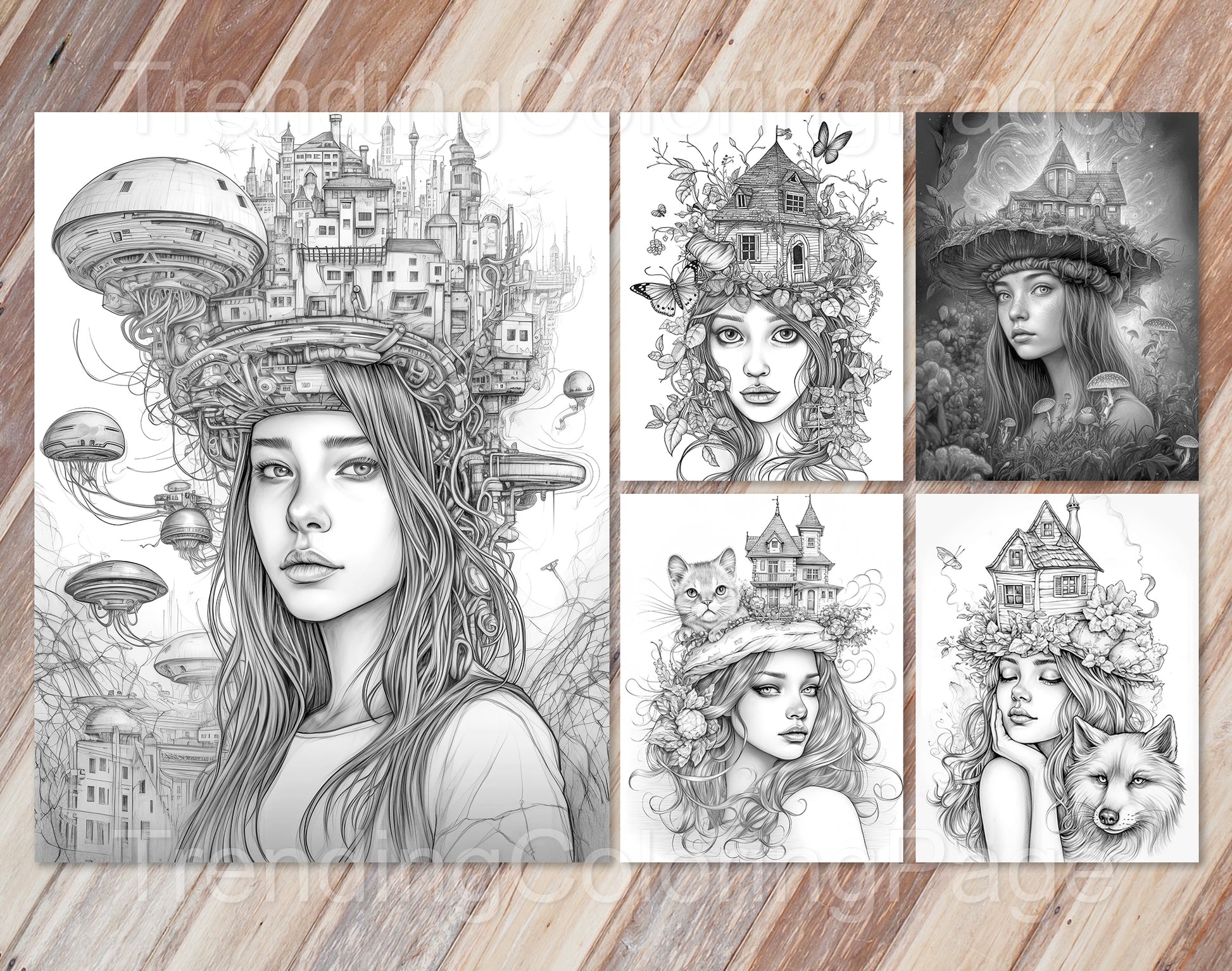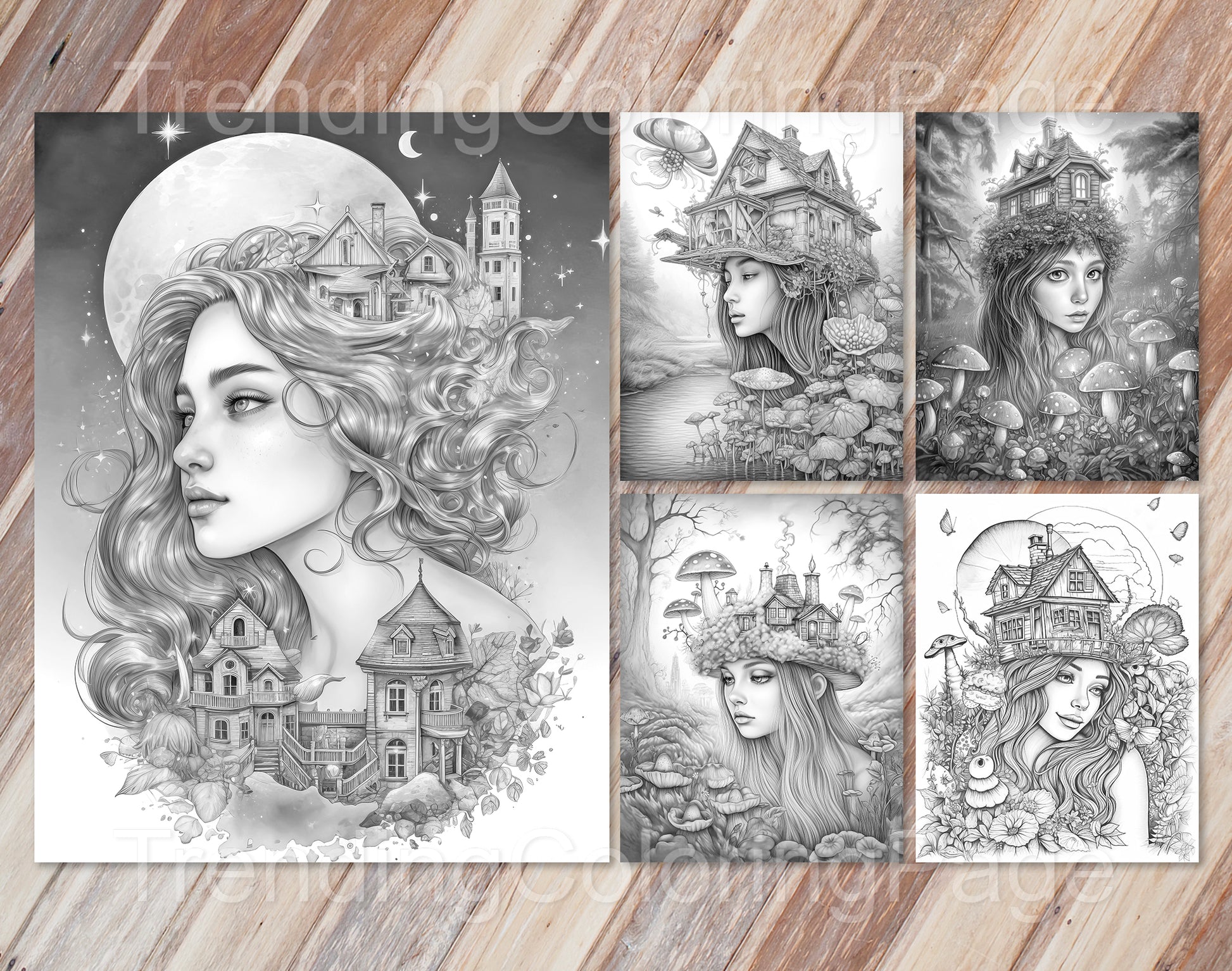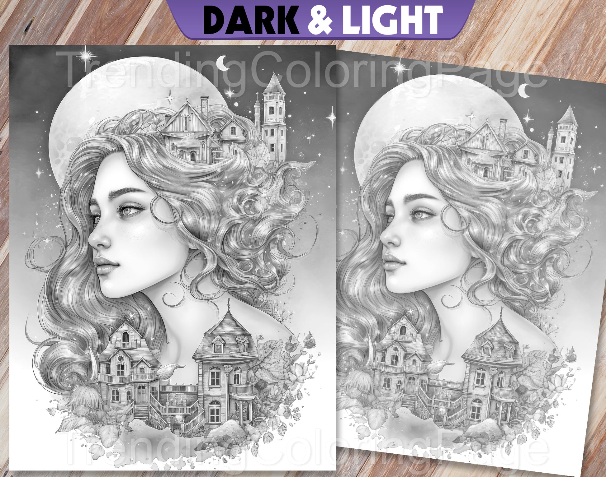 As you color, you'll be immersed in scenes of fairy queens and mystical beings, each crowned with flowers, leaves, and other natural elements. The grayscale shading adds depth and a touch of realism to each scene, inviting you to play with light and shadow as you bring these fairy beauties to life. Whether you choose the dramatic contrasts of the dark grayscale or the subtle nuances of the light grayscale, these pages offer a versatile and enchanting coloring experience.