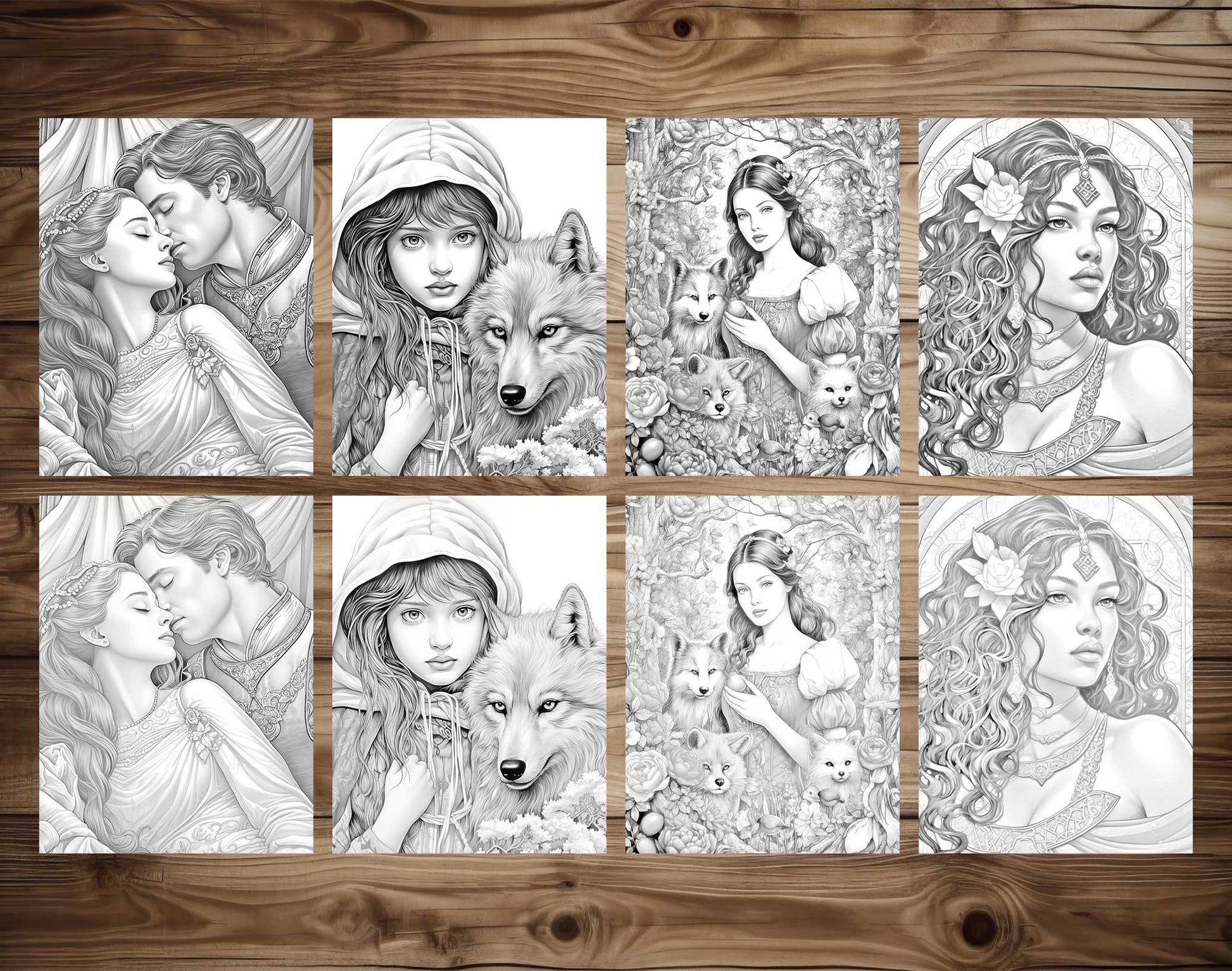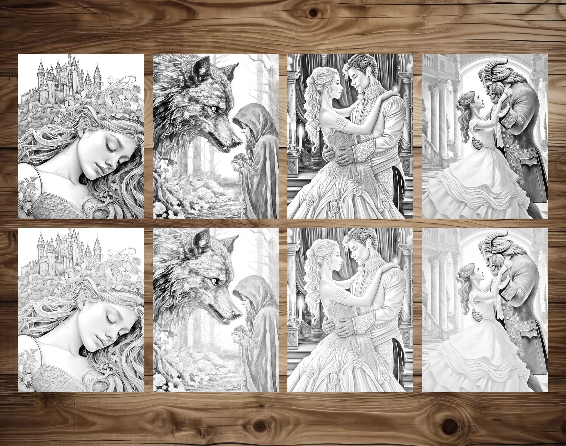 Ideal for dreamers and lovers of fairy tales of all ages, this set offers a unique opportunity to add your own splash of color to timeless tales. The grayscale format provides a beautiful range of shades, enhancing the depth and detail of each illustration and allowing for a more nuanced coloring experience.