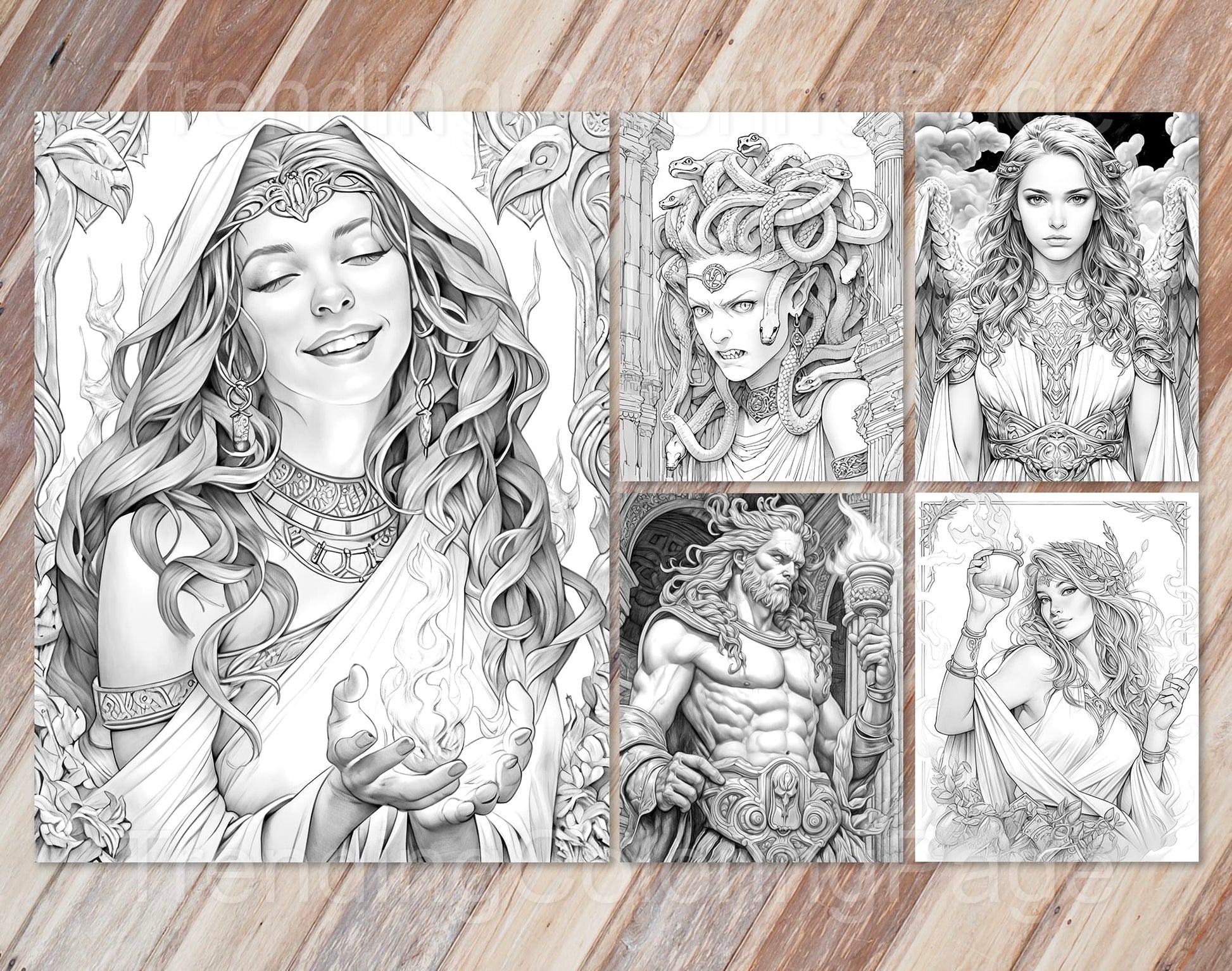 - Mythical Pantheon: Each page depicts a scene or character from Greek mythology, rich in detail and storytelling.