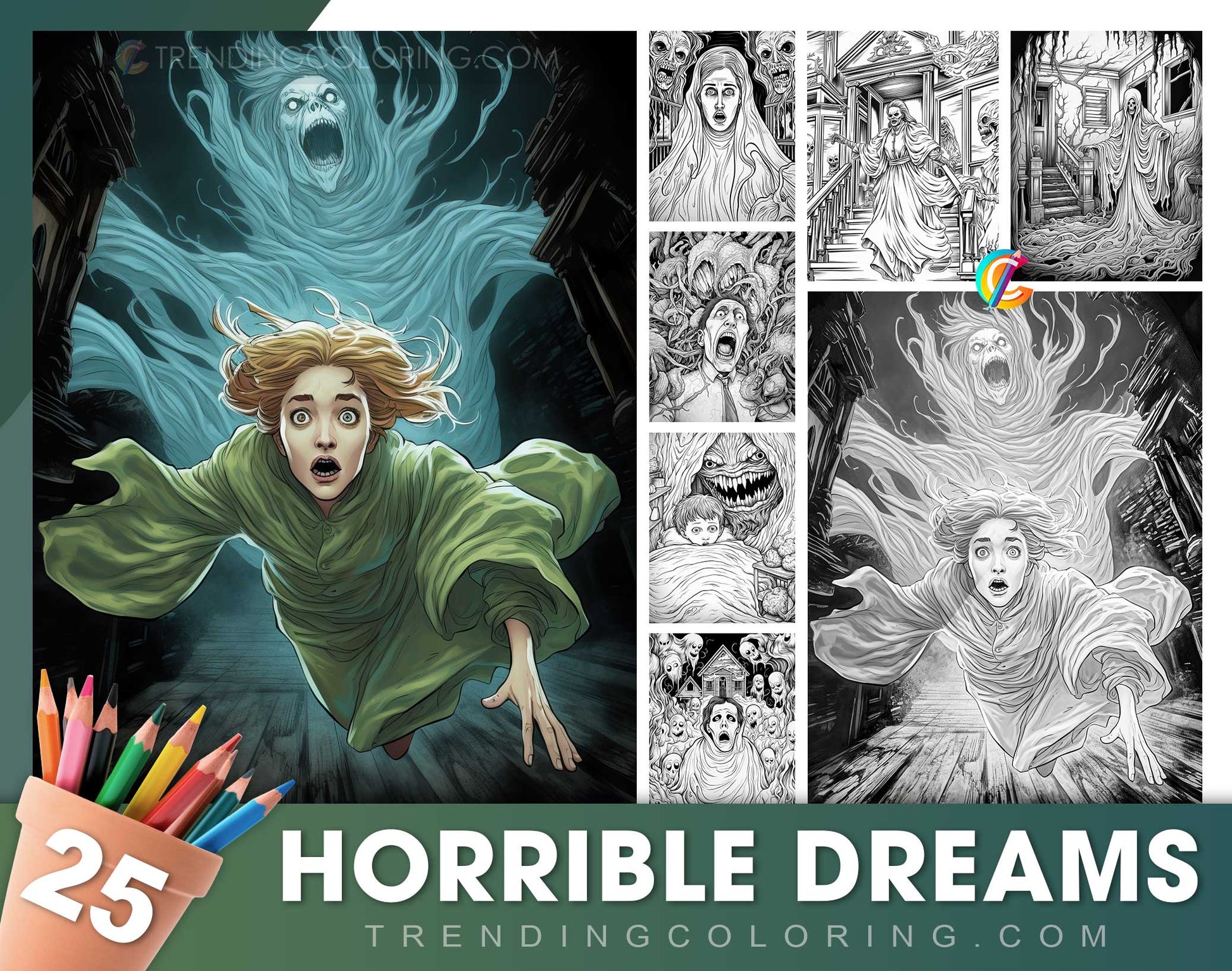 - 25 Expertly Crafted Horrible Dream Grayscale Pages