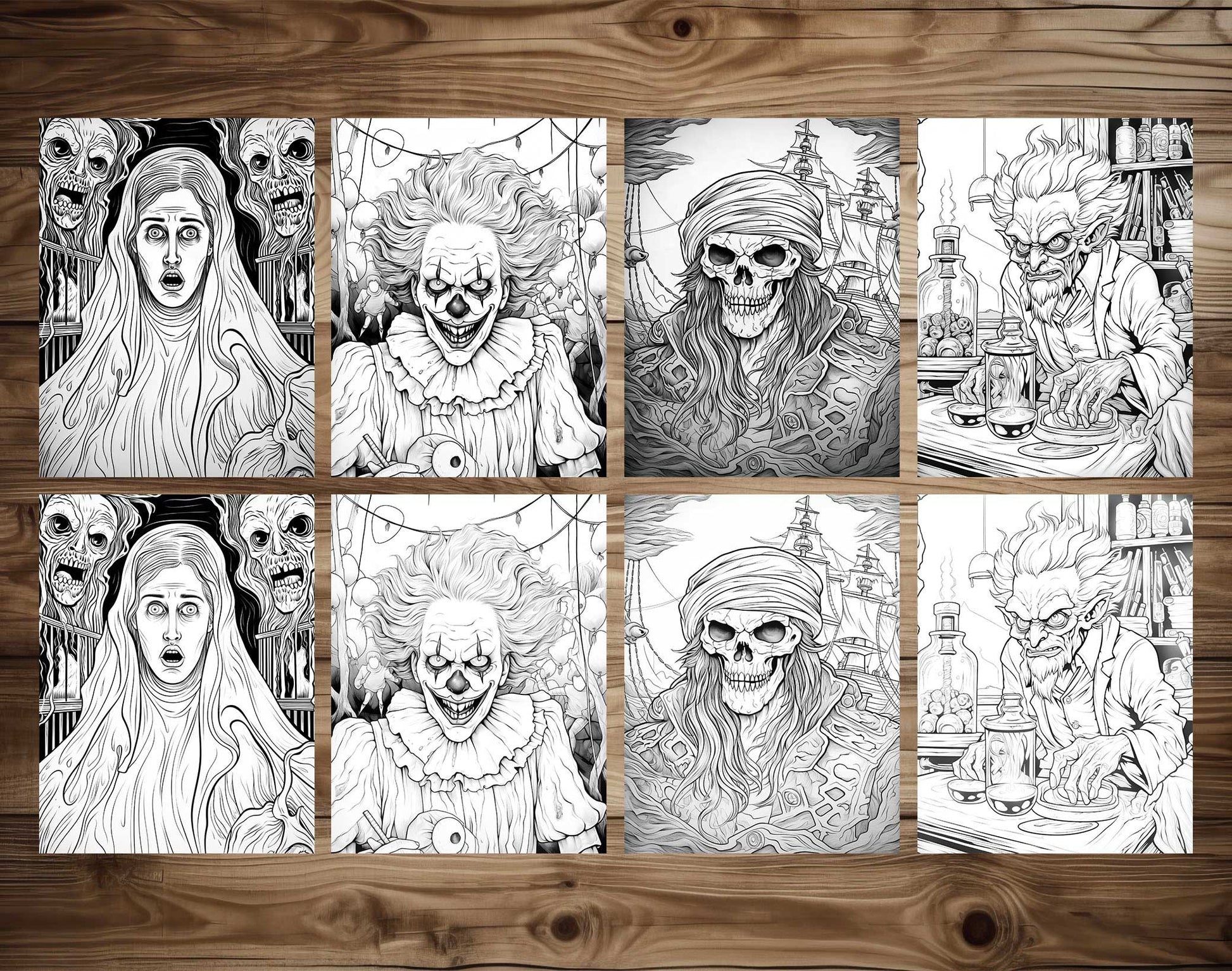 25 Horrible Dream Grayscale Coloring Pages - Halloween Coloring - Instant Download - Printable PDF Dark/Light