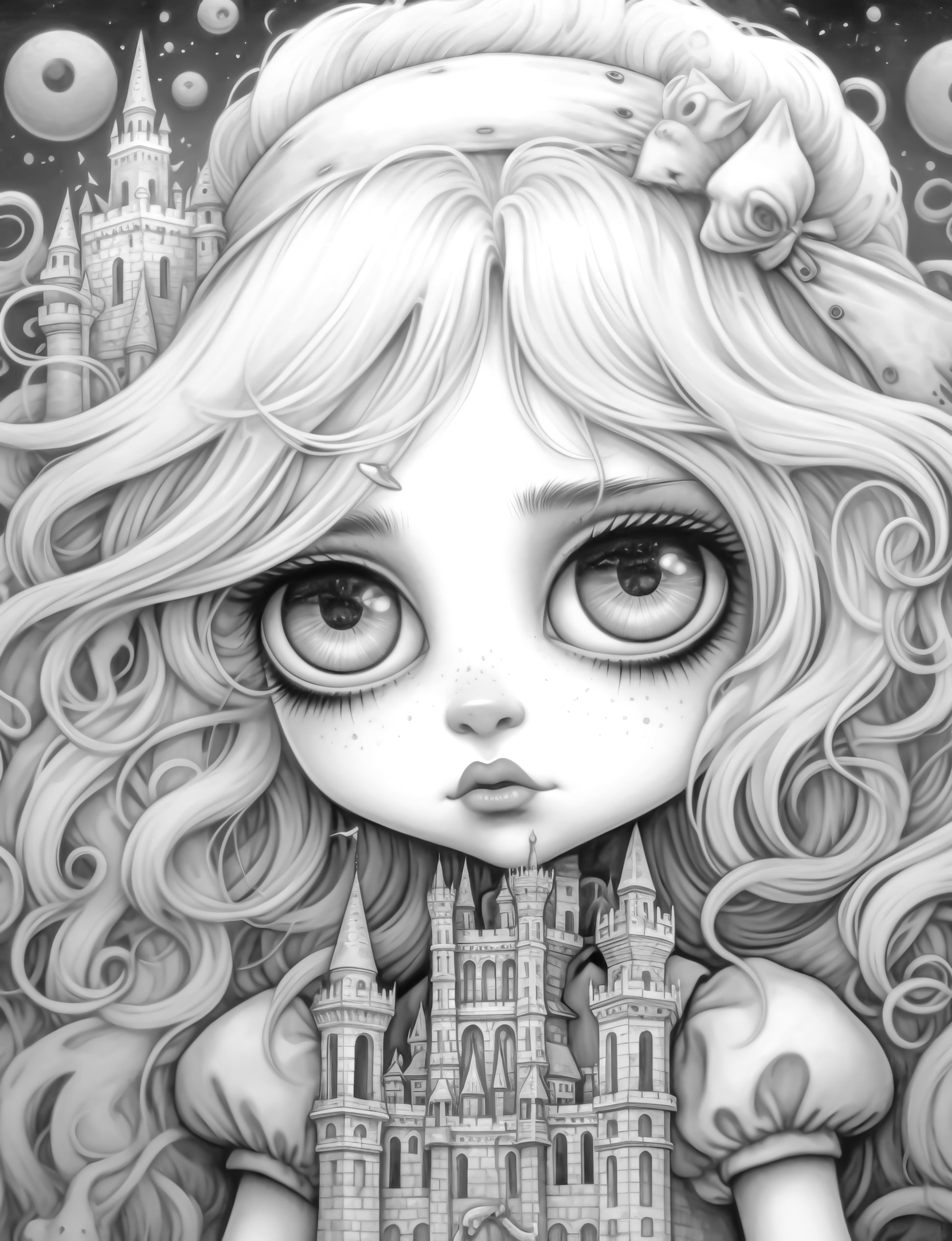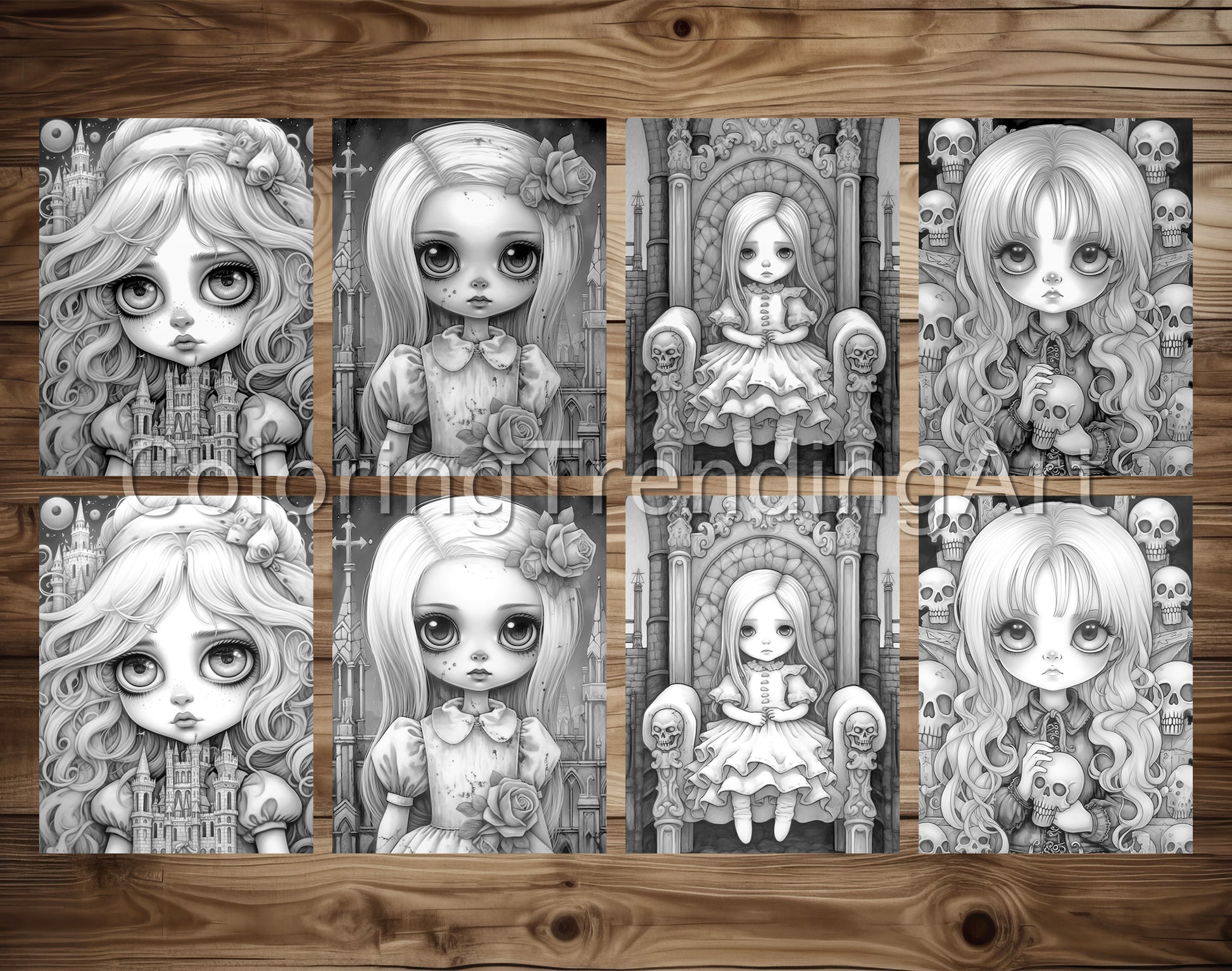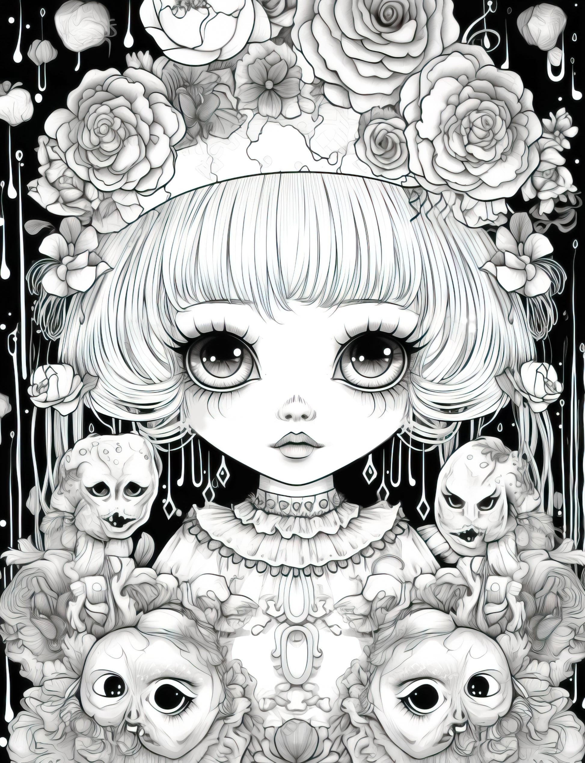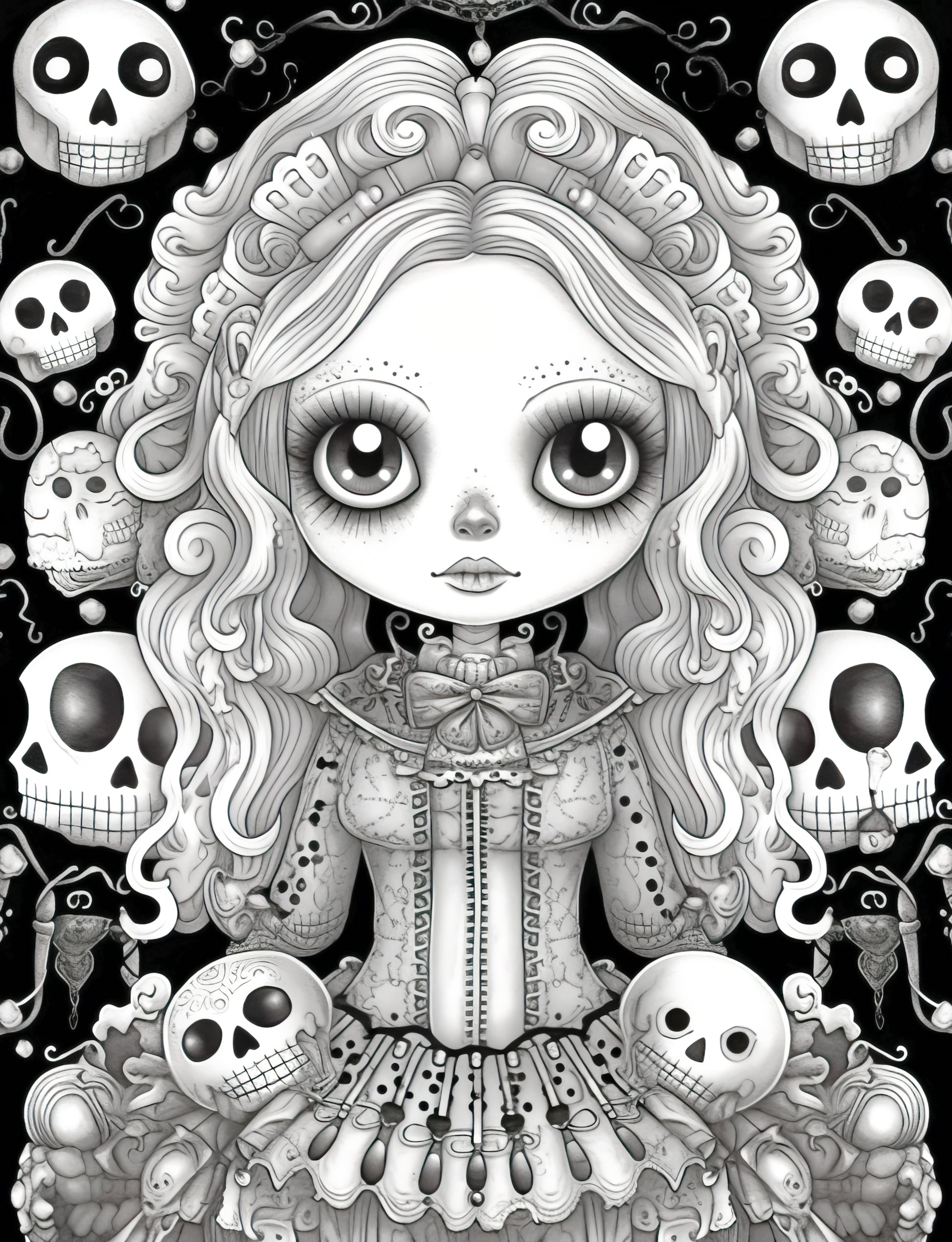 - 25 High-Quality Kawaii Gothic Girl Grayscale Coloring Pages.