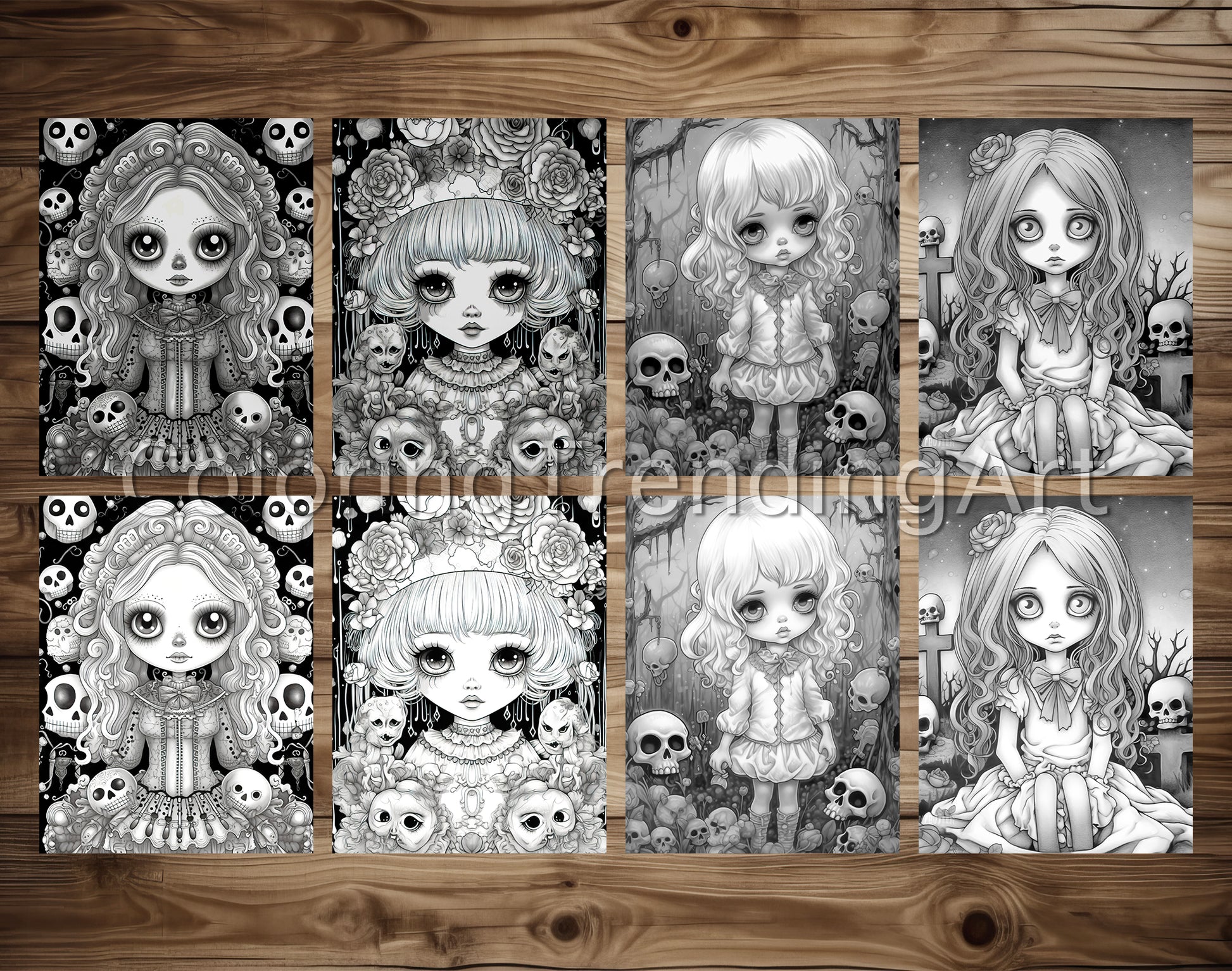 25 Kawaii Gothic Girl Grayscale Coloring Pages - Instant Download - Printable PDF Dark/Light