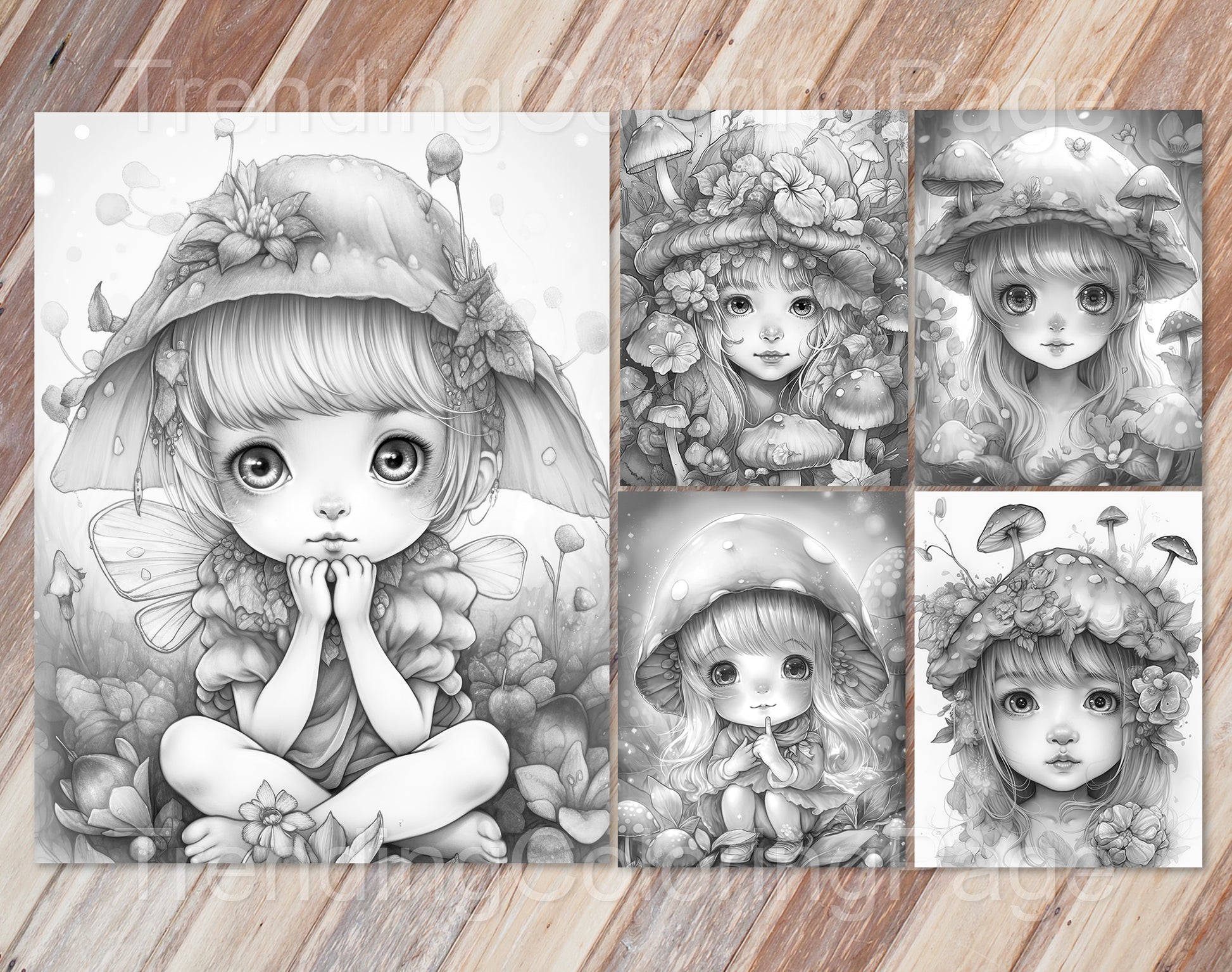 - 25 High-Quality Mushroom Fairies Grayscale Coloring Pages.