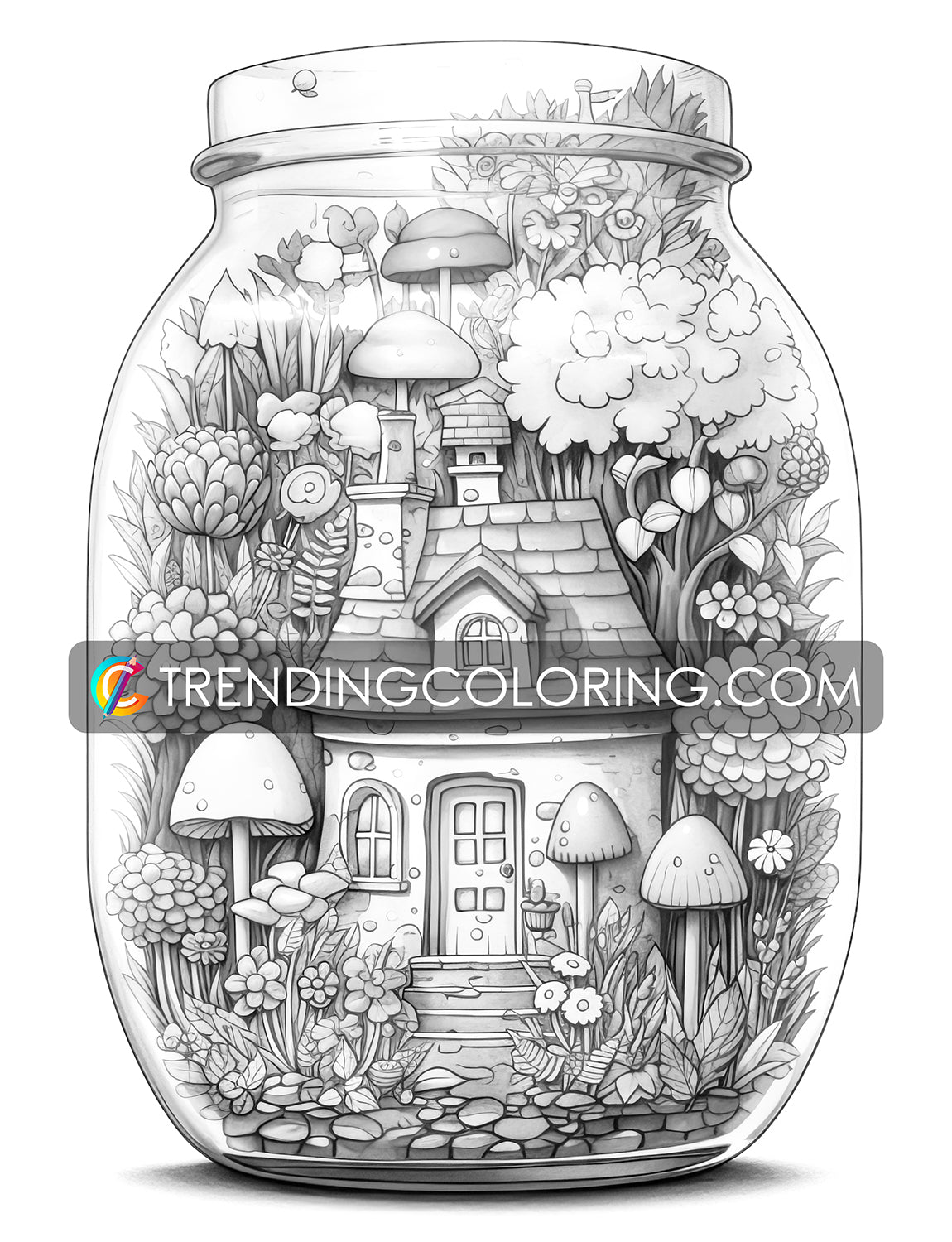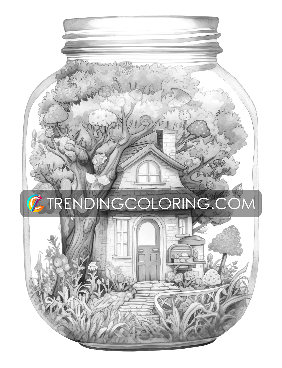 - 25 High-Quality Peaceful Life In Jar Grayscale Coloring Pages.
