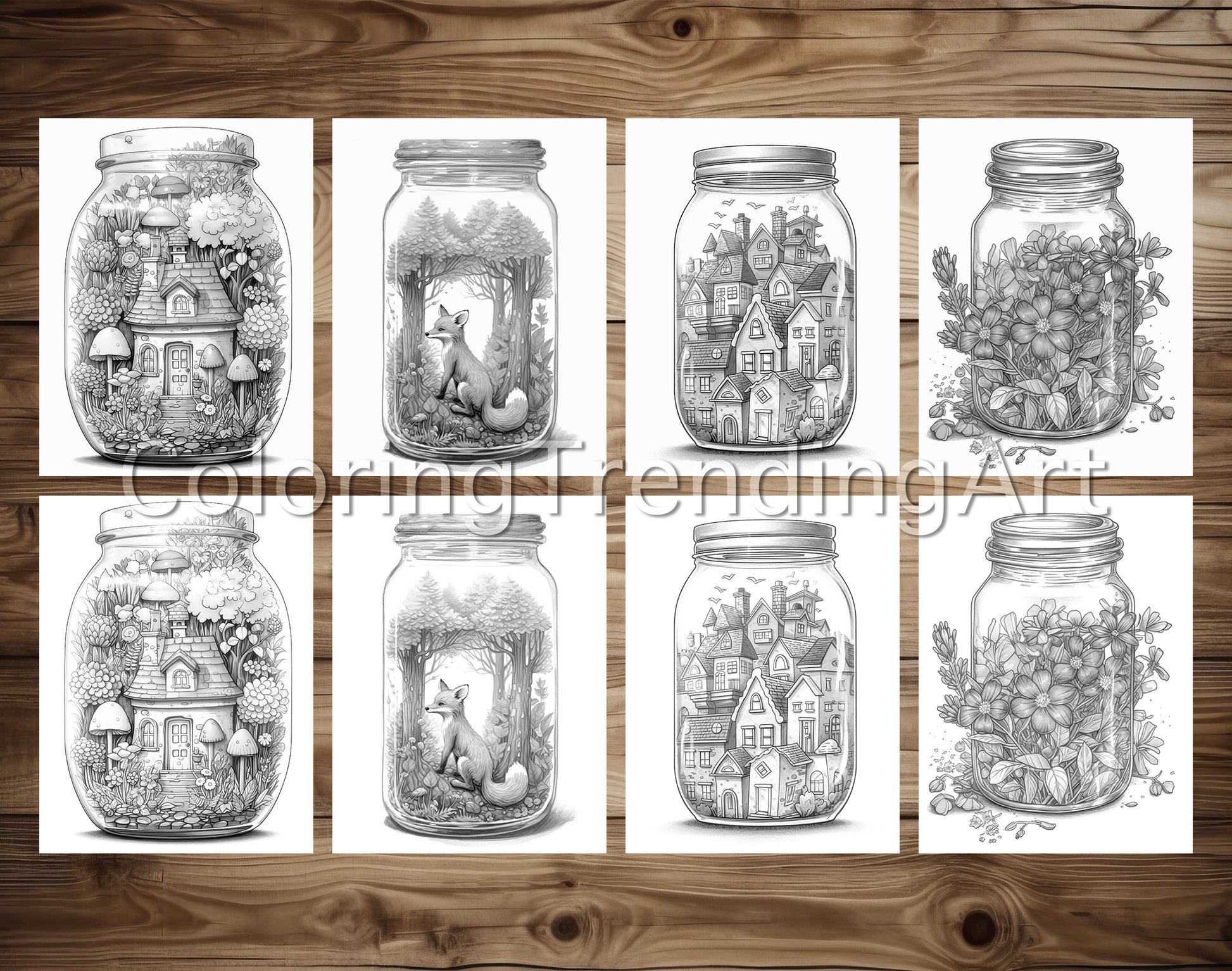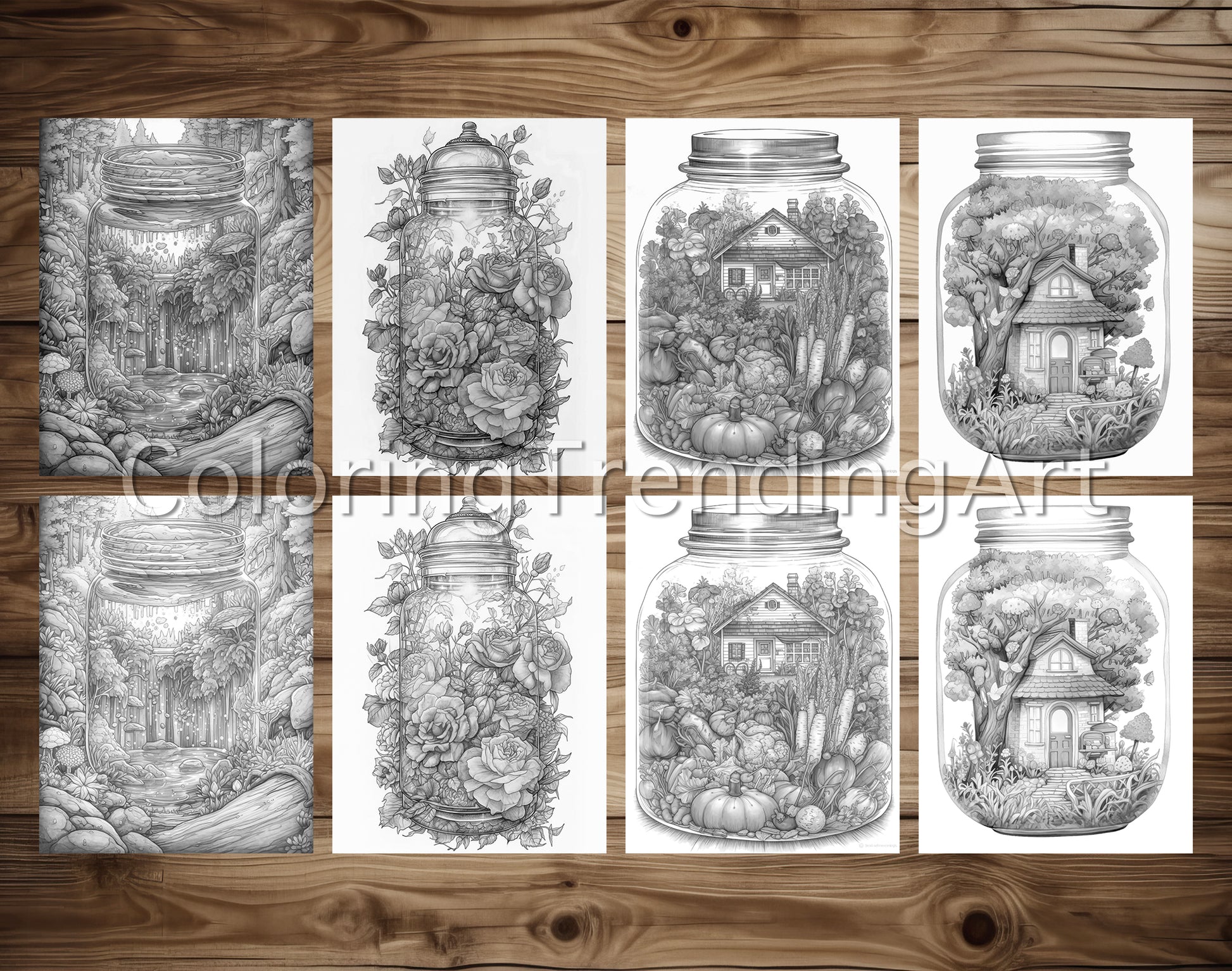 25 Peaceful Life In Jar Grayscale Coloring Pages - Instant Download - Printable PDF Dark/Light