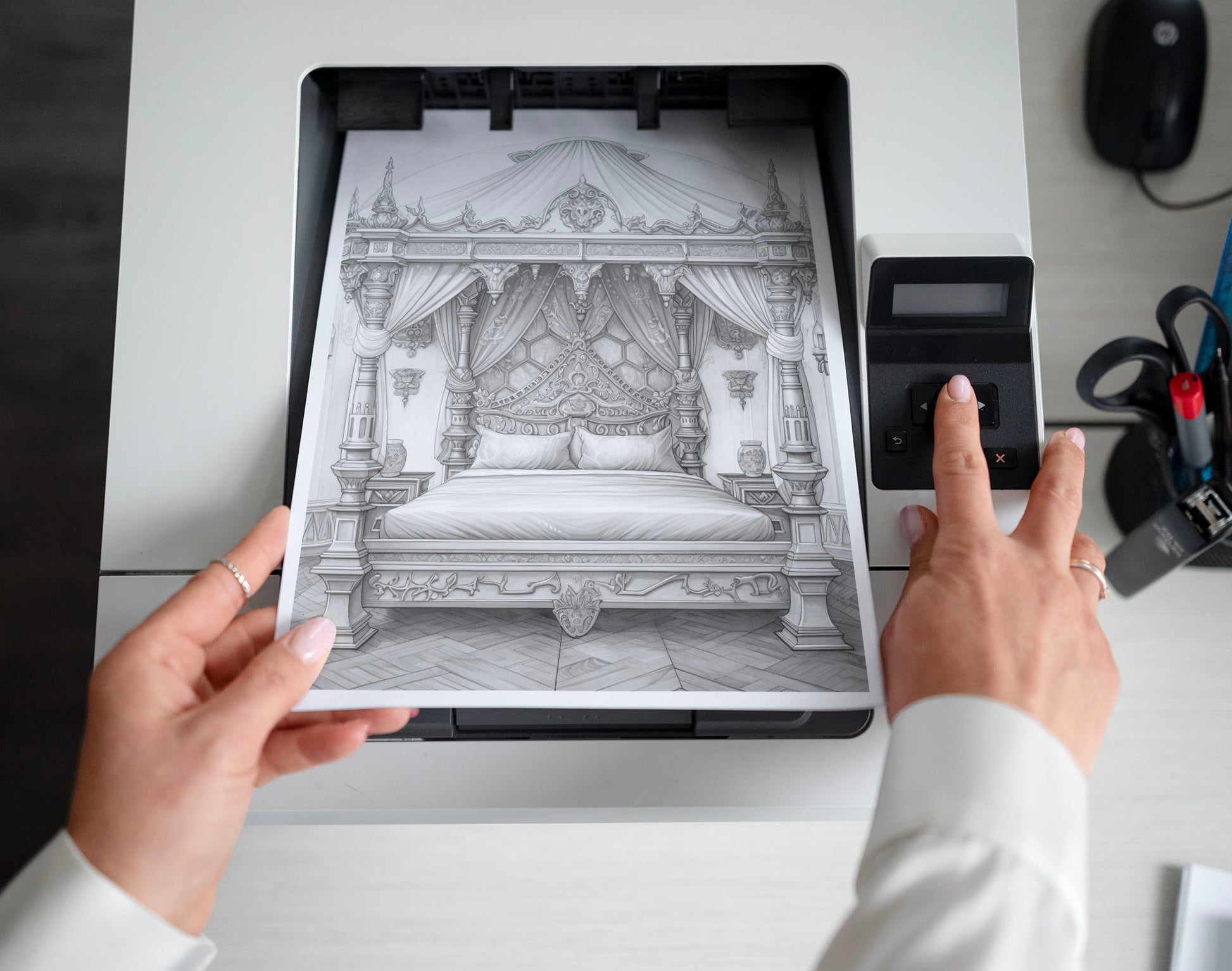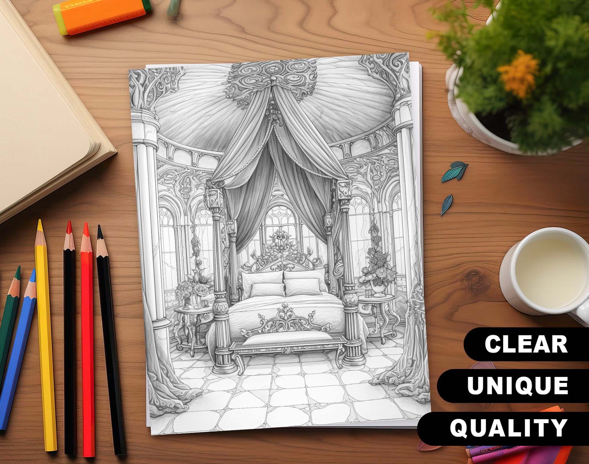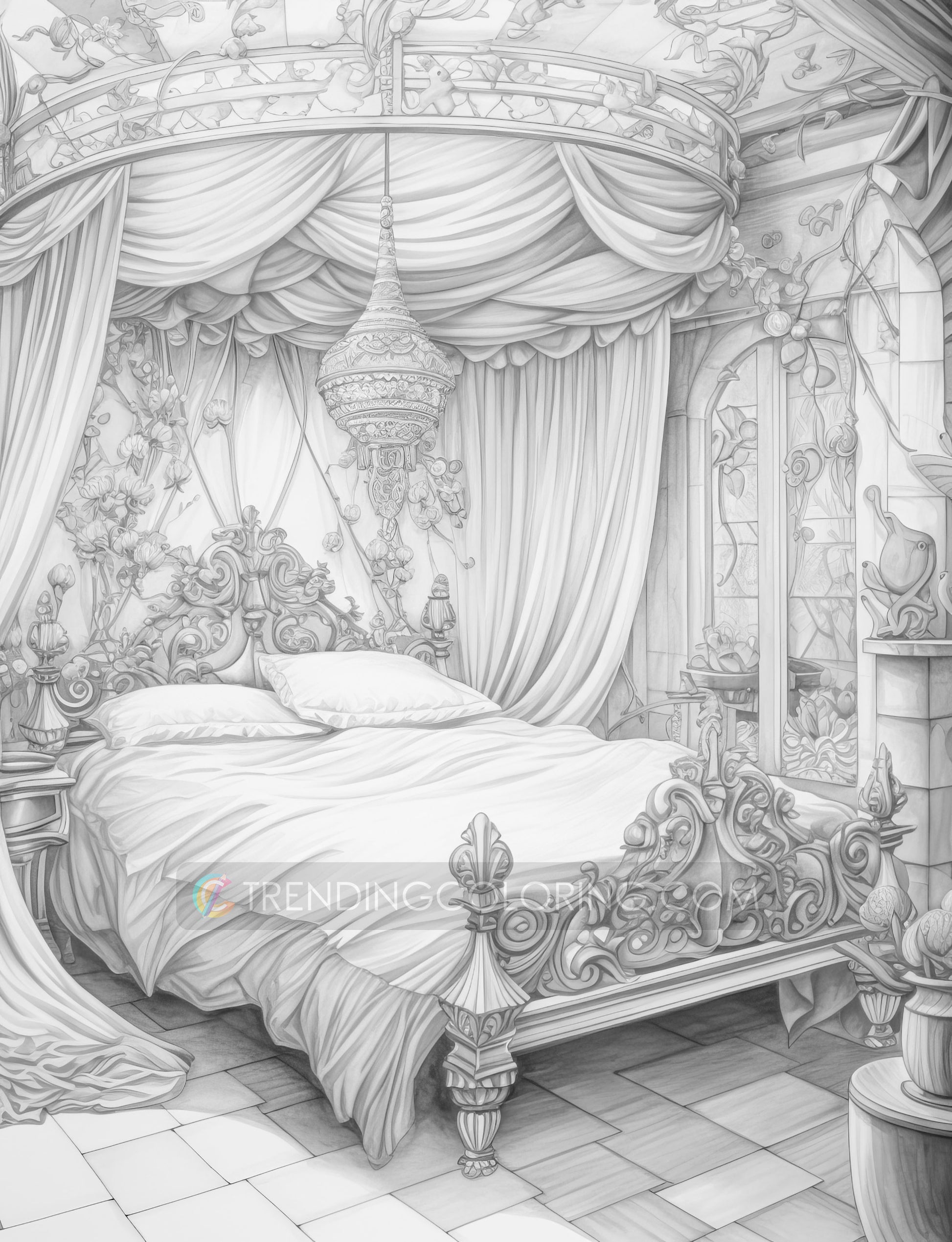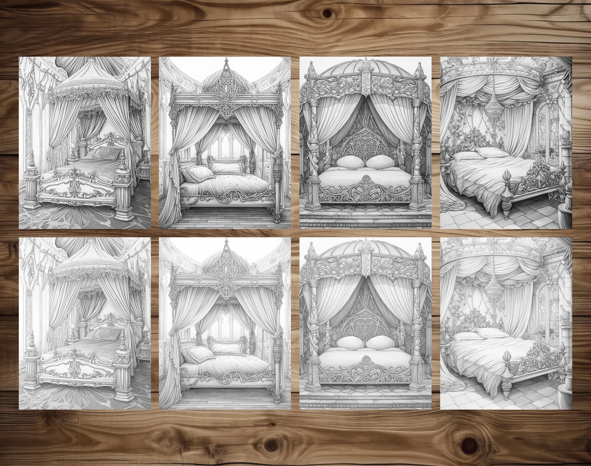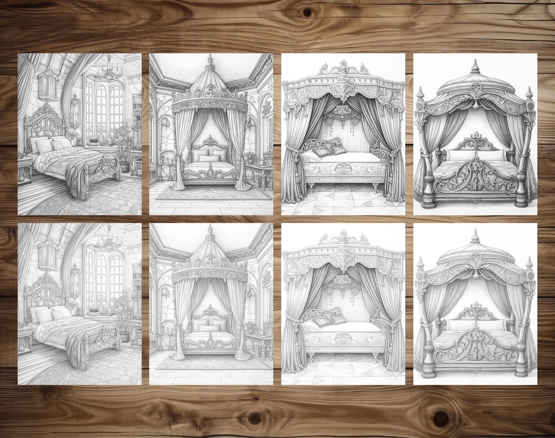 25 Princess Bed Grayscale Coloring Pages - Instant Download - Printable PDF Dark/Light