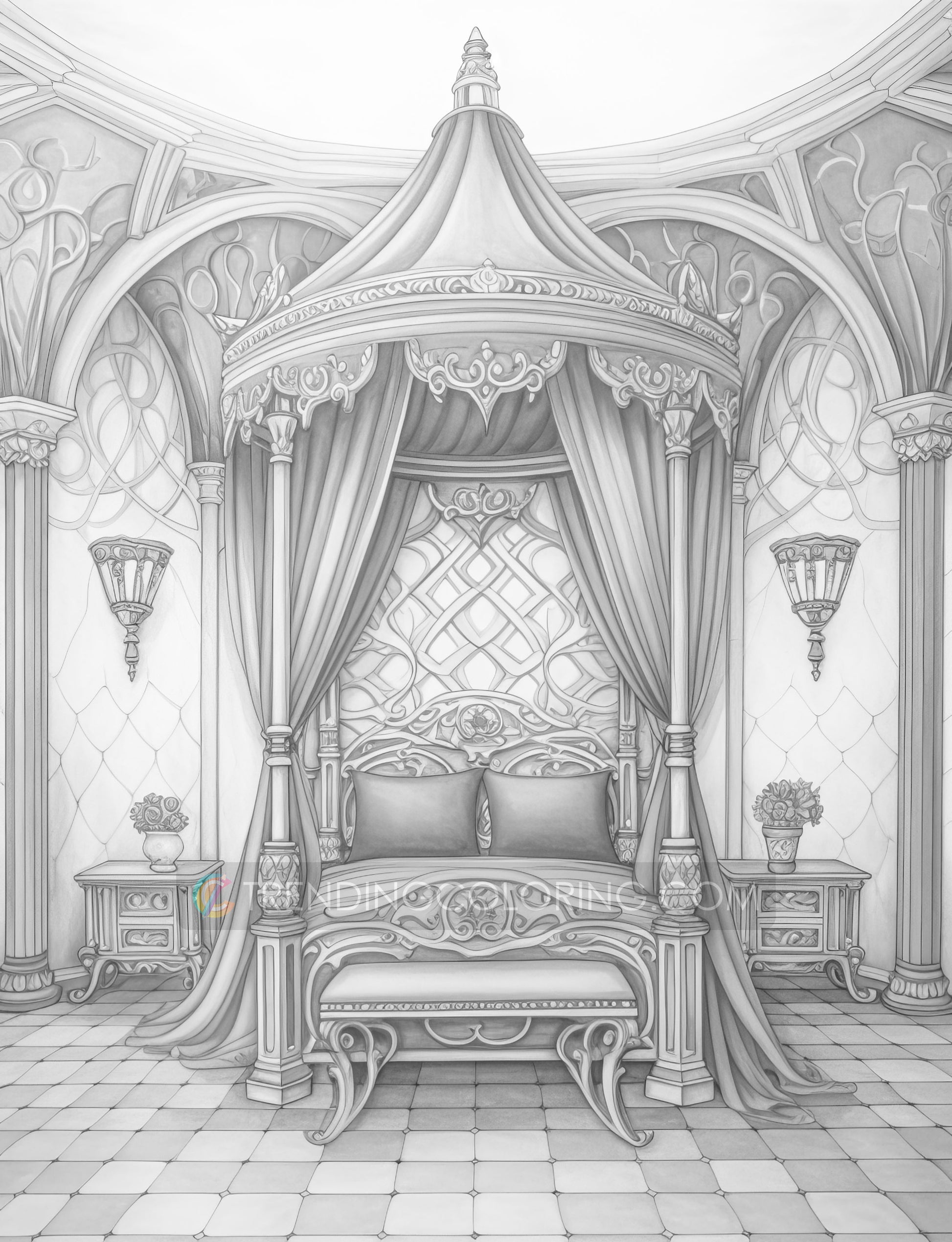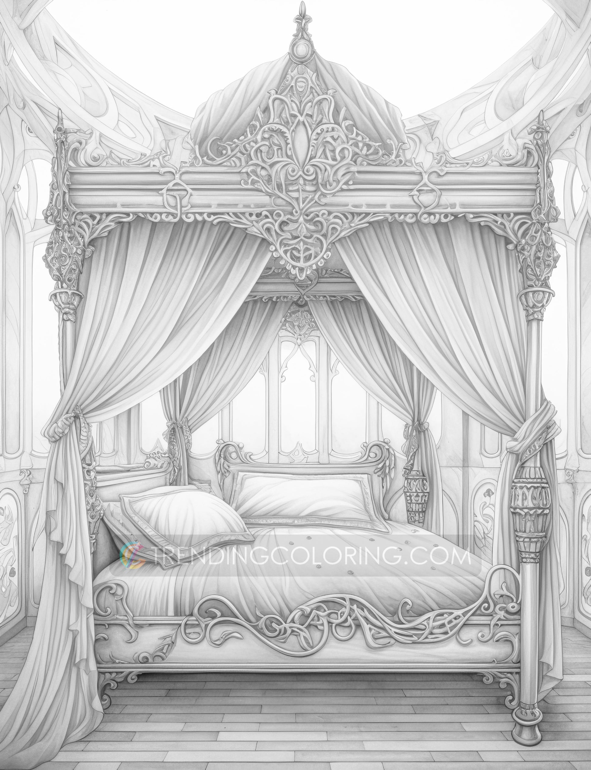 - Anyone intrigued by the blend of opulent and serene themes, eager to bring these unique Princess Bed scenes to life through color.