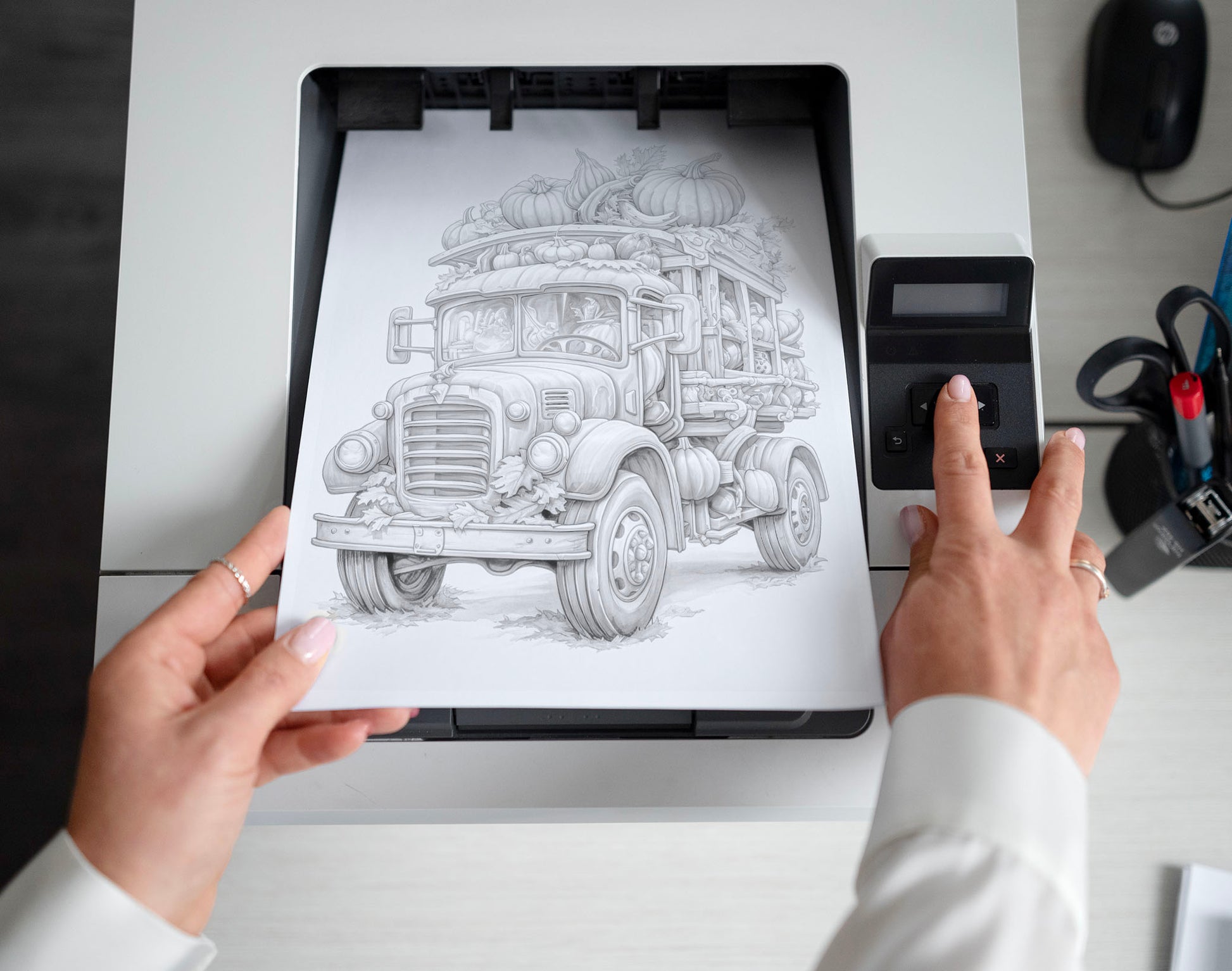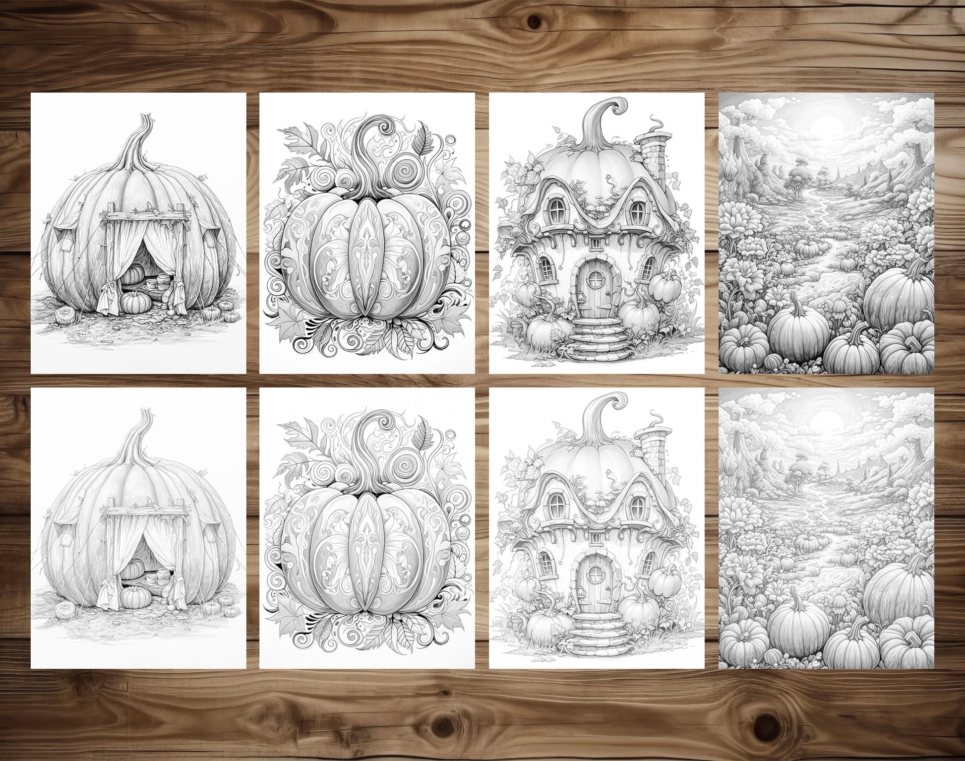 25 Pumpkin World Grayscale Coloring Pages - Instant Download - Printable PDF Dark/Light