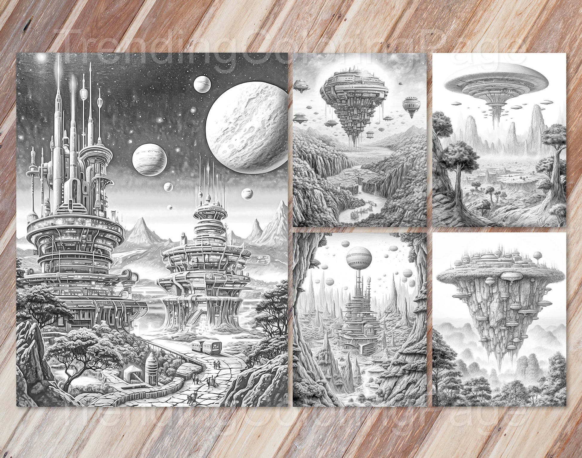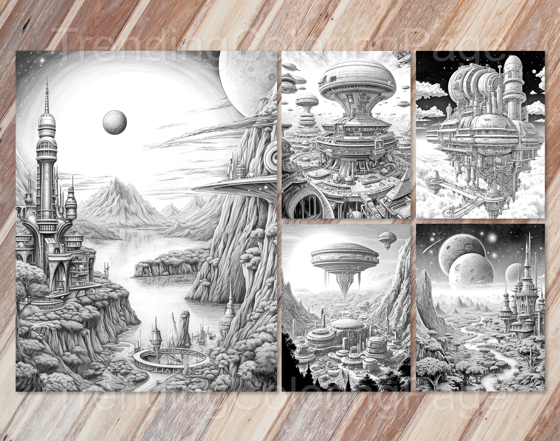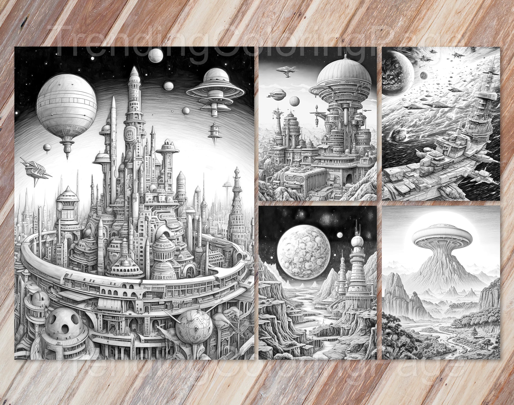 - 30 Futuristic Universe-Themed Grayscale Coloring Pages