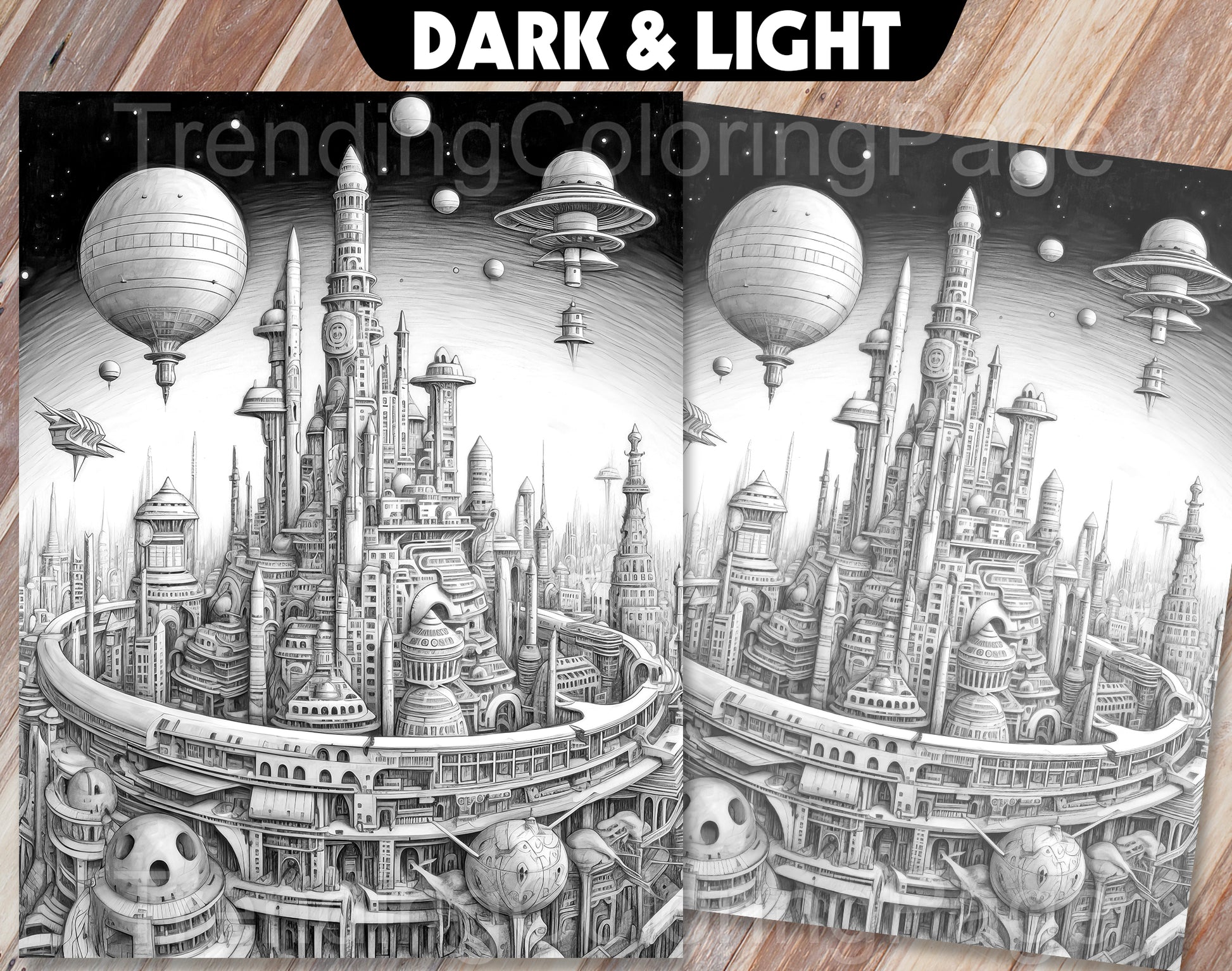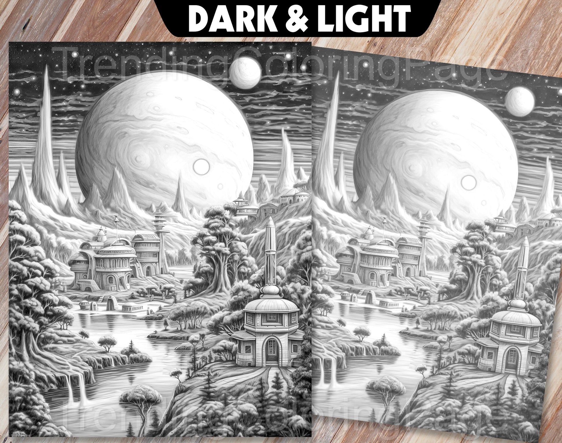 30 The Future of the Universe Grayscale Coloring Pages - Instant Download - Printable PDF Dark/Light