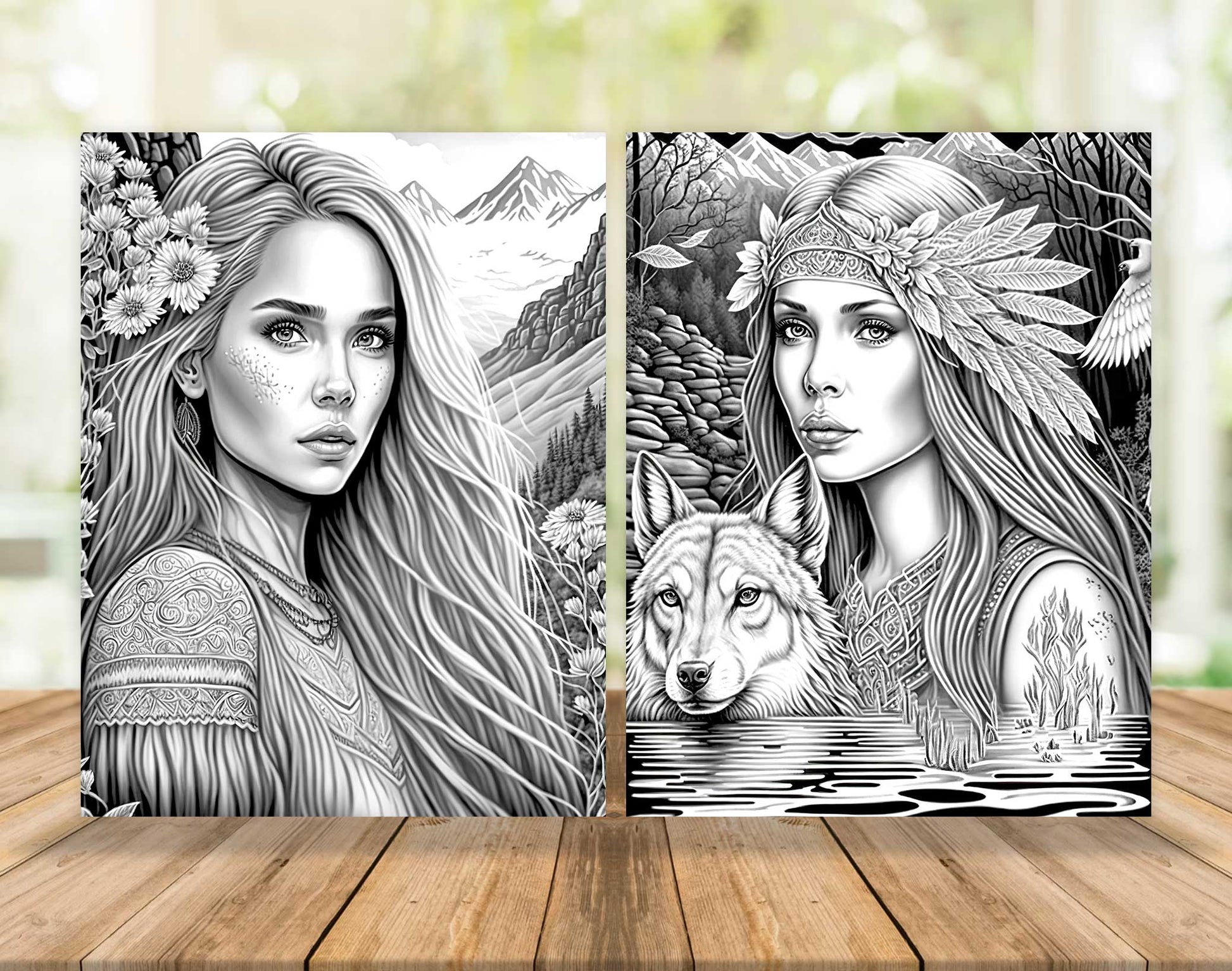 35 Boho Beauties Grayscale Coloring Pages - Instant Download - Printable PDF