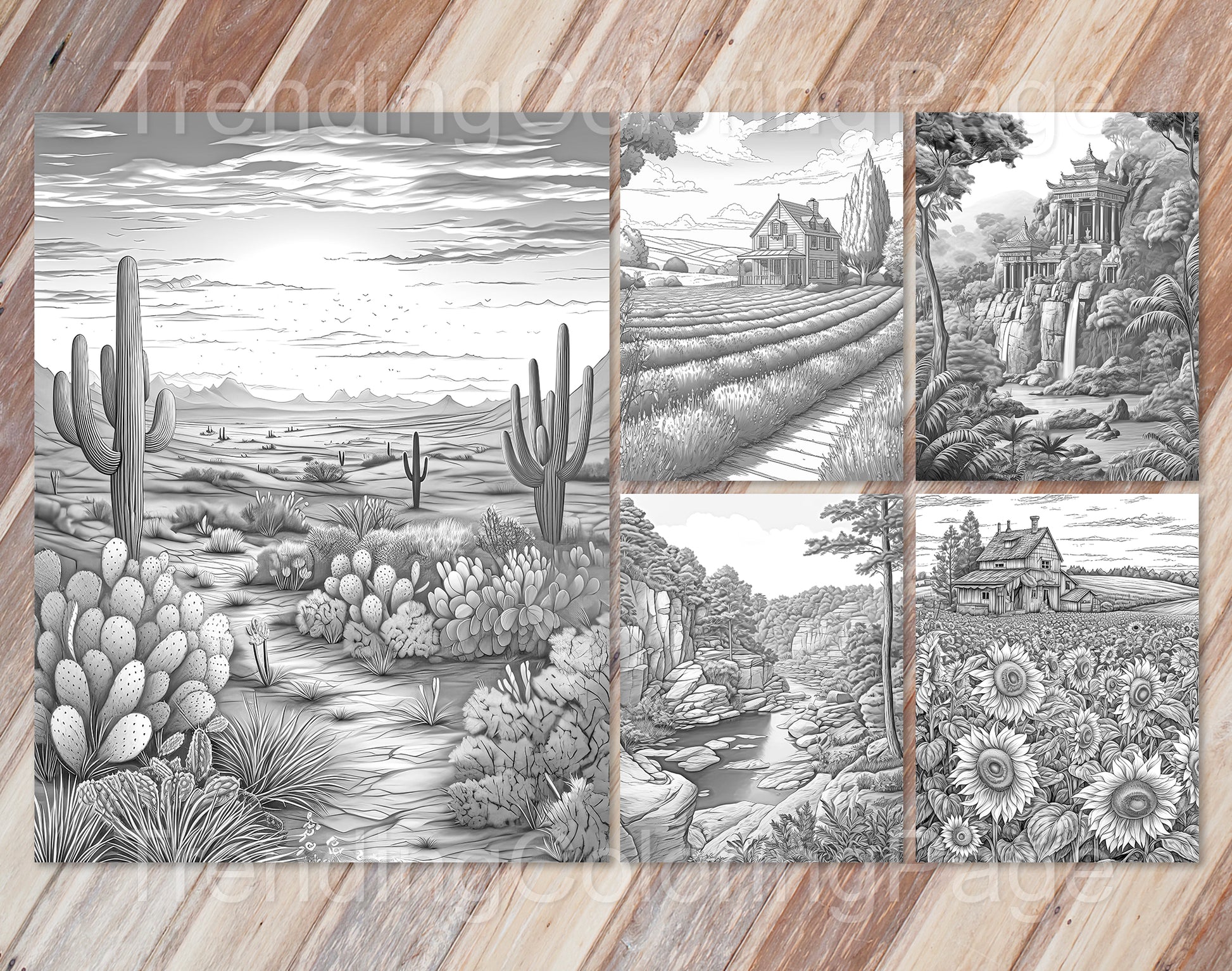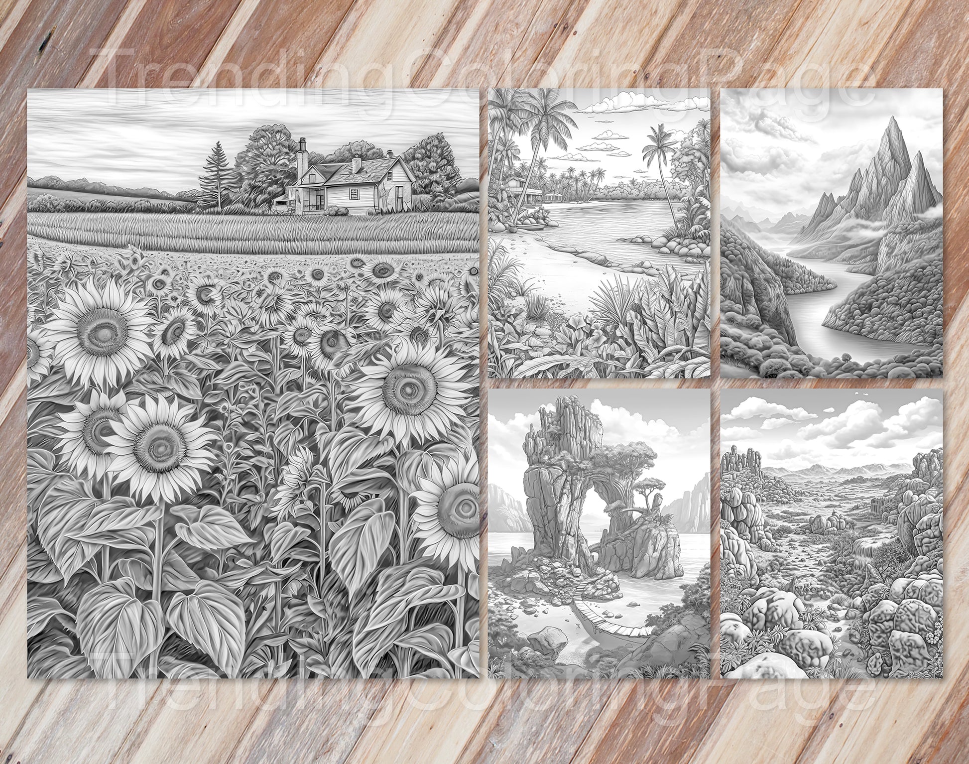 As you color, you'll be immersed in a variety of natural scenes, from lush forests and tranquil rivers to detailed botanicals and serene wildlife. The grayscale shading enhances the depth and realism of each scene, inviting you to explore the interplay of light and shadow as you bring these natural wonders to life. Whether you opt for the striking contrasts of the dark grayscale or the gentle subtleties of the light grayscale, these pages offer a versatile and meditative coloring experience.