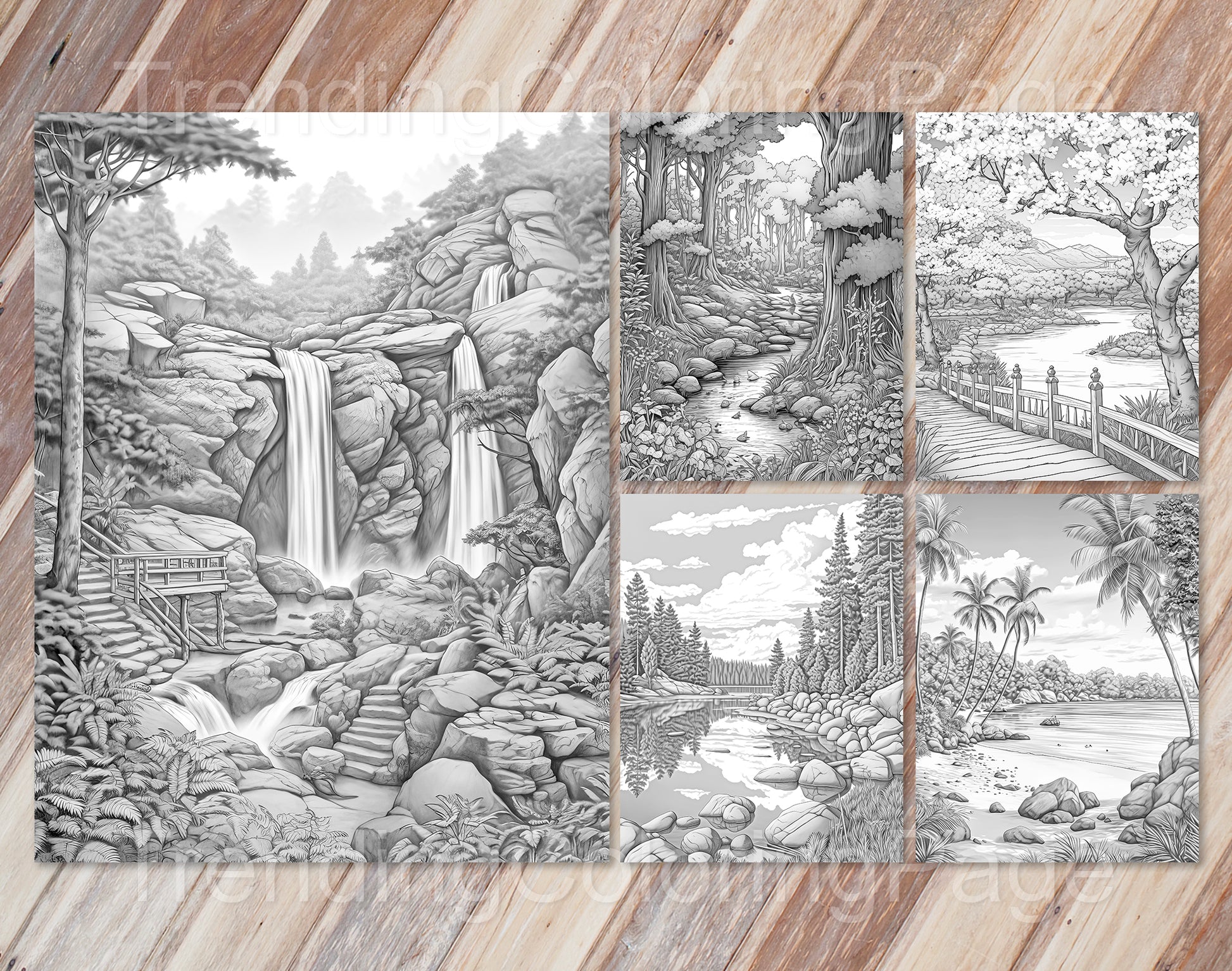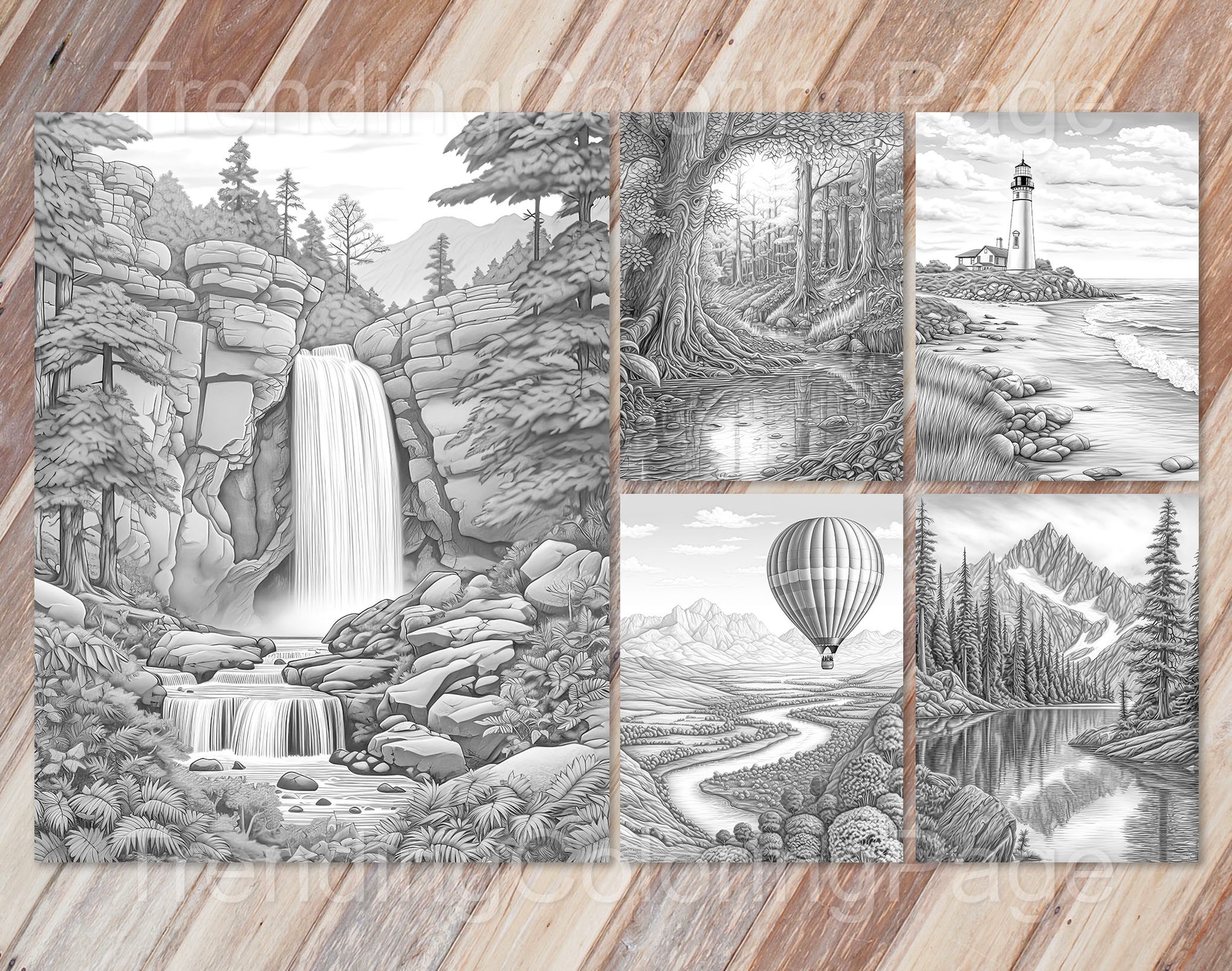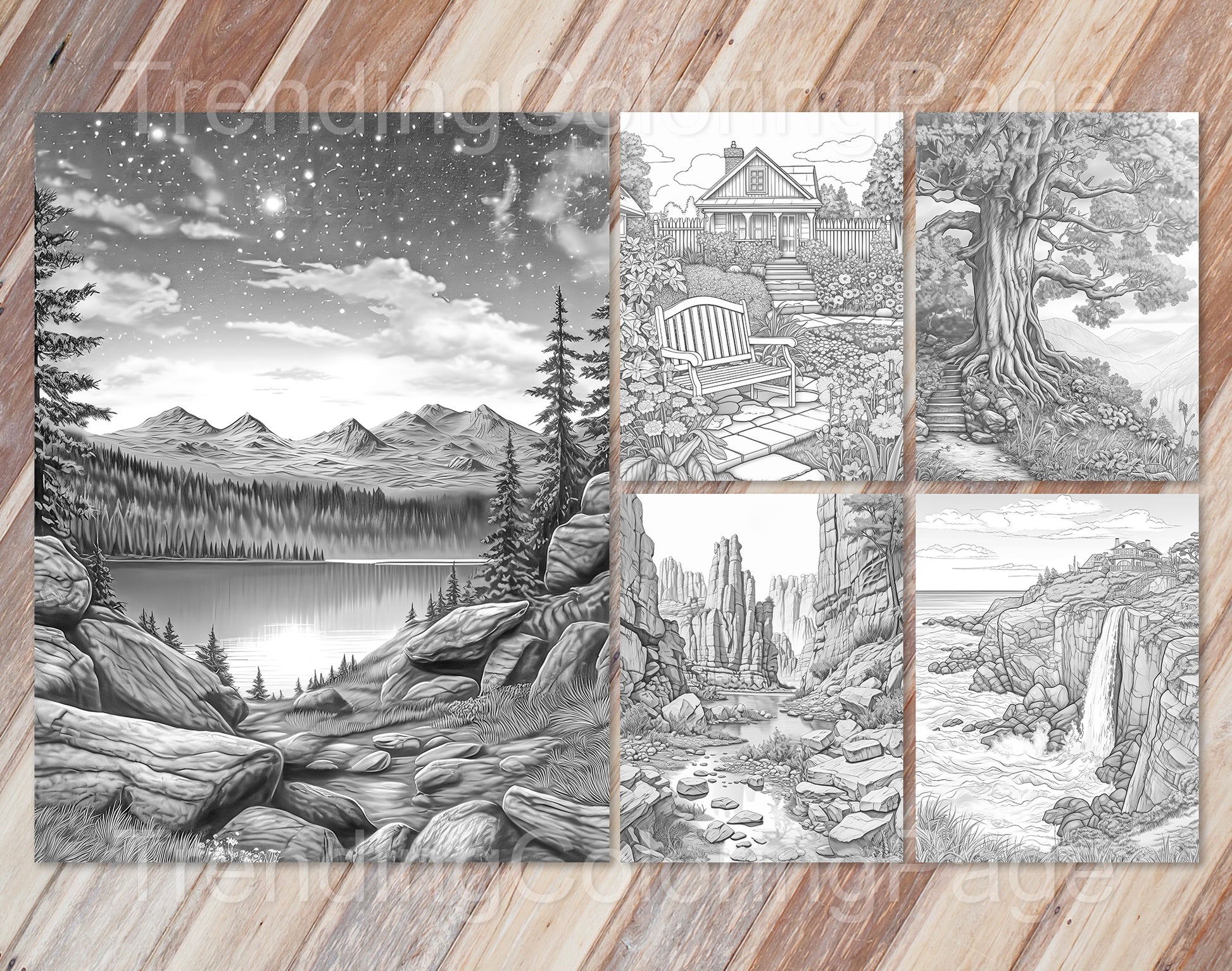 Embark on a journey through the calming scenes of nature with our grayscale coloring pages, and let the tranquility and beauty of the natural world inspire your creativity.