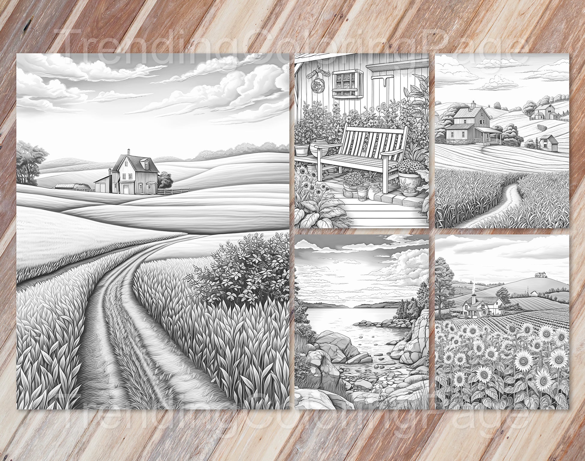 30 Country Farm Grayscale Coloring Pages - Instant Download - Printable PDF