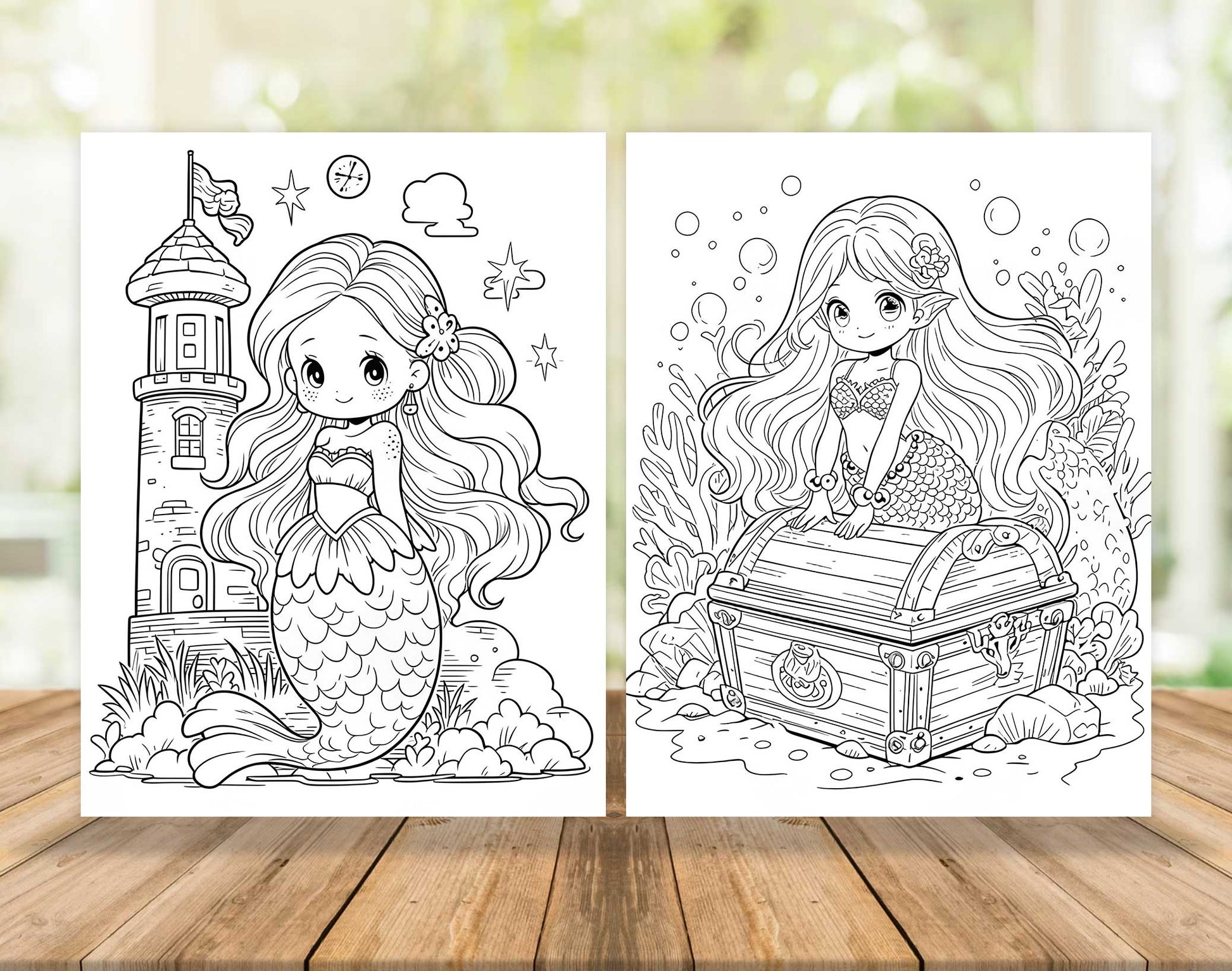 40 Kawaii Mermaid Coloring Pages - Instant Download - Printable PDF