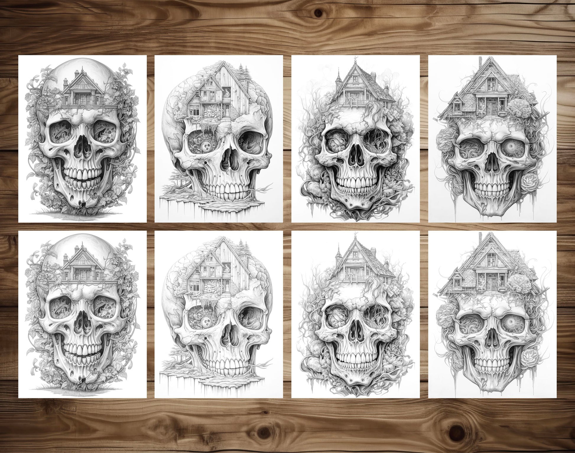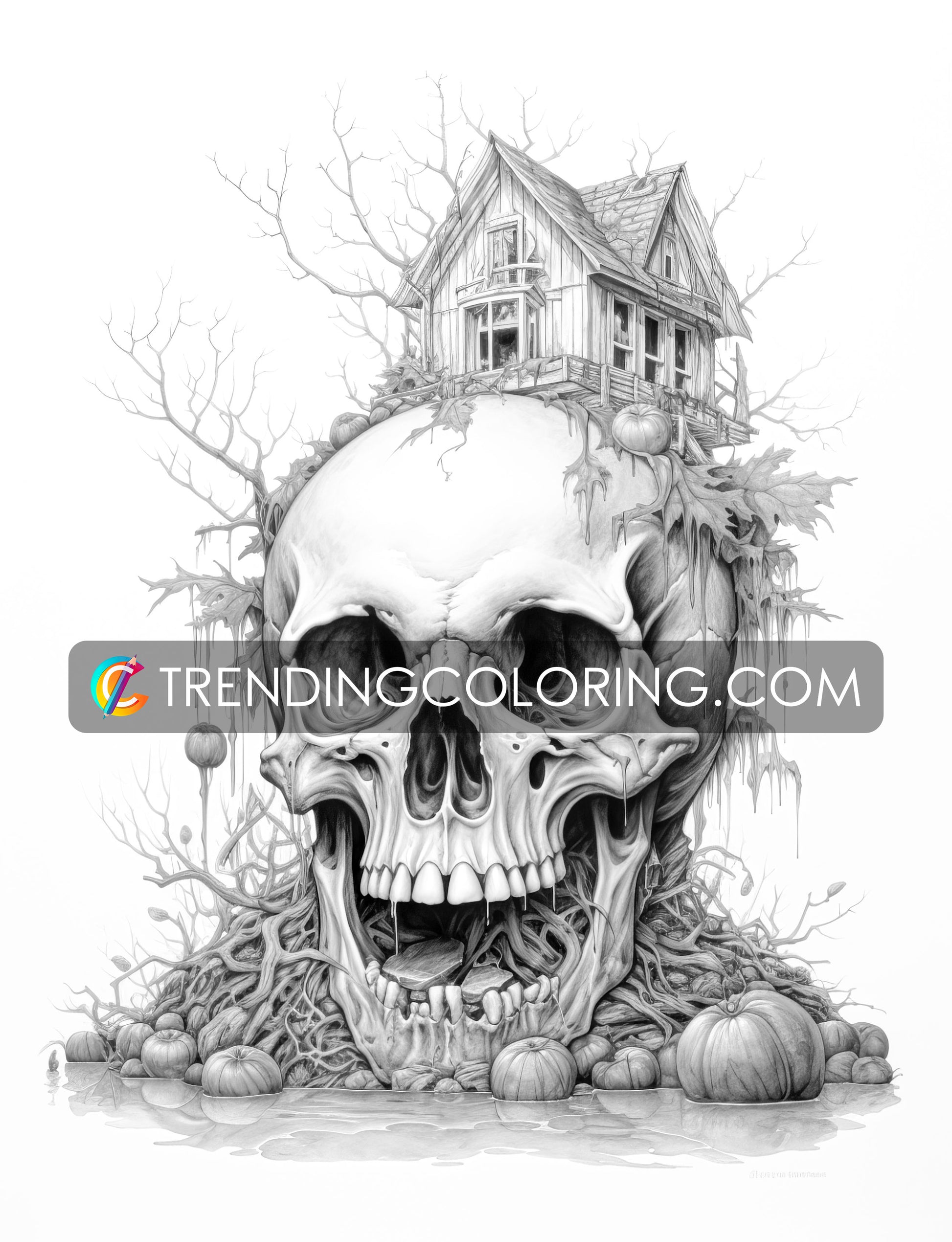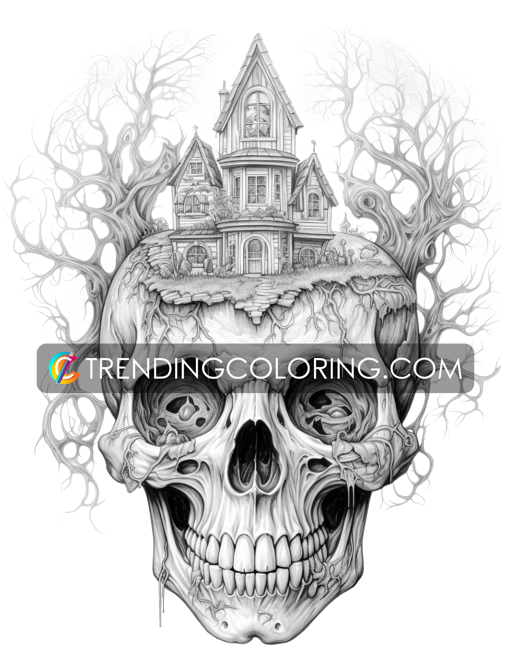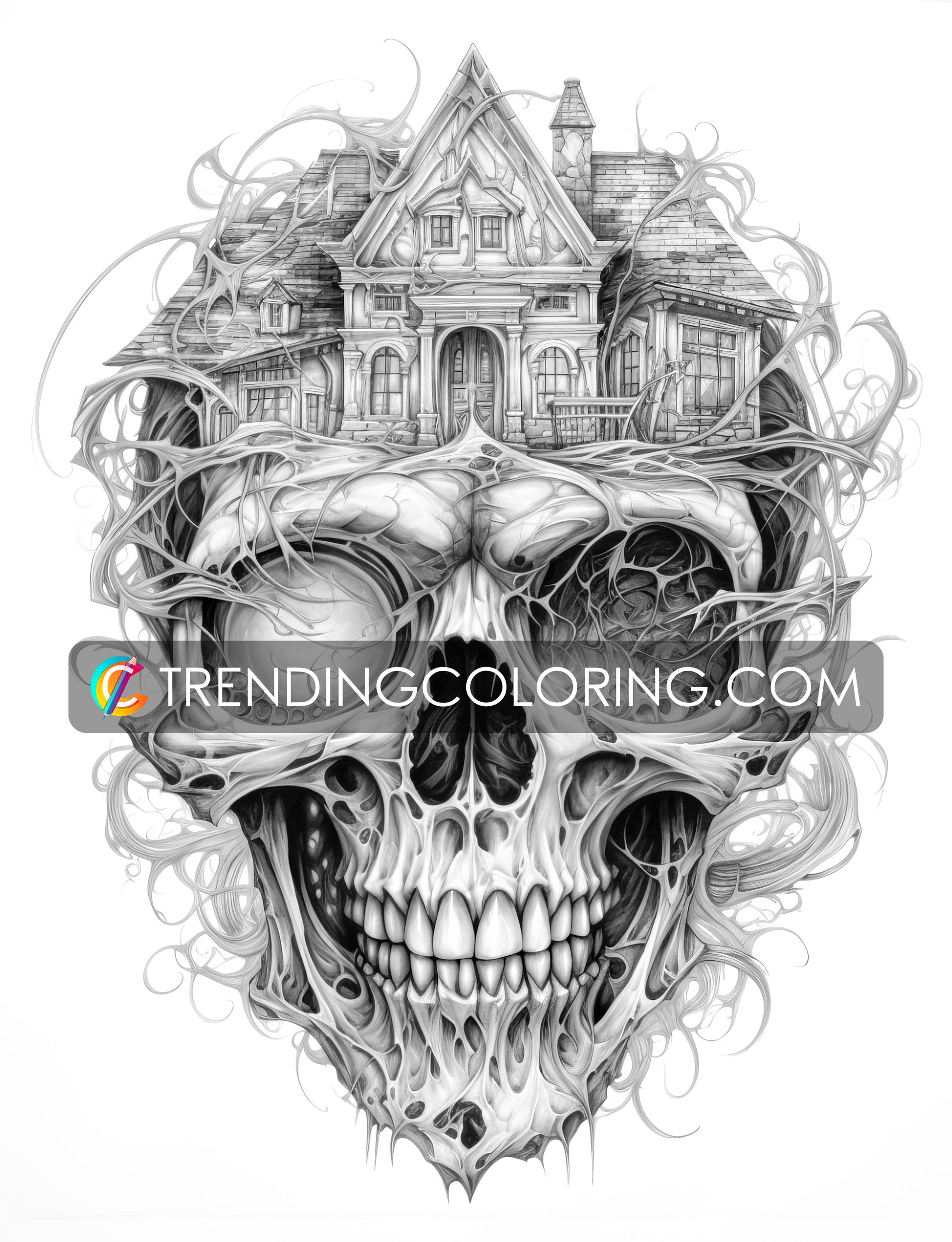 - 40 Unique Skull House Grayscale Pages