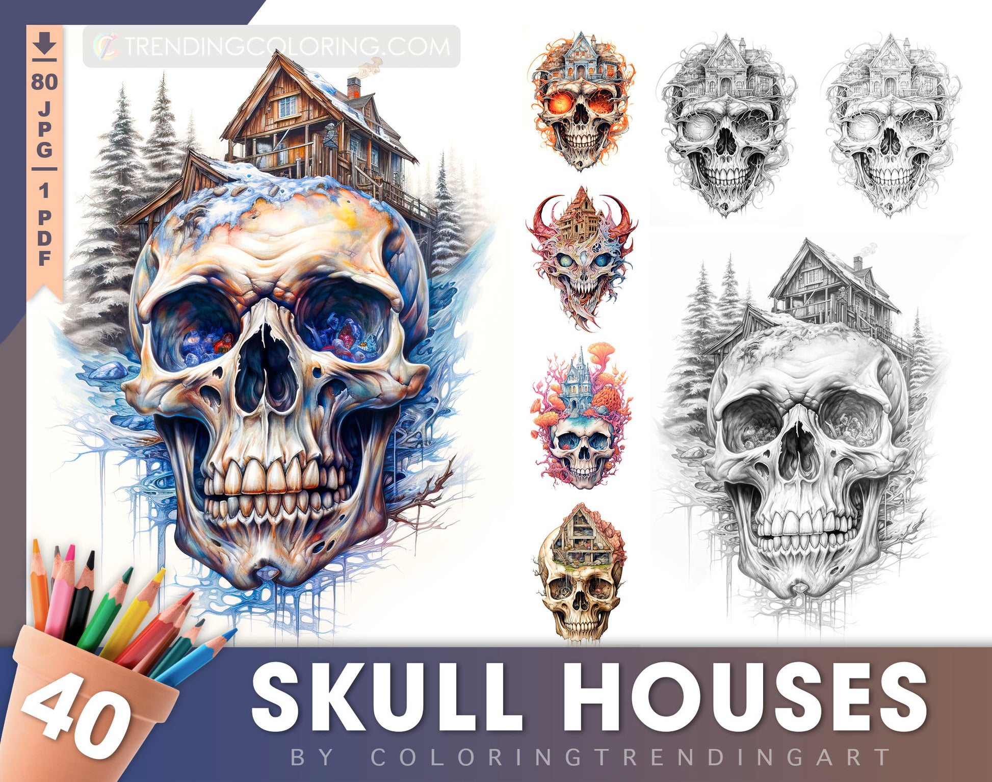 - Anyone captivated by the blend of architecture and the macabre, eager to bring these unique skull houses to life through color.