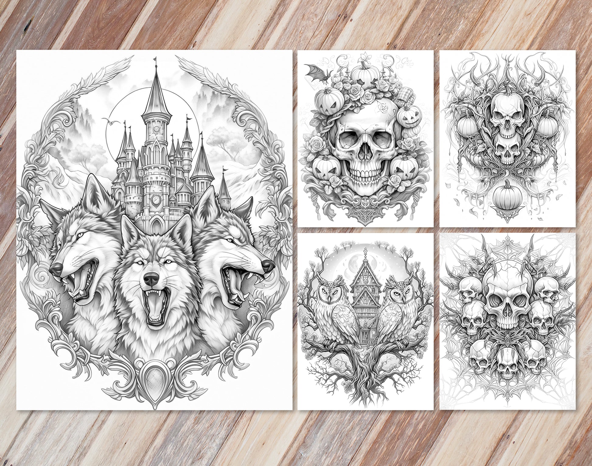 Immerse yourself in the detailed wonder of the Halloween season with our 45 Intricate Halloween Grayscale Coloring Pages.