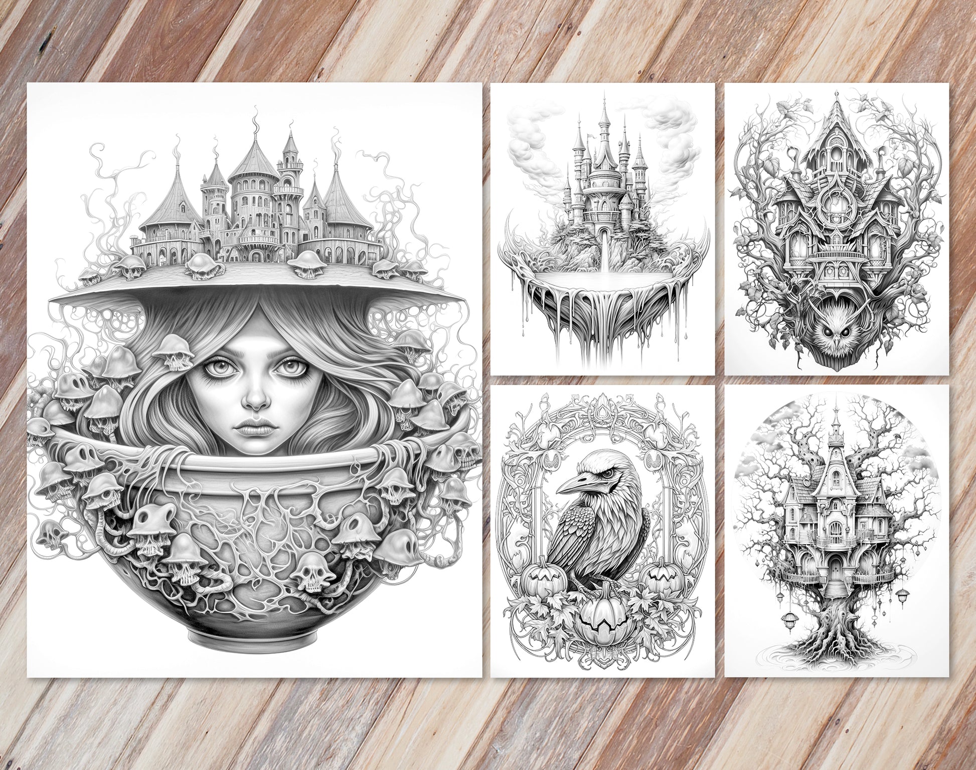 - 45 Exquisitely Detailed Halloween Grayscale Pages
