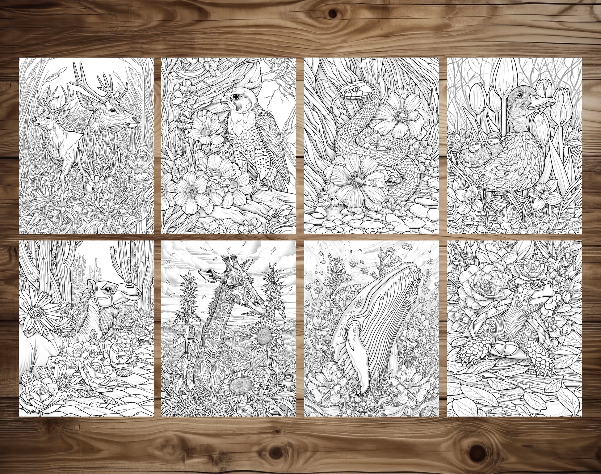 Immerse yourself in the harmonious world of "50 Animals & Flowers Coloring Pages." This delightful collection invites you to explore the beauty of nature, where animals and flowers coexist in captivating scenes, providing a perfect blend of relaxation and creativity.