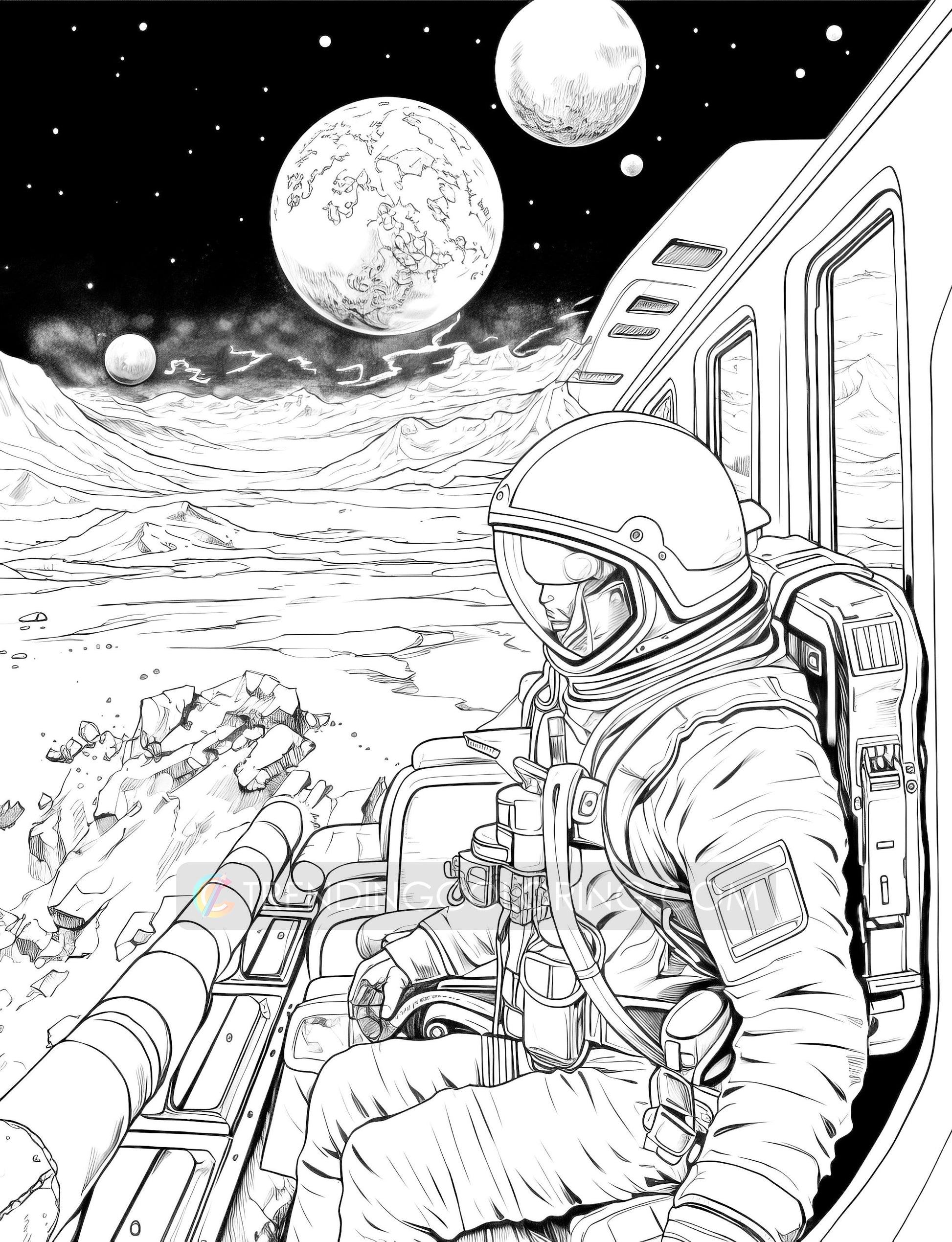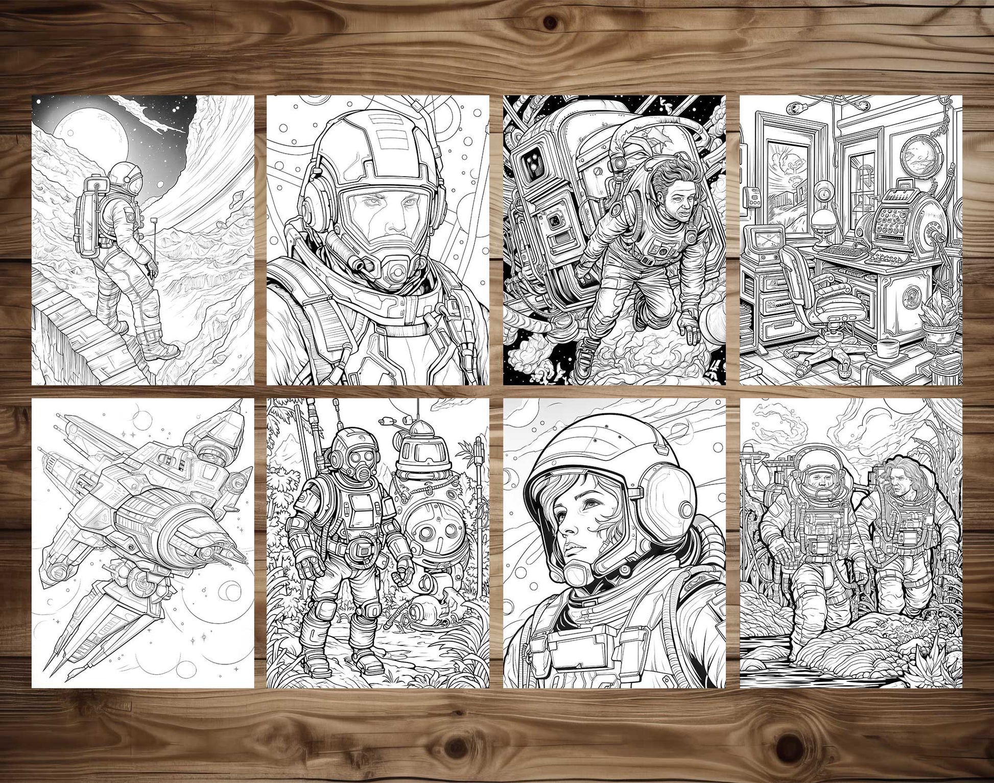 50 Astronaut's Adventure Coloring Pages - Instant Download - Printable PDF