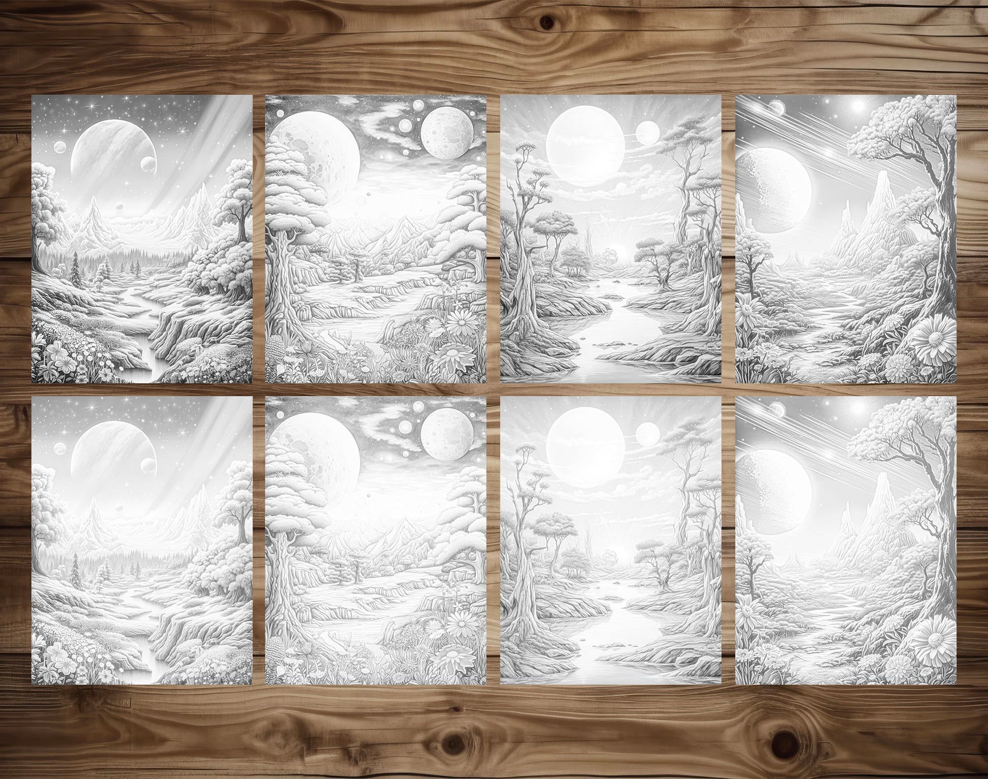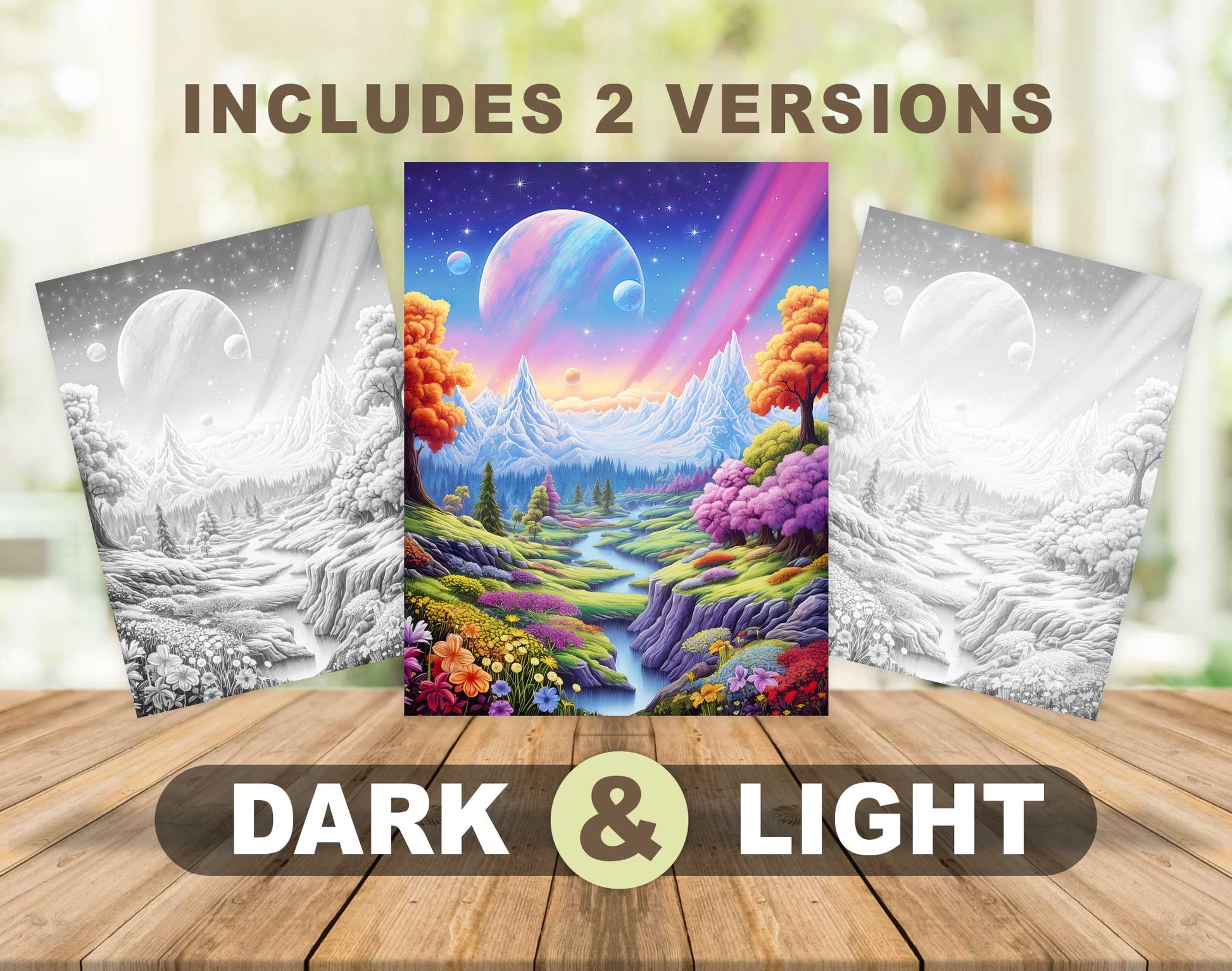 50 Celestial Space Grayscale Coloring Pages - Instant Download - Printable PDF Dark/Light