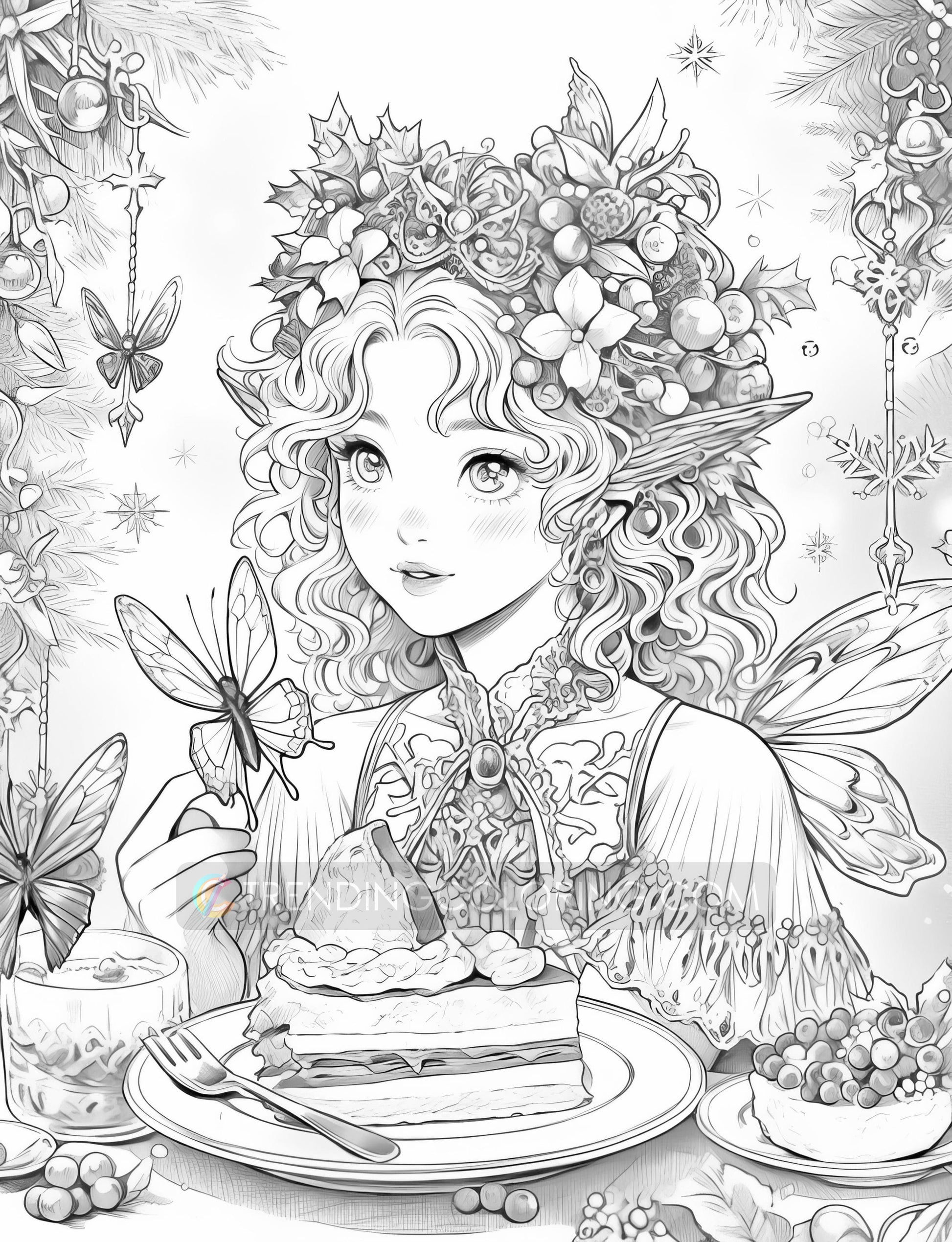 - 50 Enchanting Christmas Fairy Grayscale Pages