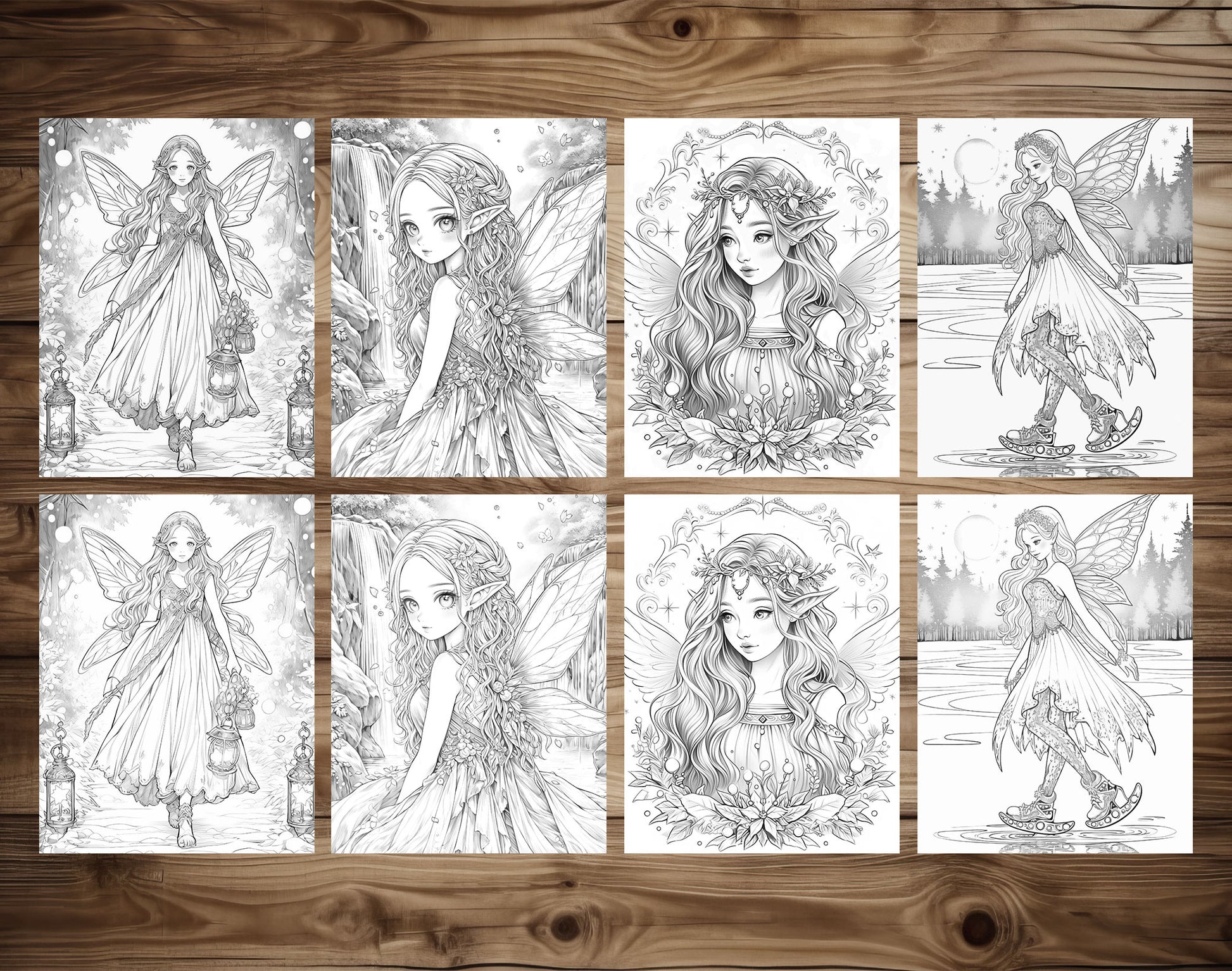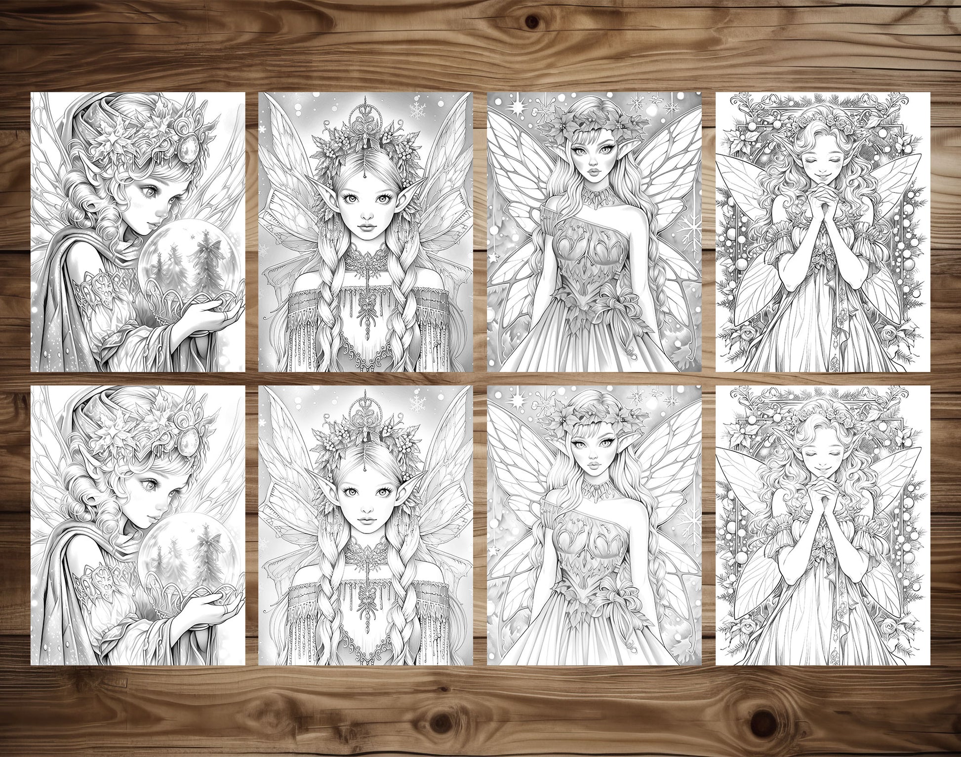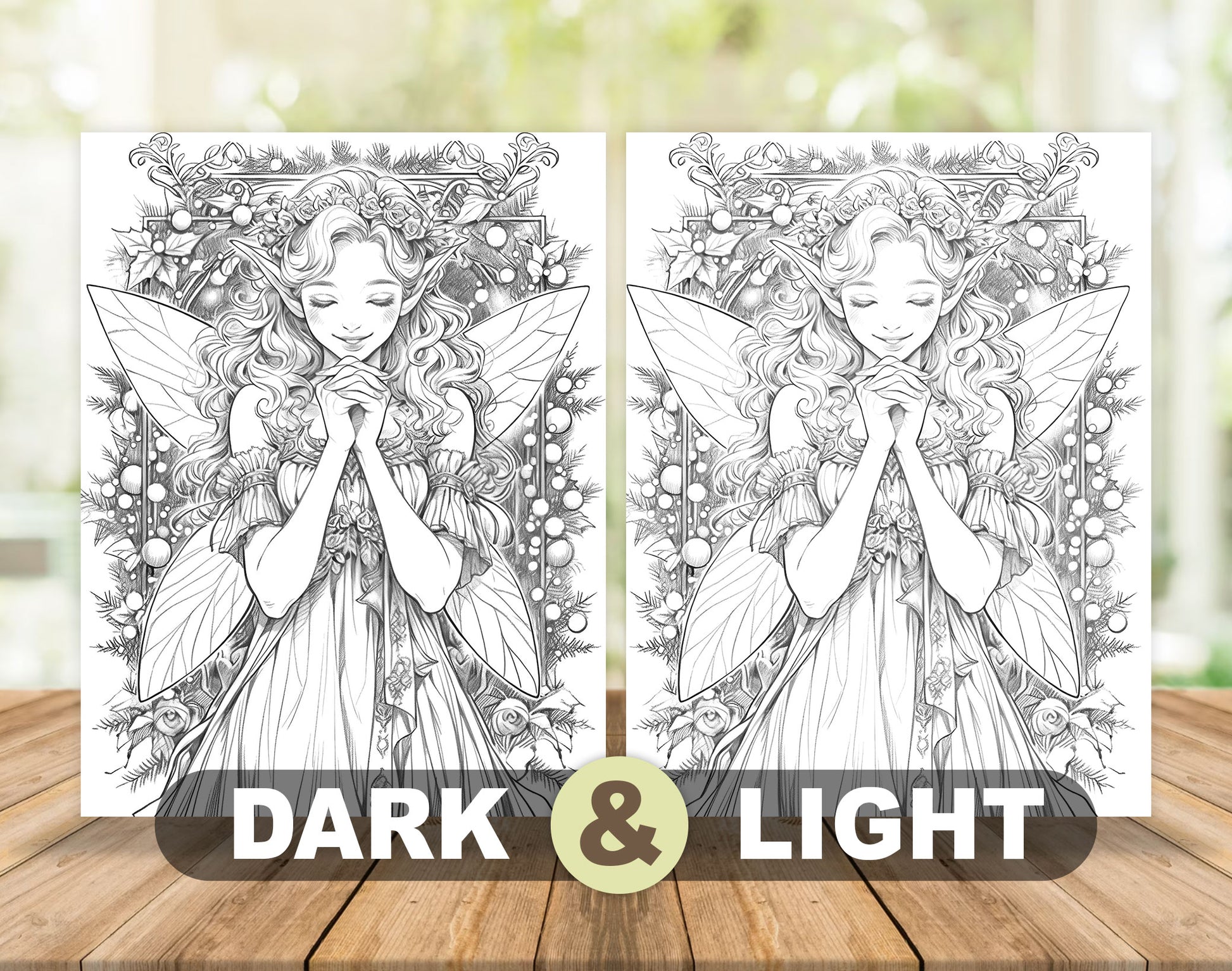 50 Christmas Fairy Grayscale Coloring Pages - Instant Download - Printable PDF Dark/Light