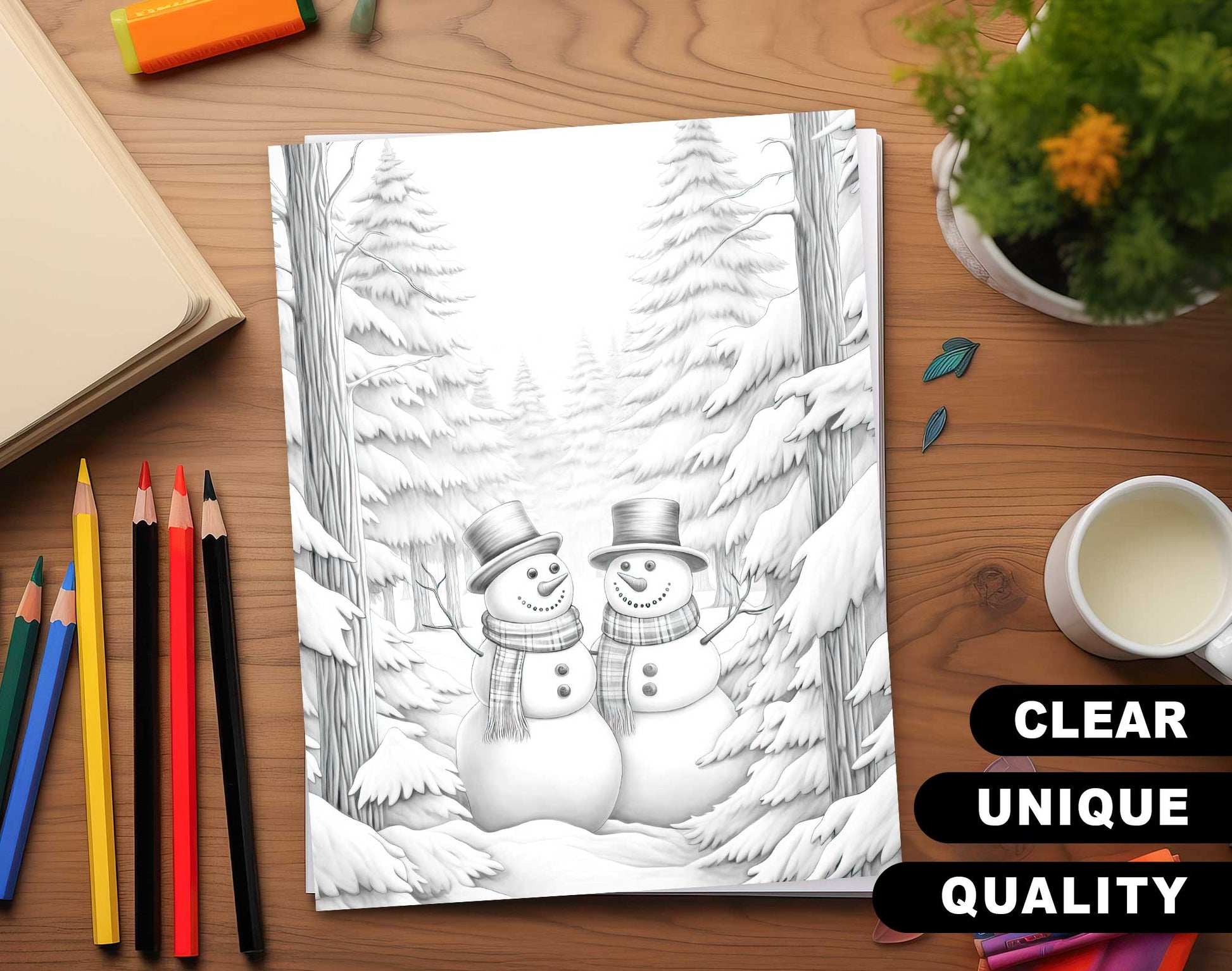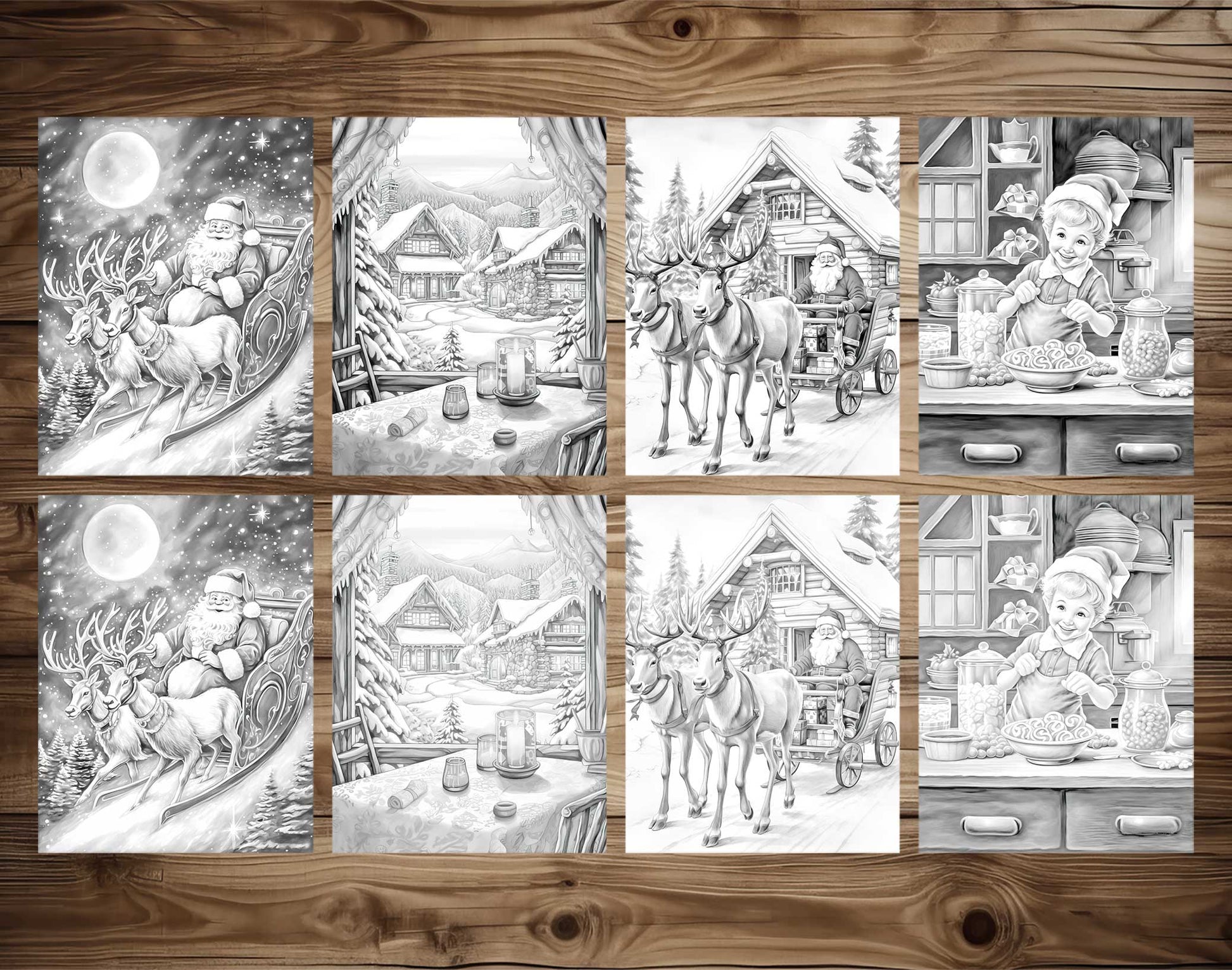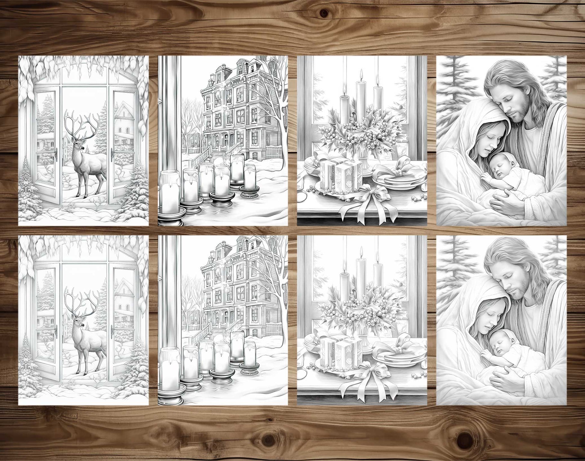 Dive into the spirit of Christmas and showcase your coloring skills with these beautifully designed grayscale coloring pages.