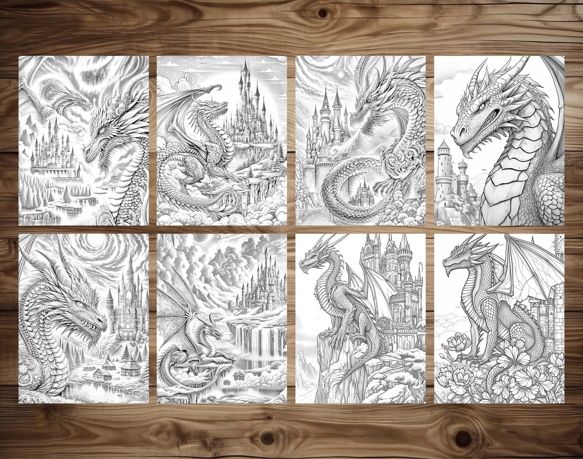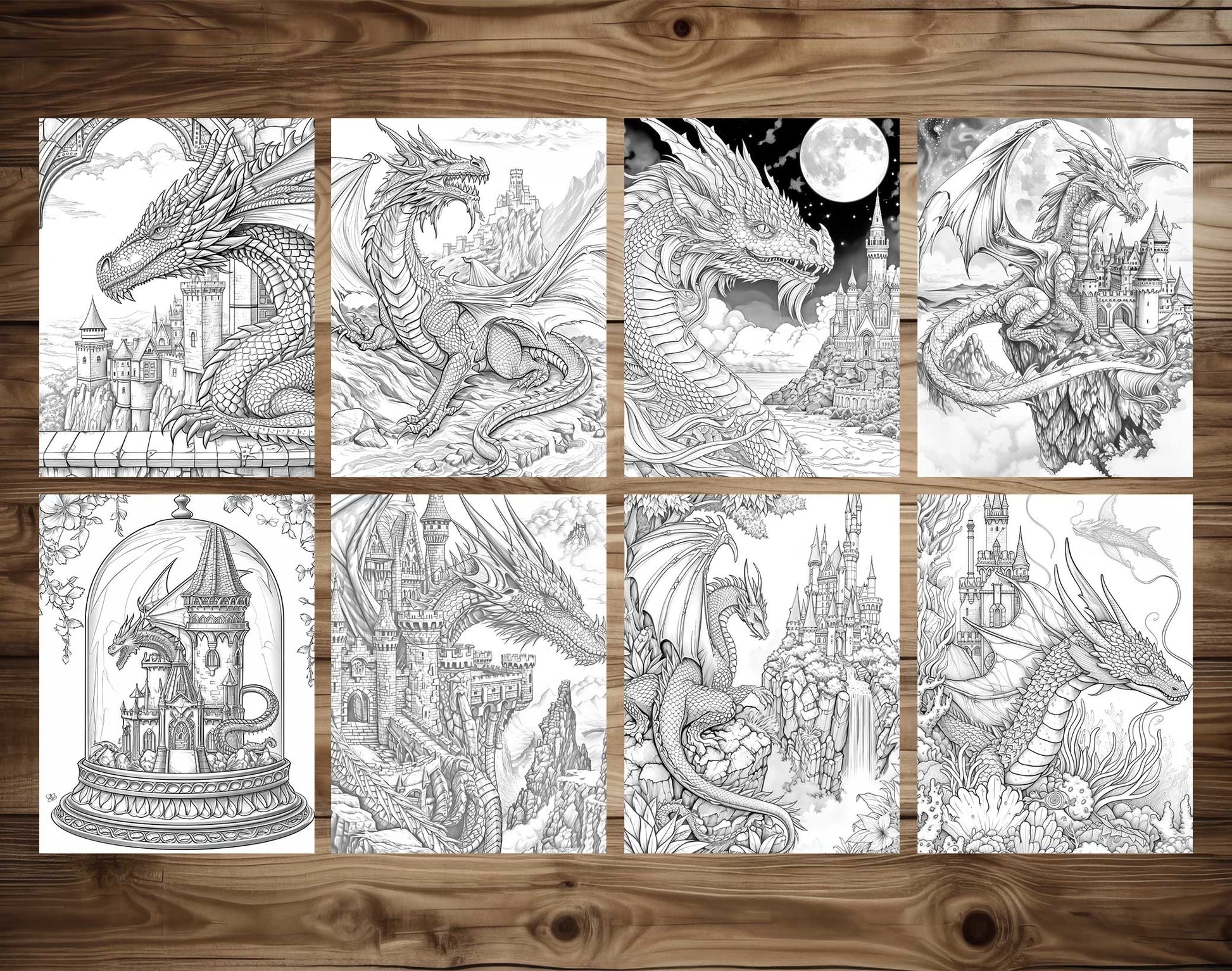 - Majestic Castles and Mighty Dragons: Delve into a realm where dragons soar above towering castles, each page telling a story of power, magic, and mystery.
