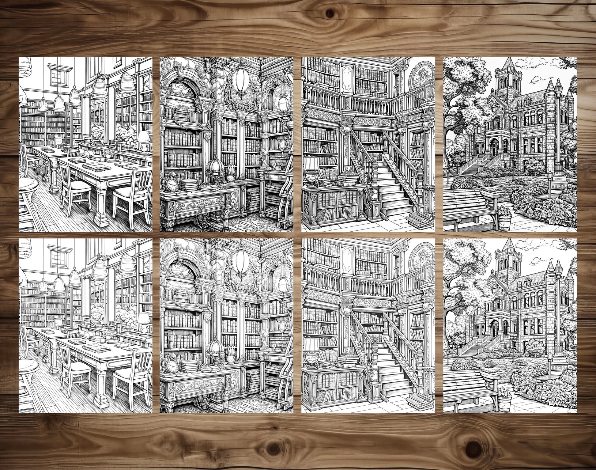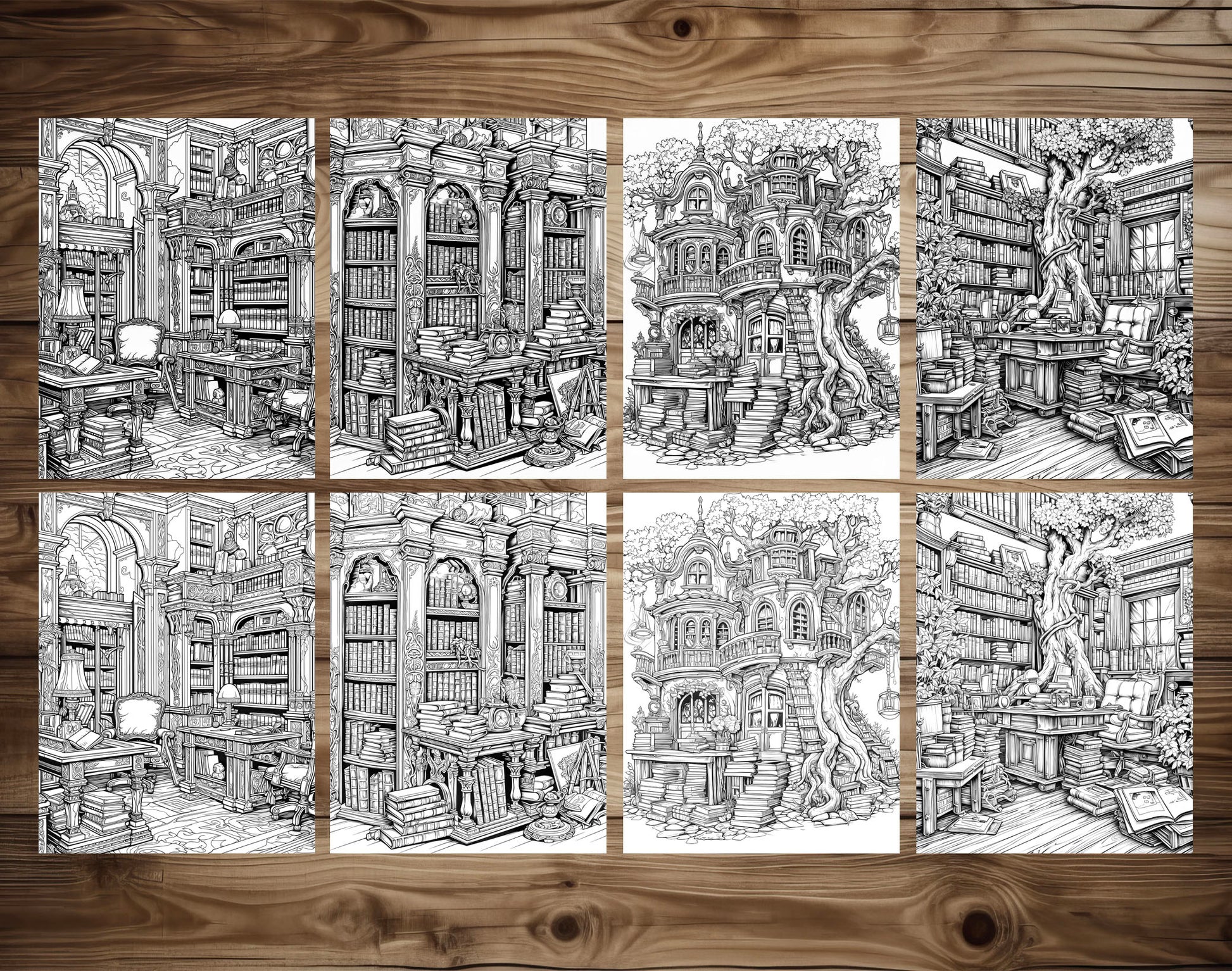 - 50 Magical Library-Themed Grayscale Coloring Pages