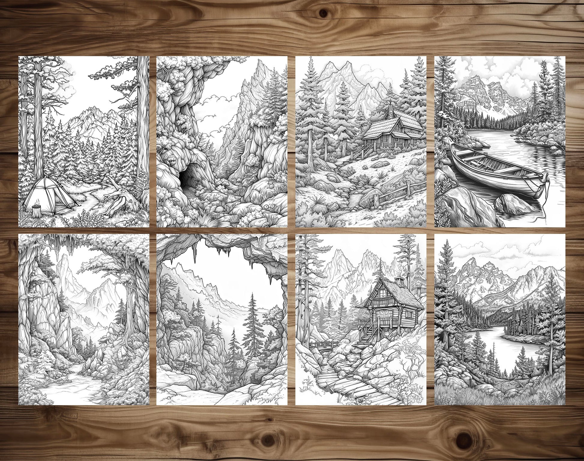 - Vibrant Variety: Color diverse North American wilderness scenes from misty pacific forests to autumn woodlands.