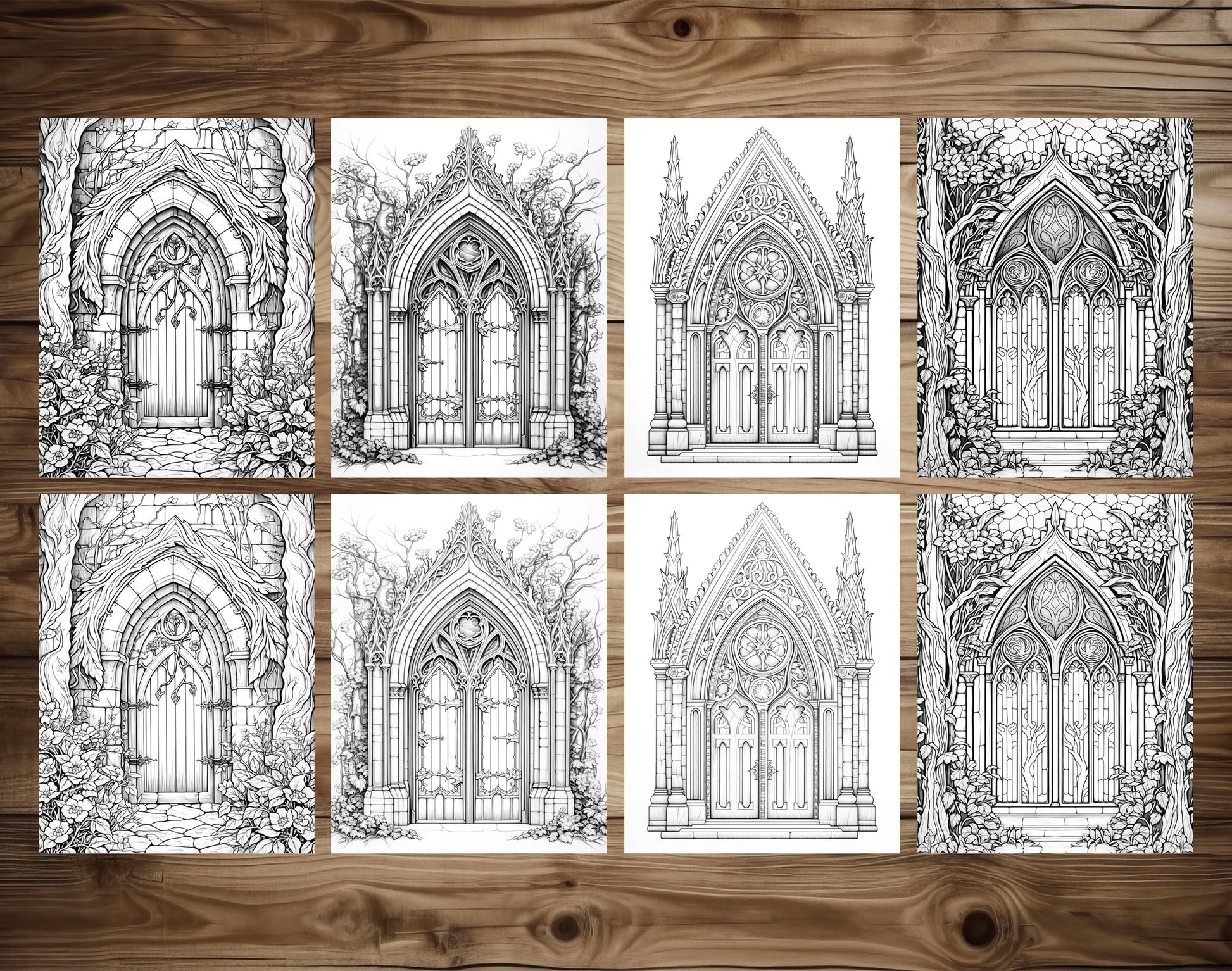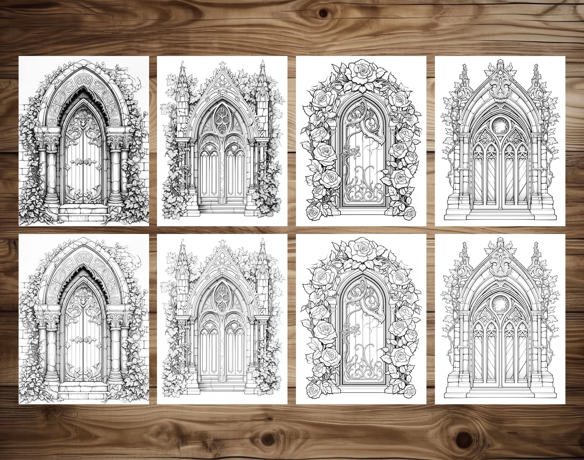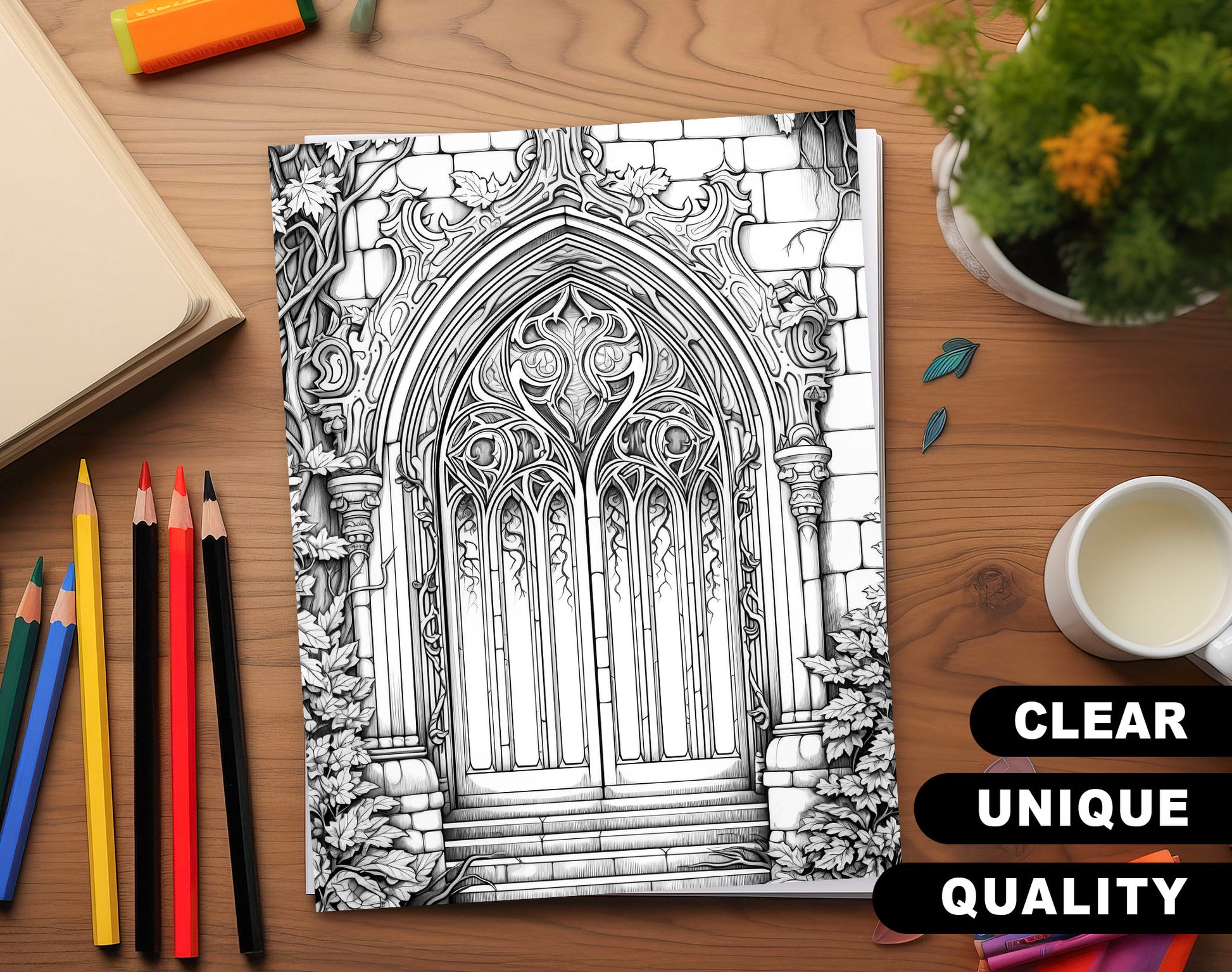 50 Gothic Doors Coloring Pages - Instant Download - Printable PDF
