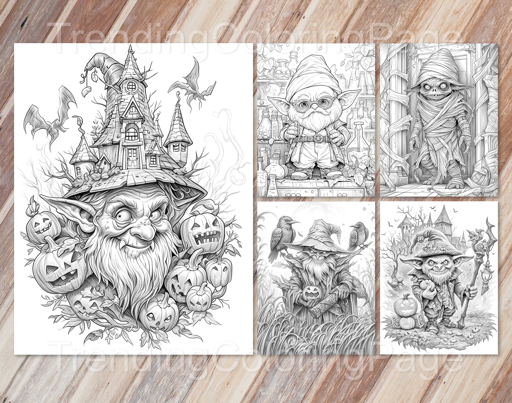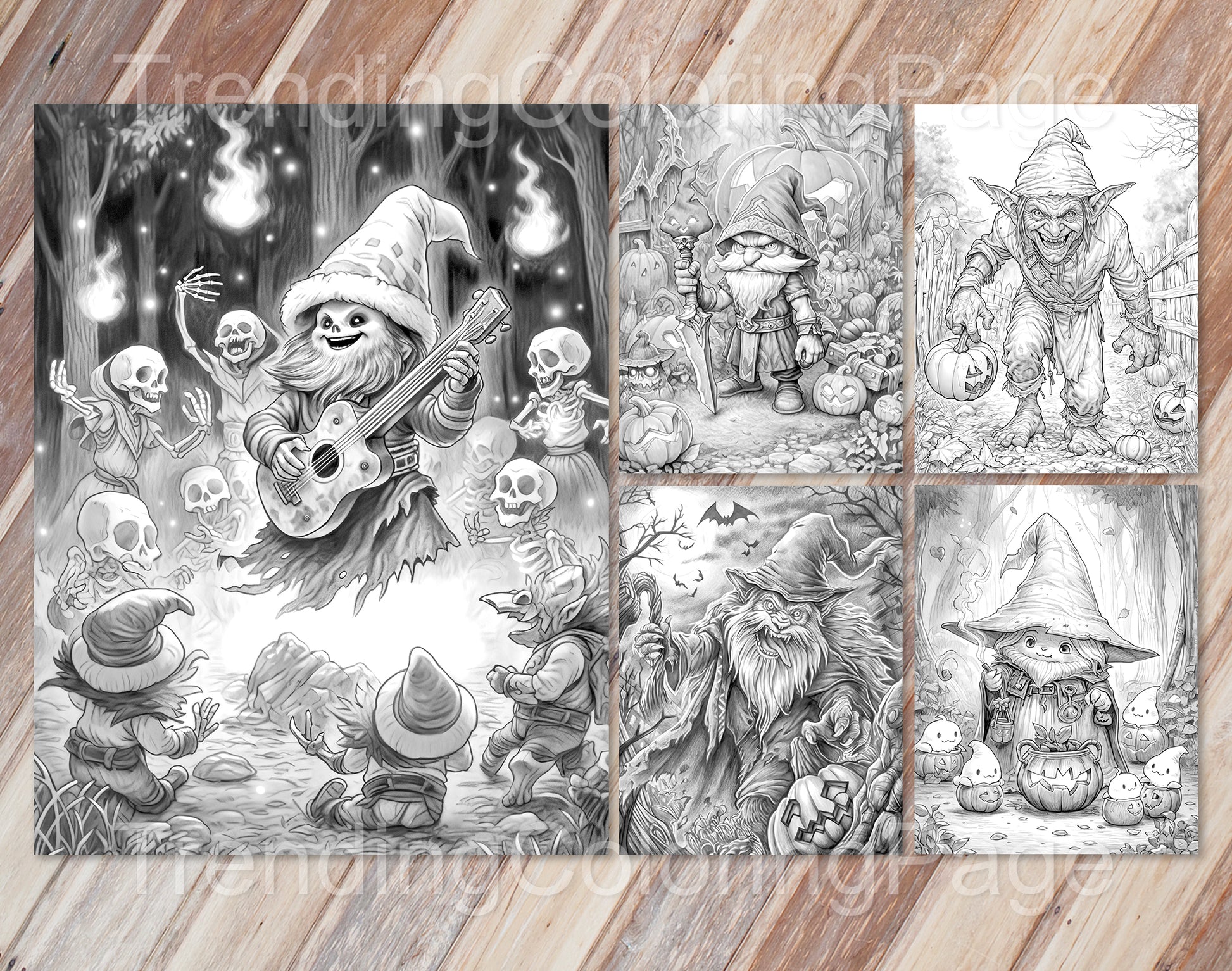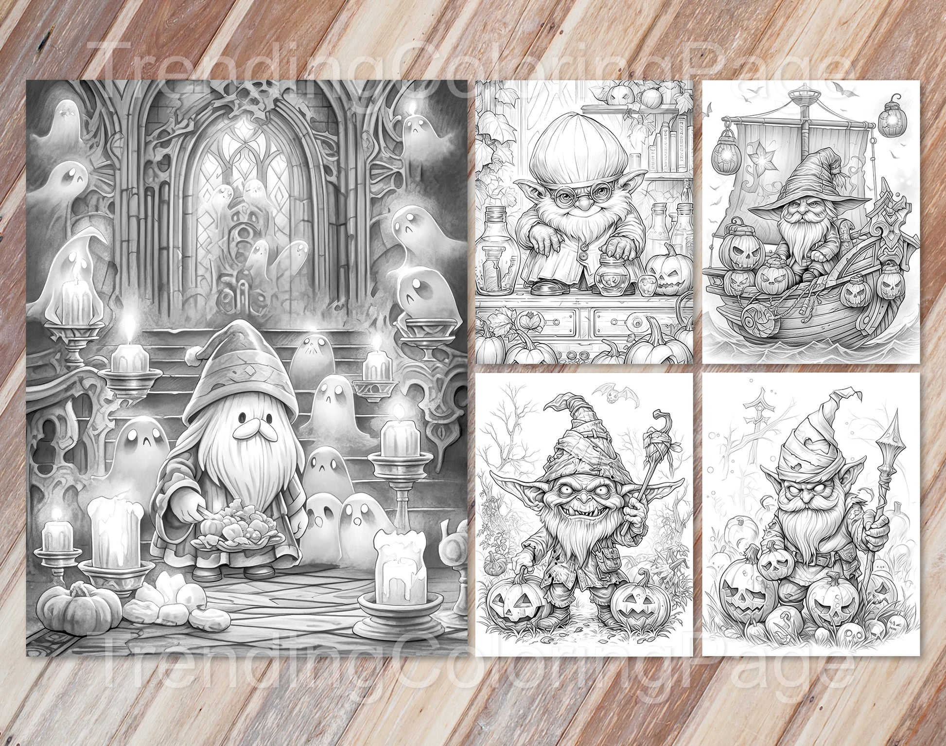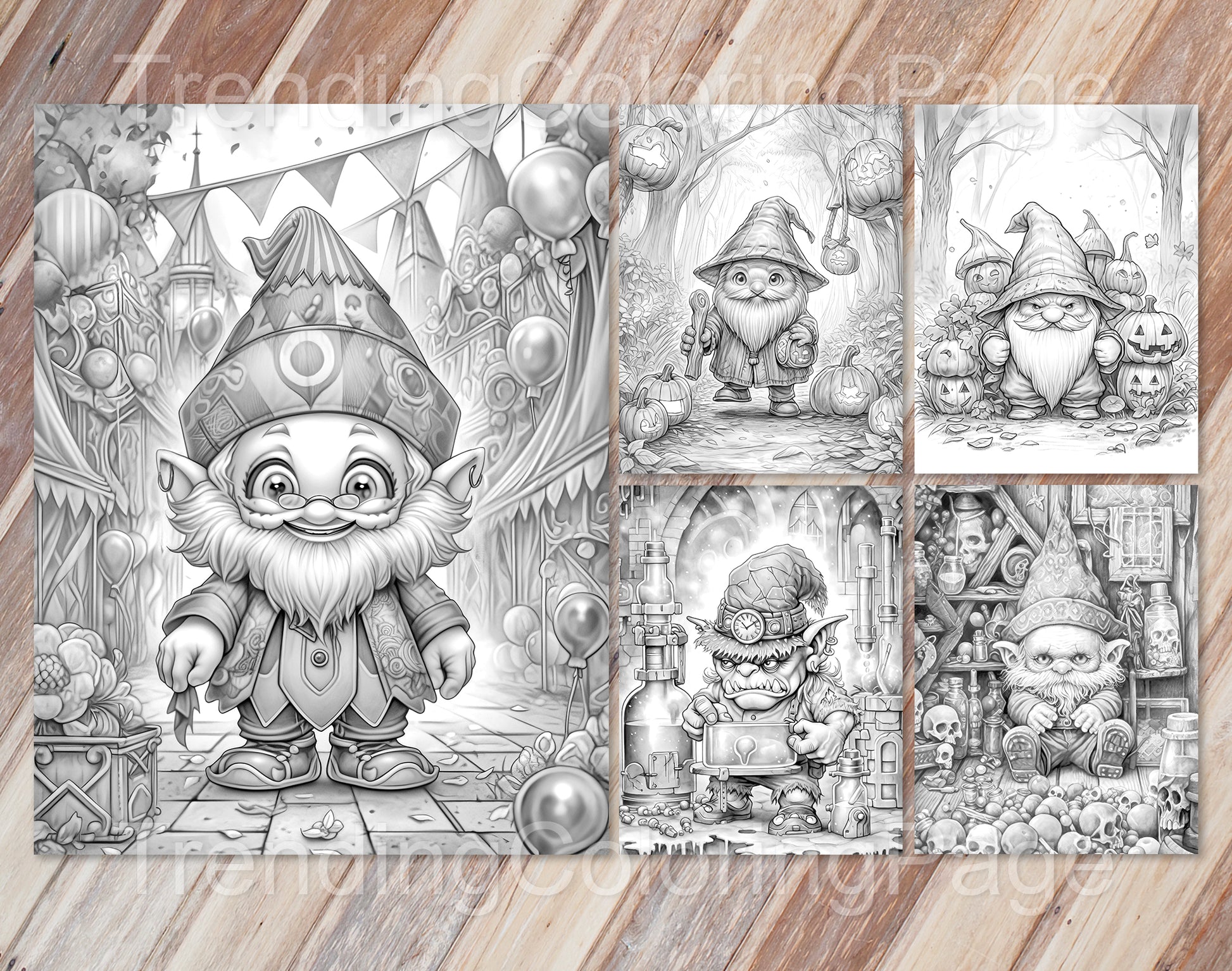 - 50 Expertly Designed Halloween Gnome Grayscale Pages