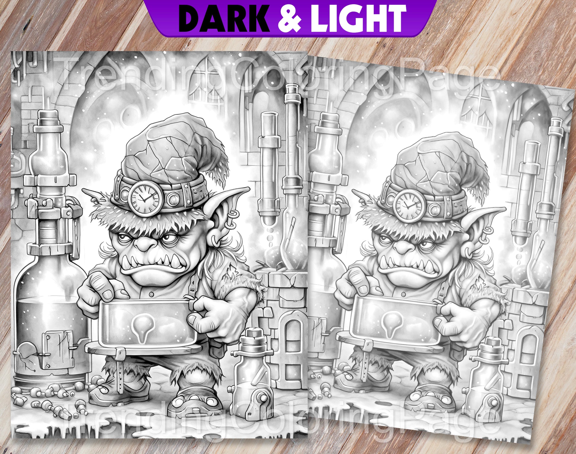 50 Halloween Gnomes Grayscale Coloring Pages - Instant Download - Printable PDF Dark/Light