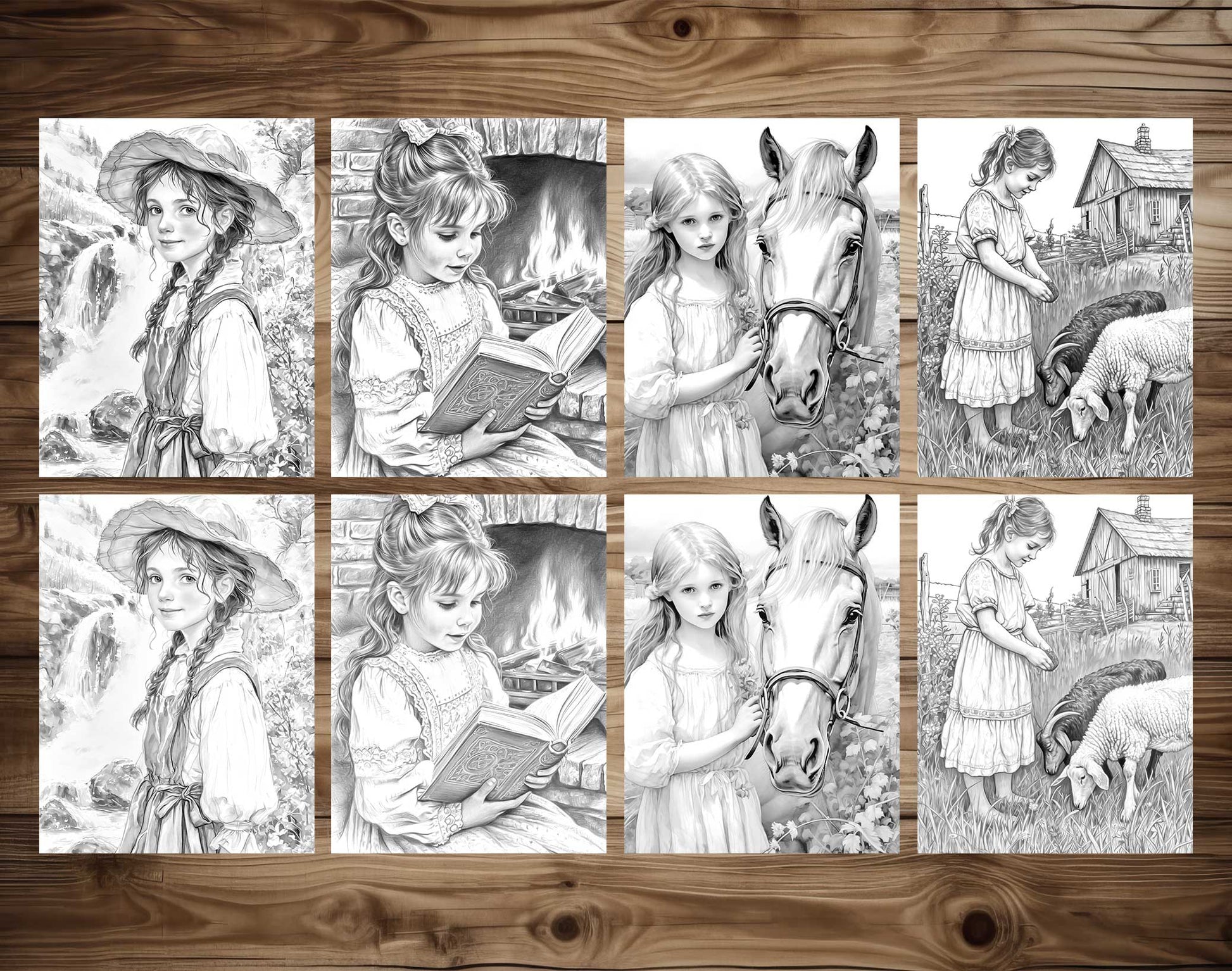 - Rustic Charm: Each page brings to life scenes of little girls on the prairie, from playing in open fields to helping with farm chores.