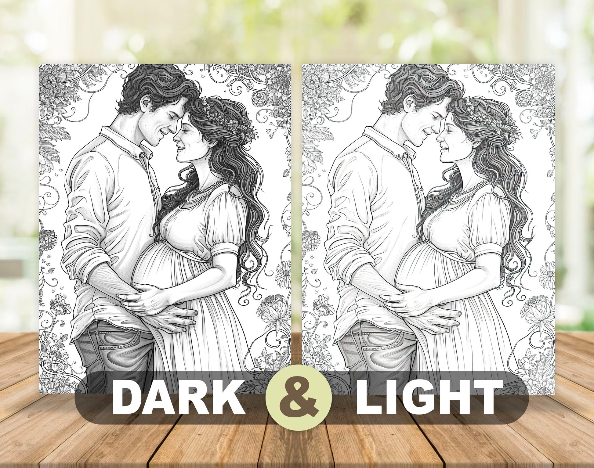 - 50 Heartfelt Love-Themed Grayscale Coloring Pages: Each page artistically represents different expressions and moments of love, from romantic gestures to tender companionship.
