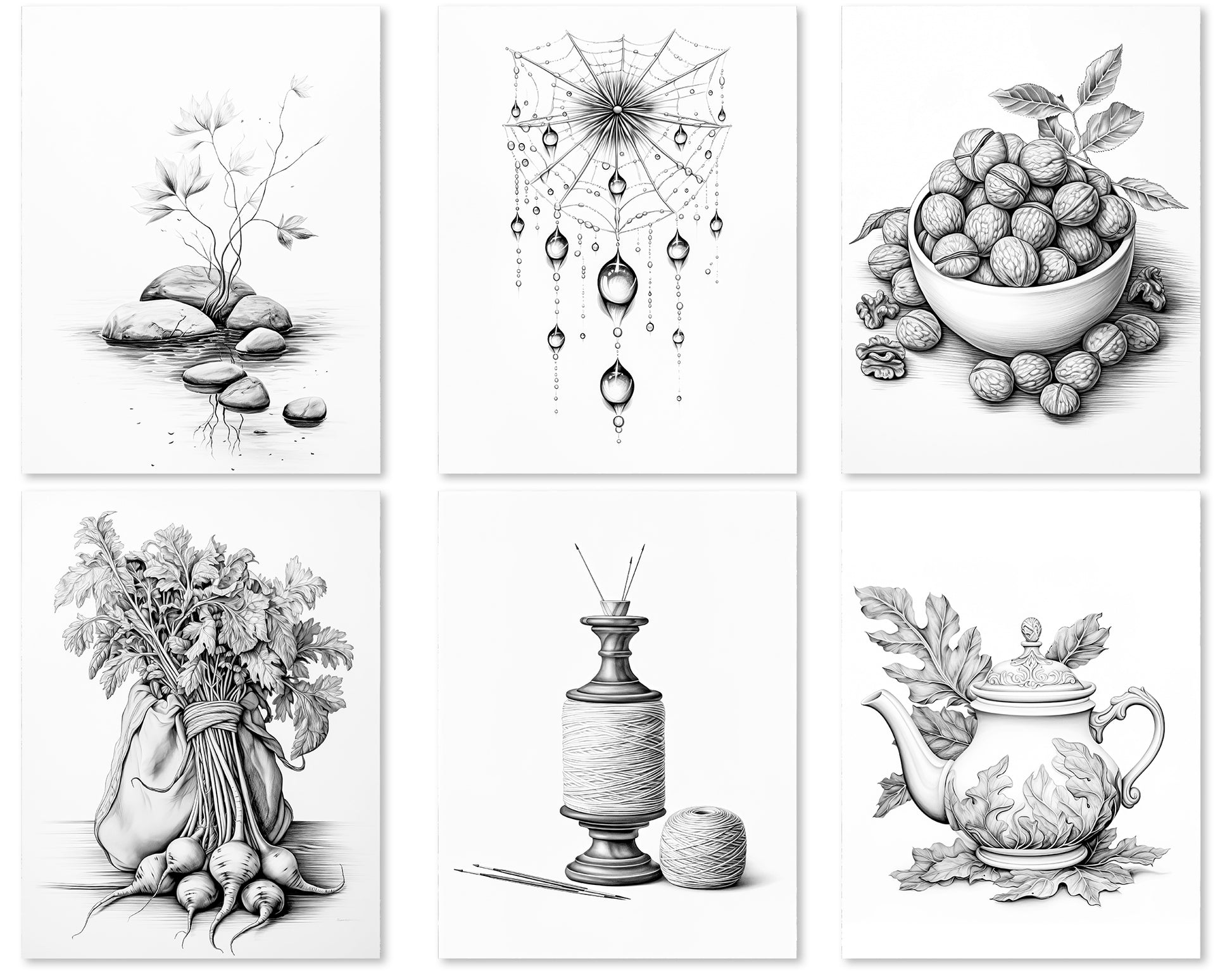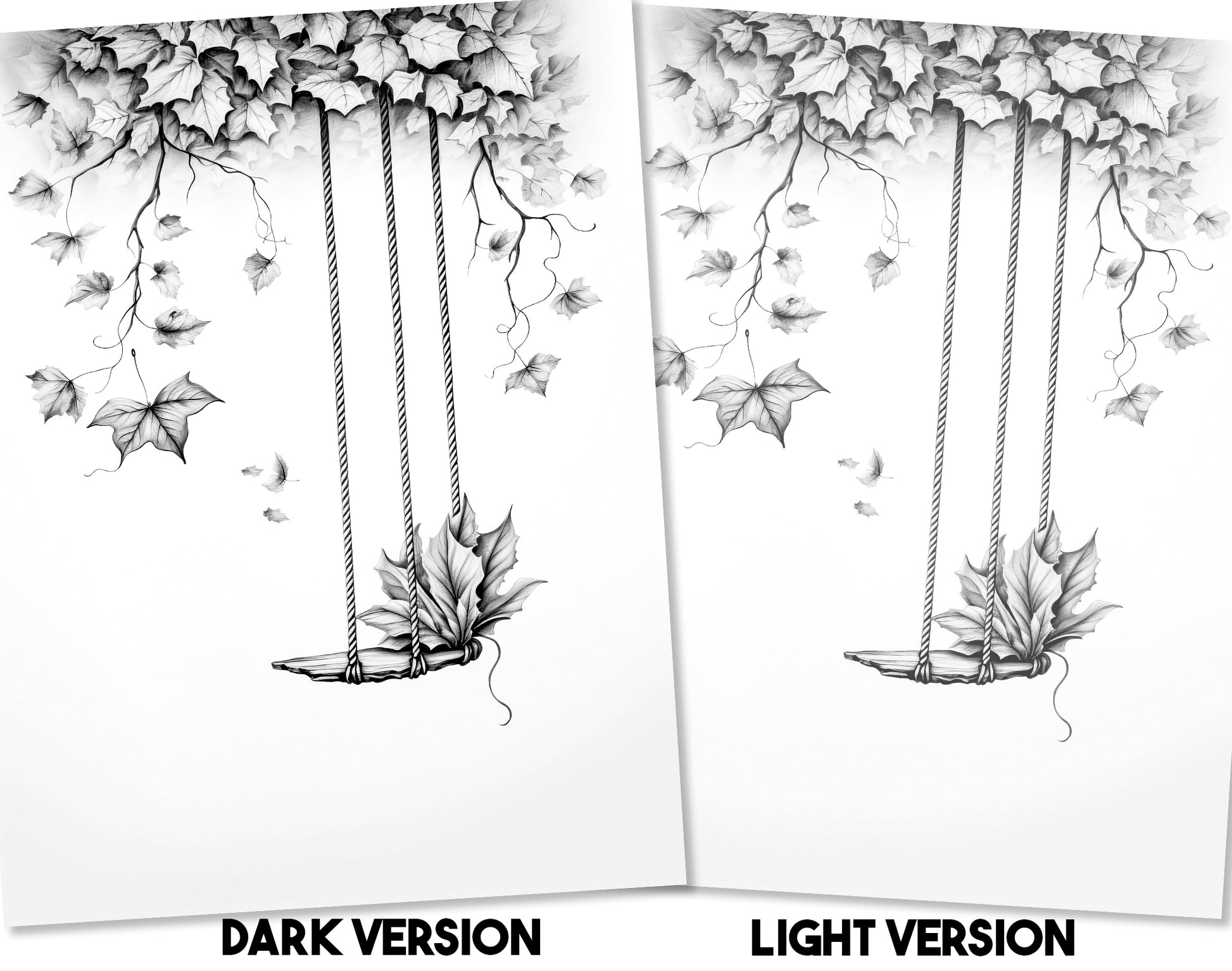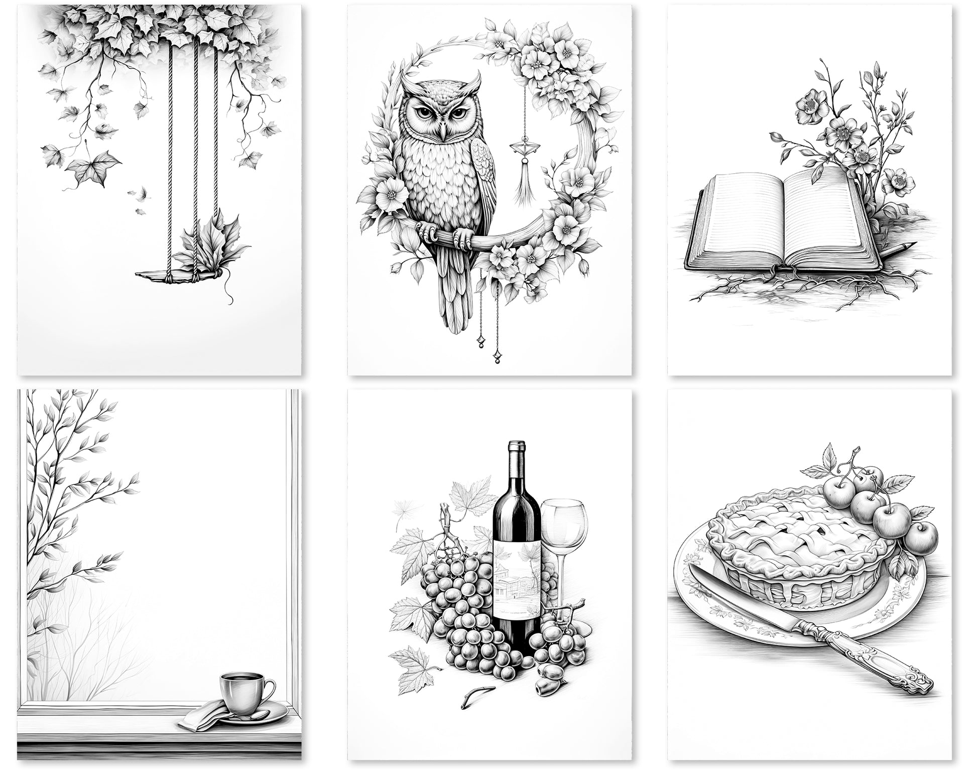 50 Minimalist Autumn Grayscale Coloring Pages - Instant Download - Printable PDF Dark/Light