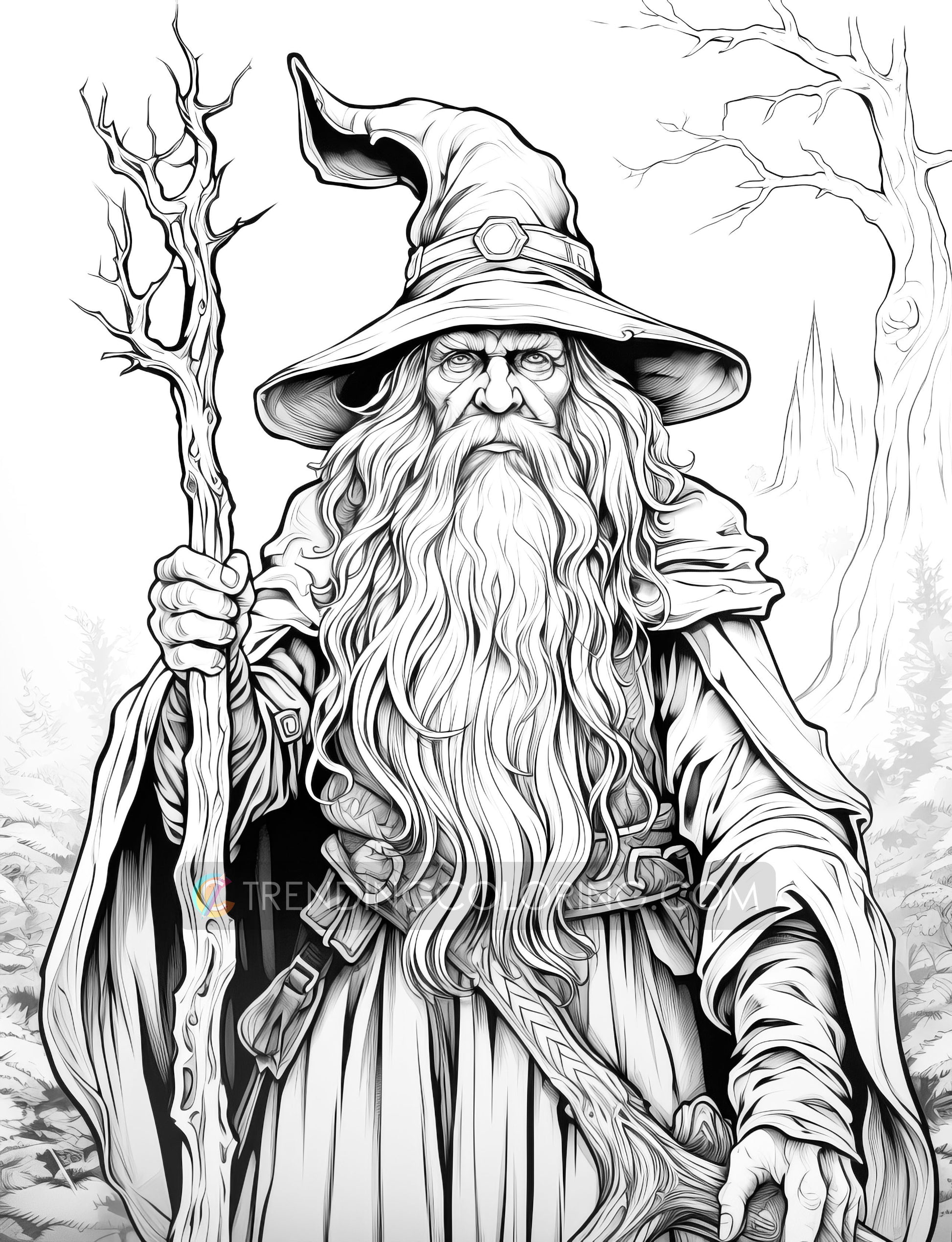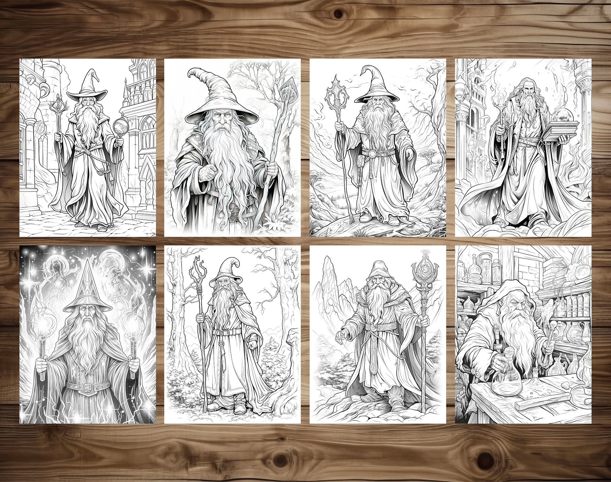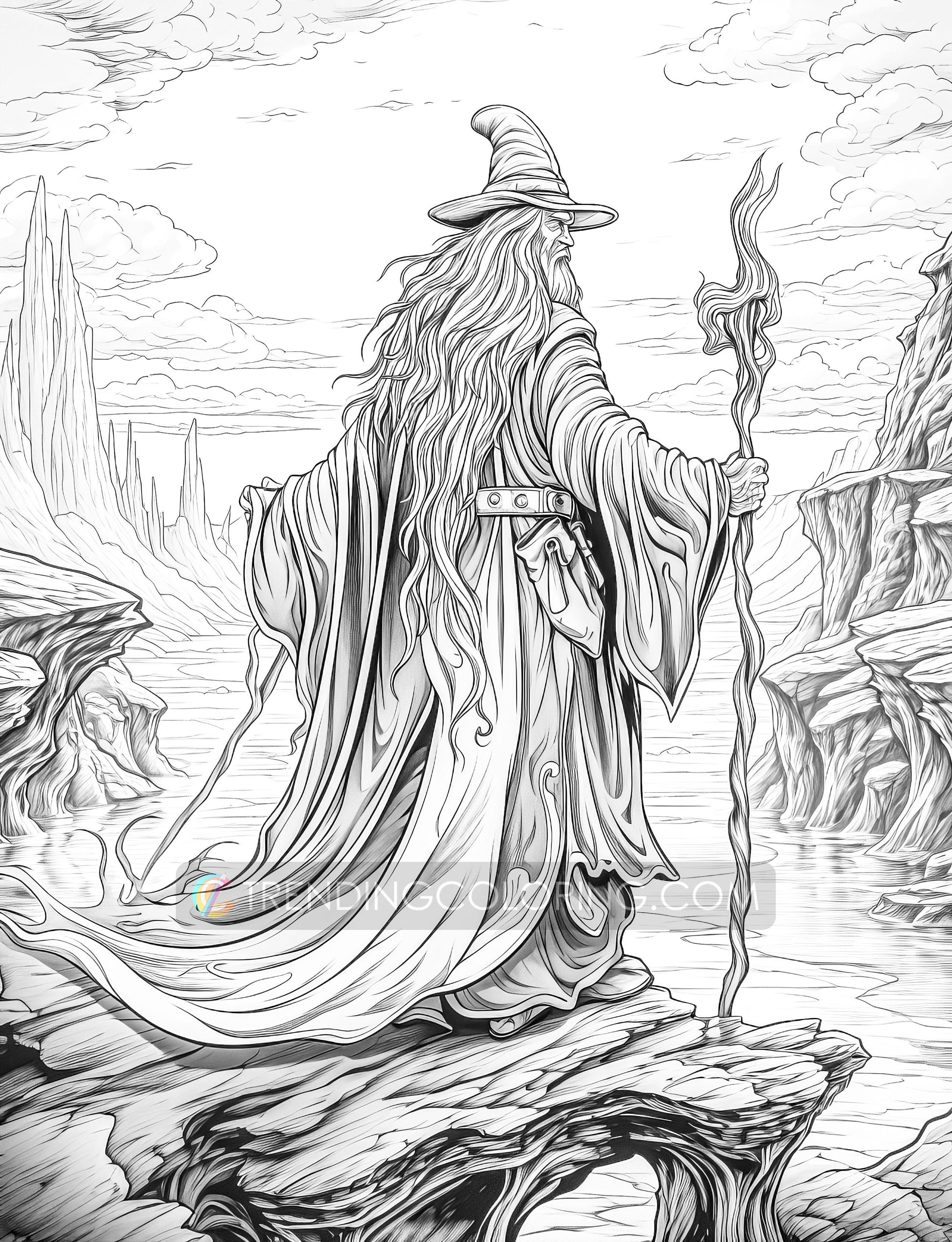 50 Powerful Wizard Coloring Pages - Halloween Coloring - Instant Download - Printable PDF
