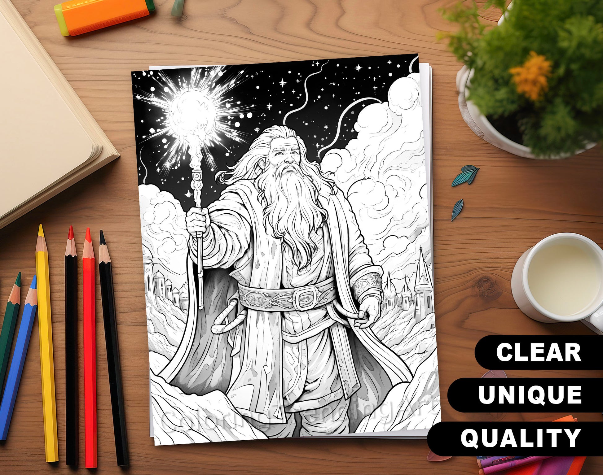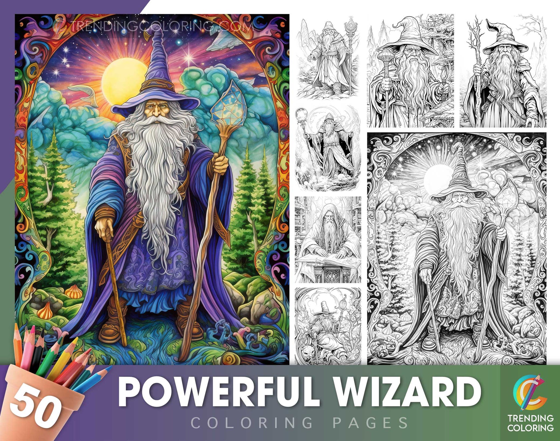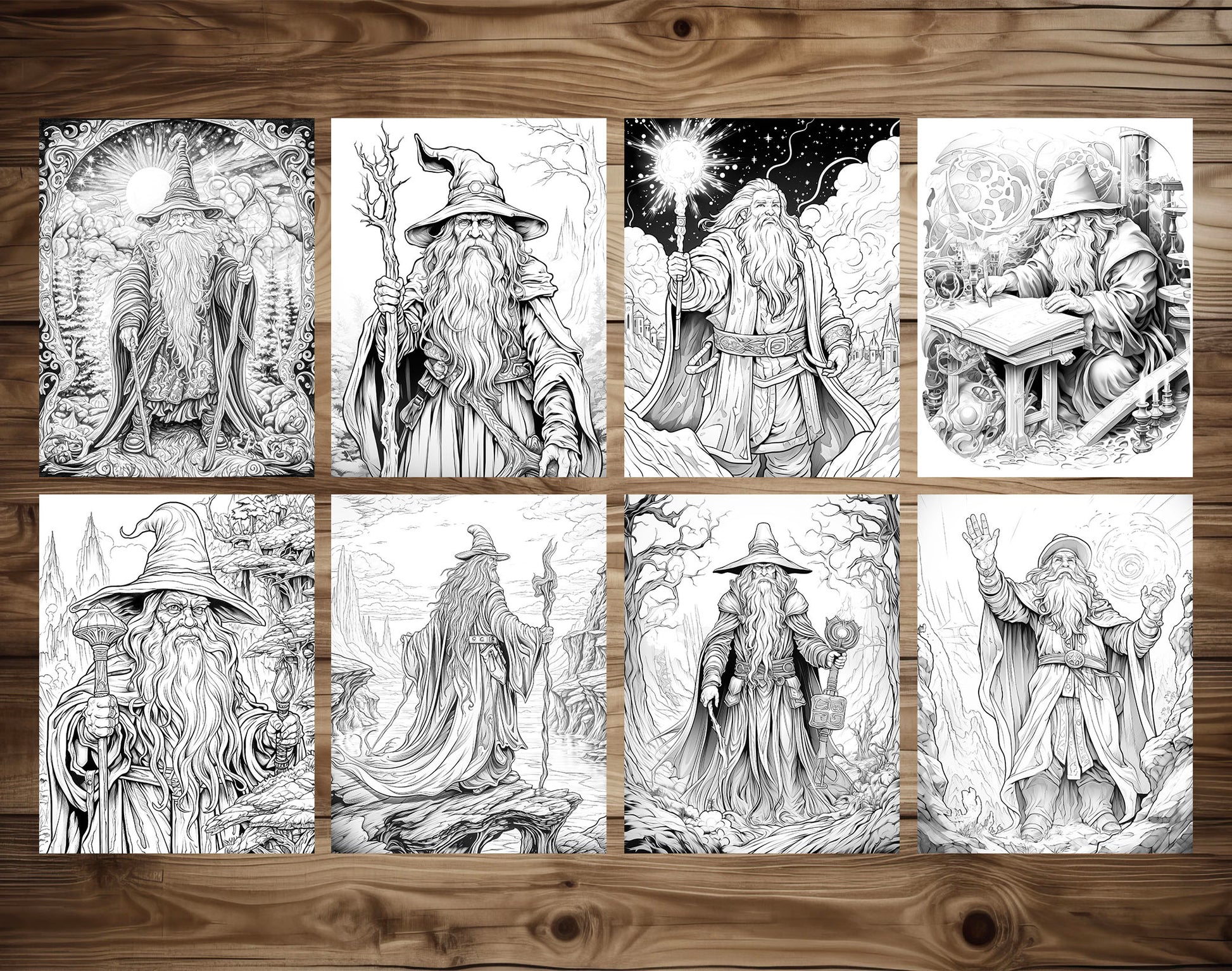 50 Powerful Wizard Coloring Pages - Halloween Coloring - Instant Download - Printable PDF