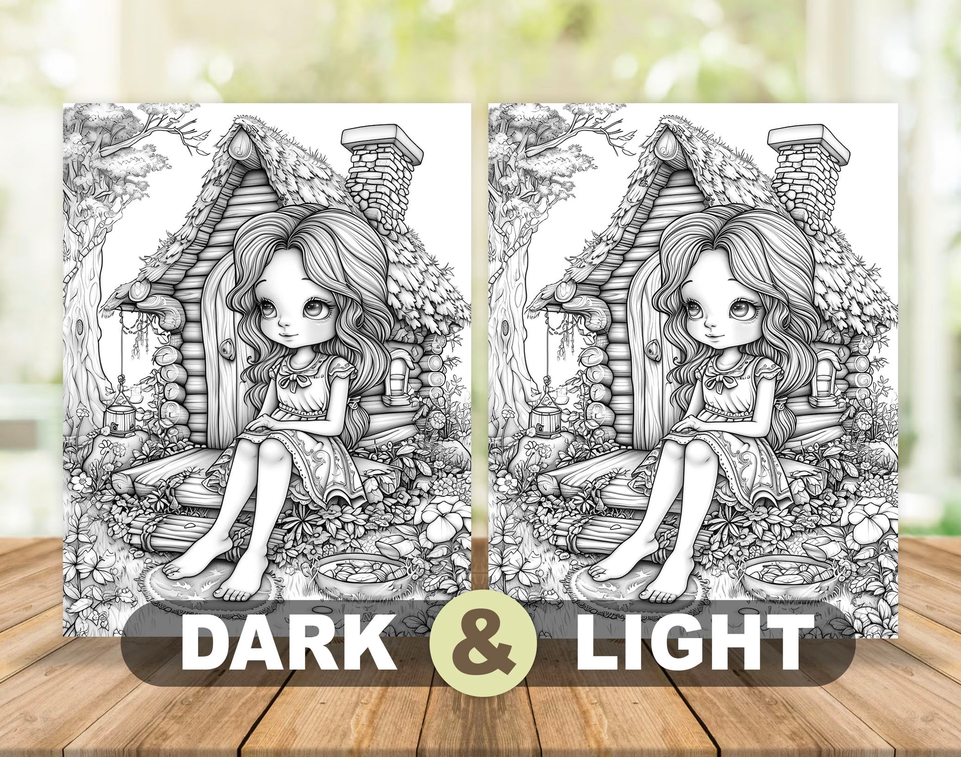 50 Pretty Girl Grayscale Coloring Pages - Instant Download - Printable PDF Dark/Light