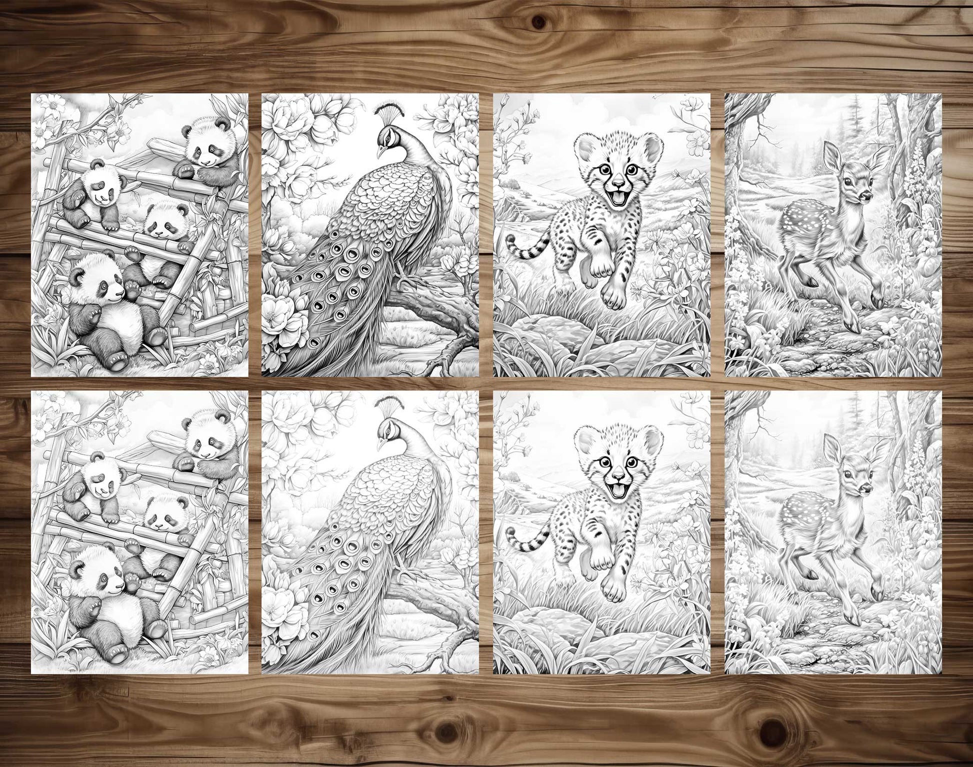 - 50 Enchanting Spring Critter-Themed Grayscale Coloring Pages: Each page invites you to explore a different scene featuring cute and cuddly spring animals.