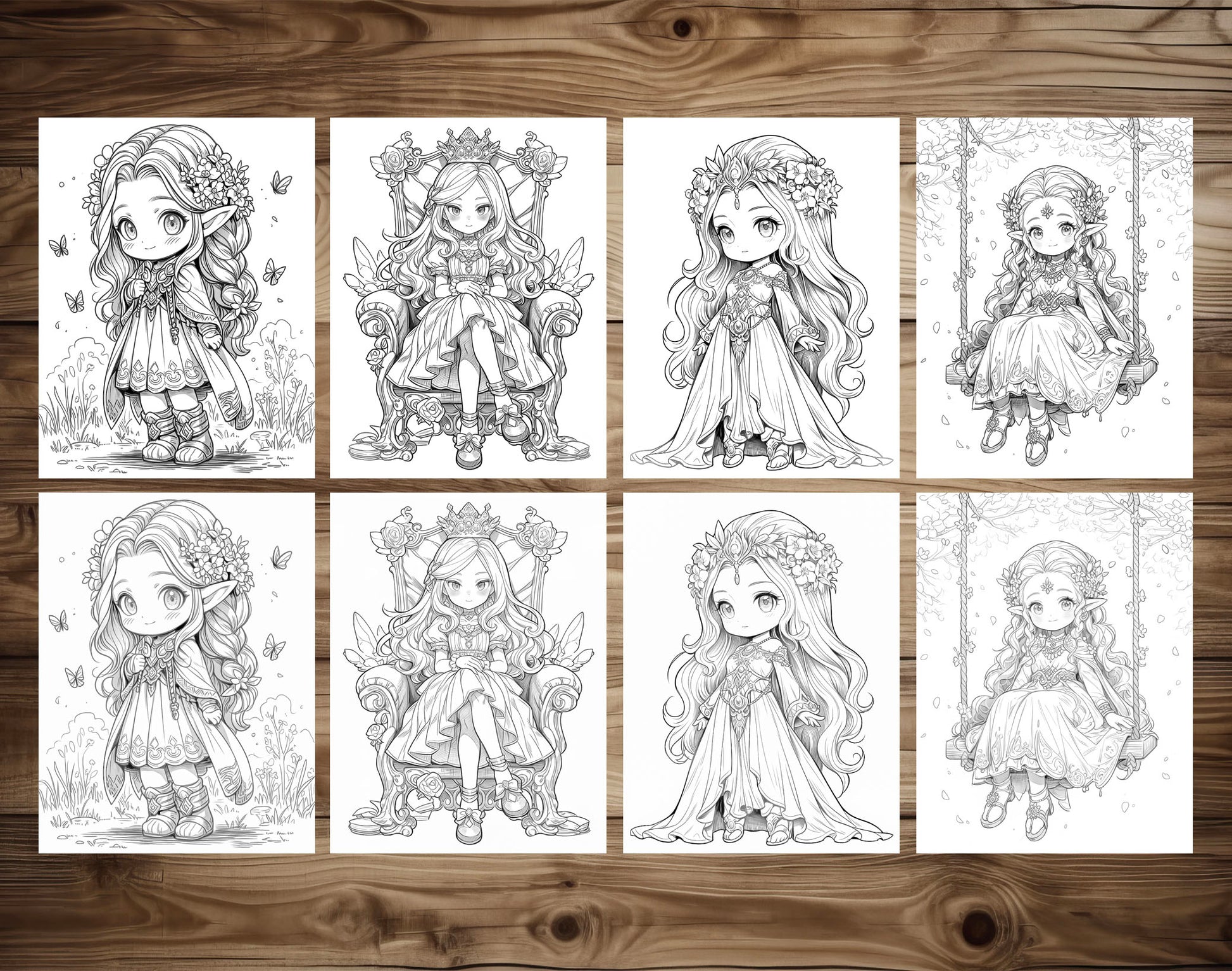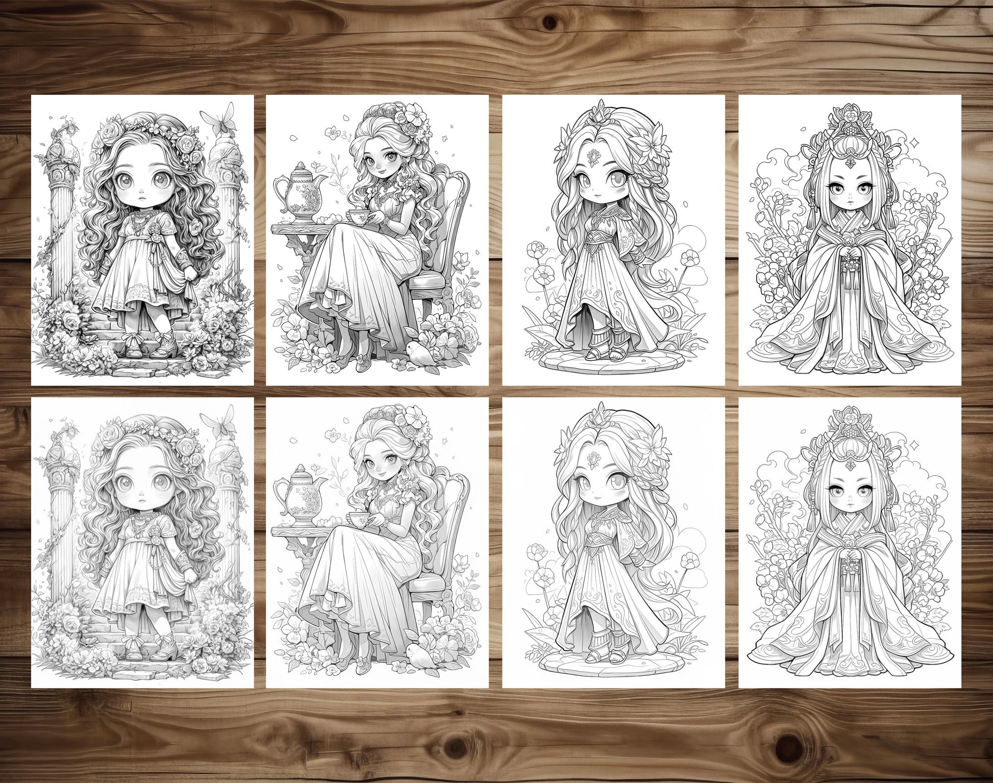 50 Spring Princess Grayscale Coloring Pages - Instant Download - Printable PDF Dark/Light