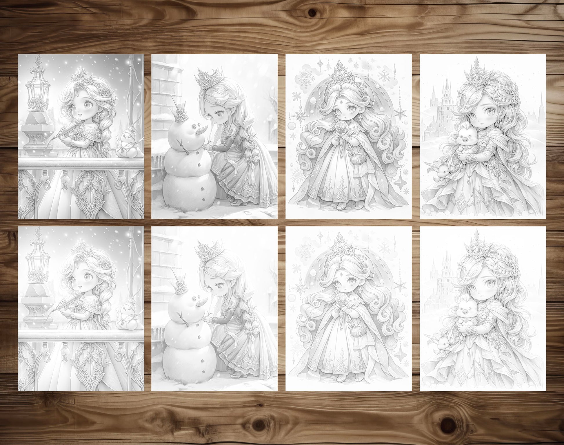 Embark on a magical winter journey with our captivating collection of 50 Winter Of The Little Princess Grayscale Coloring Pages. This enchanting set brings the whimsical world of a little princess to life, offering a unique canvas for your artistic exploration.