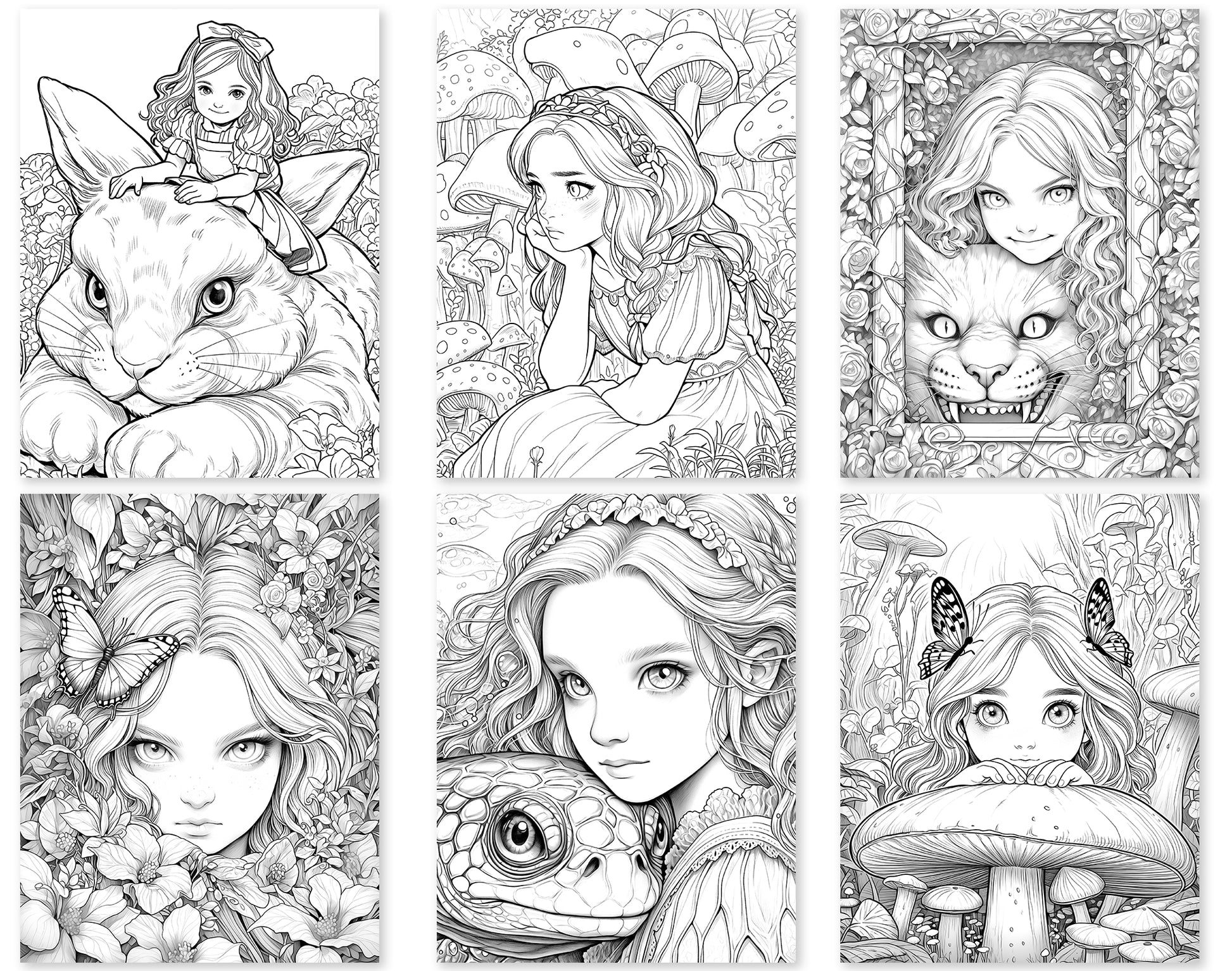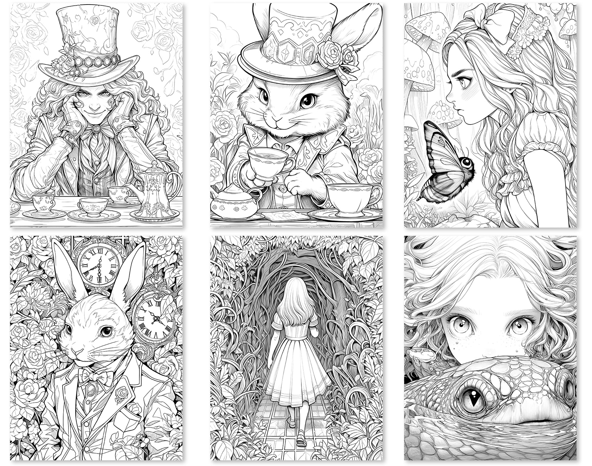 60 Alice in Wonderland Coloring Pages - Instant Download - Printable PDF