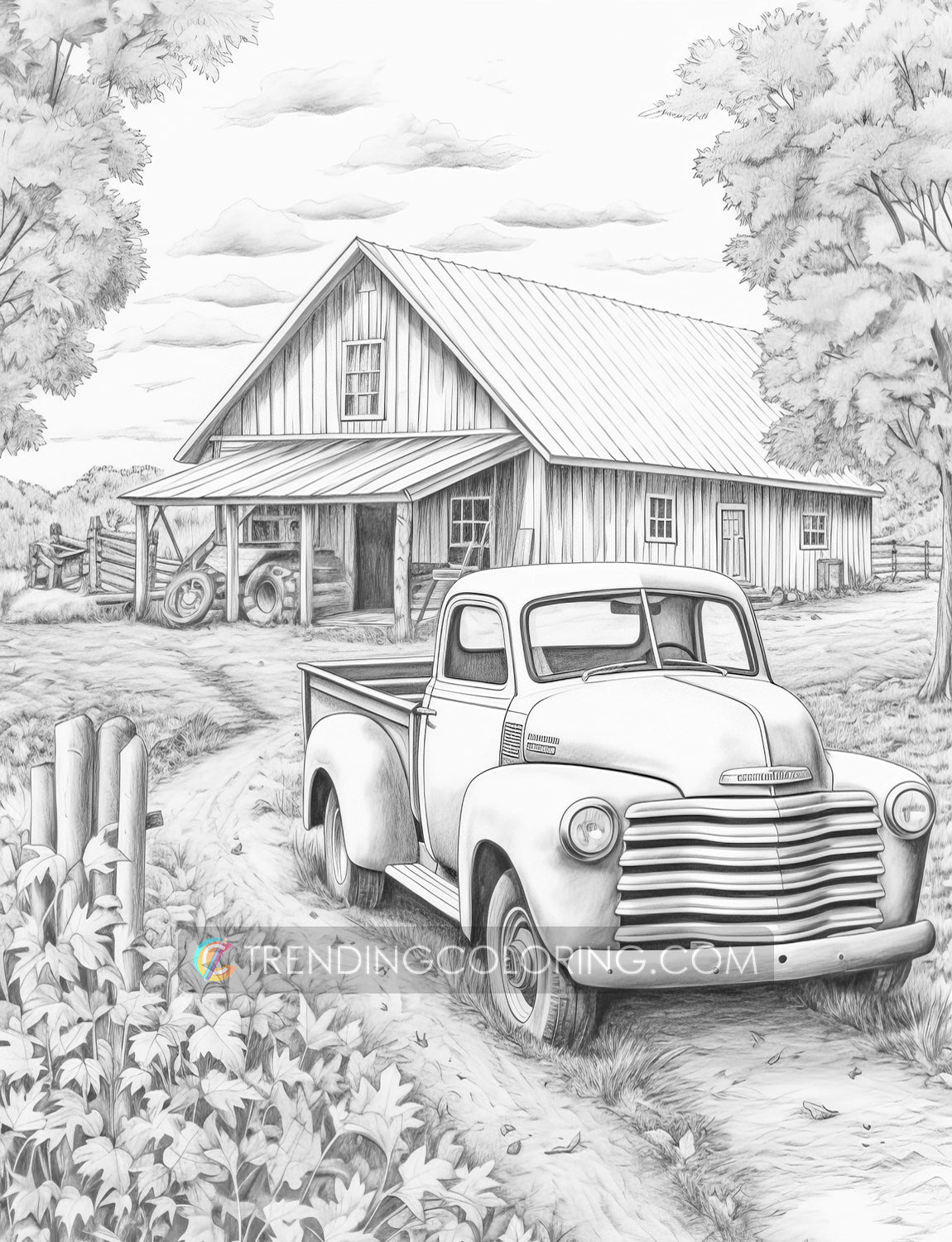 30 Country Farm Grayscale Coloring Pages - Instant Download - Printable PDF