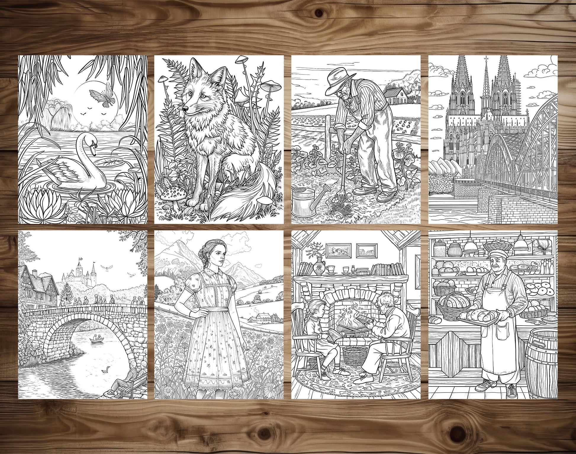 30 Country Farm Grayscale Coloring Pages - Instant Download - Printable PDF